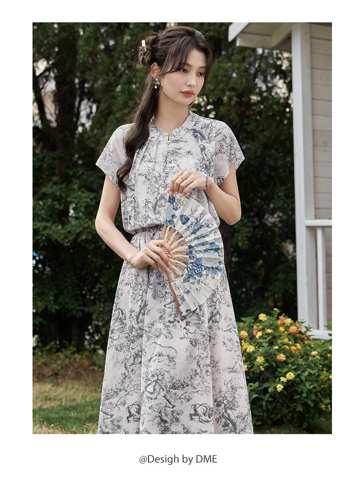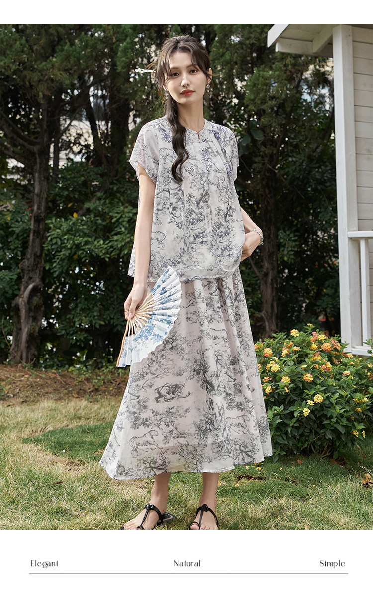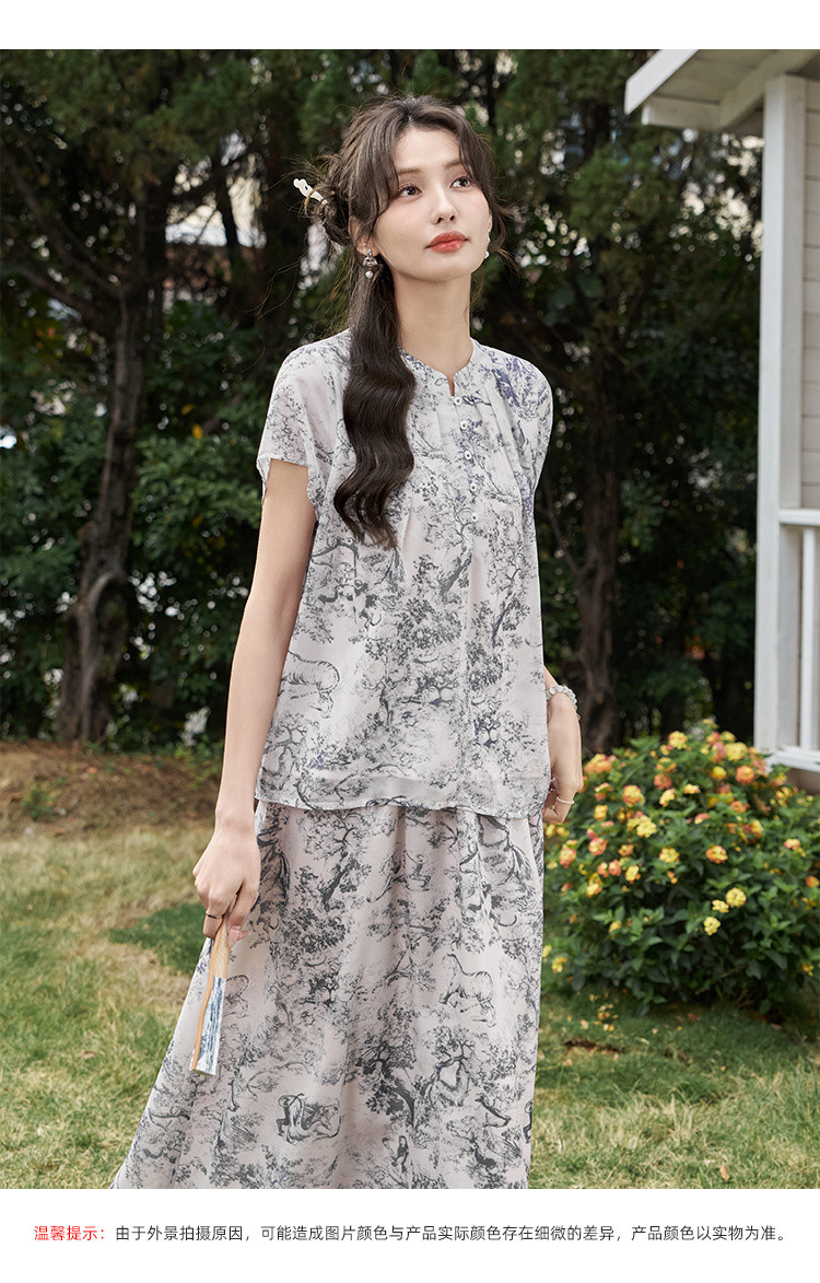【水墨印花国风半裙套装】夏休闲宽松立领高级感时尚新中式两件套 426305