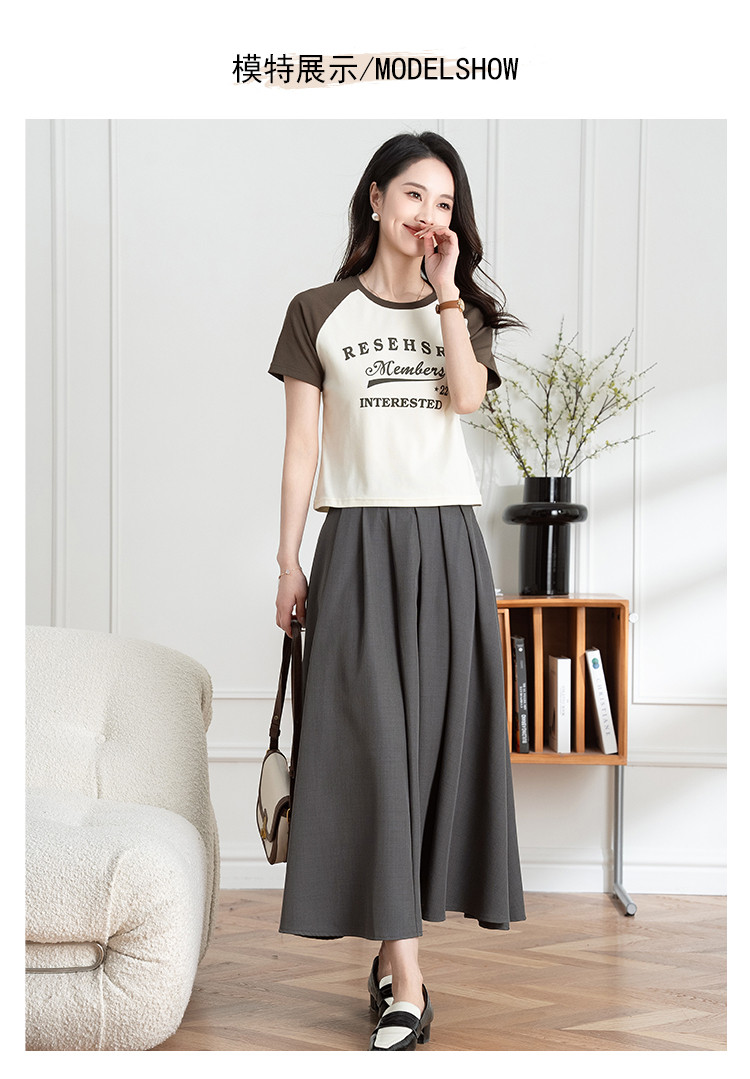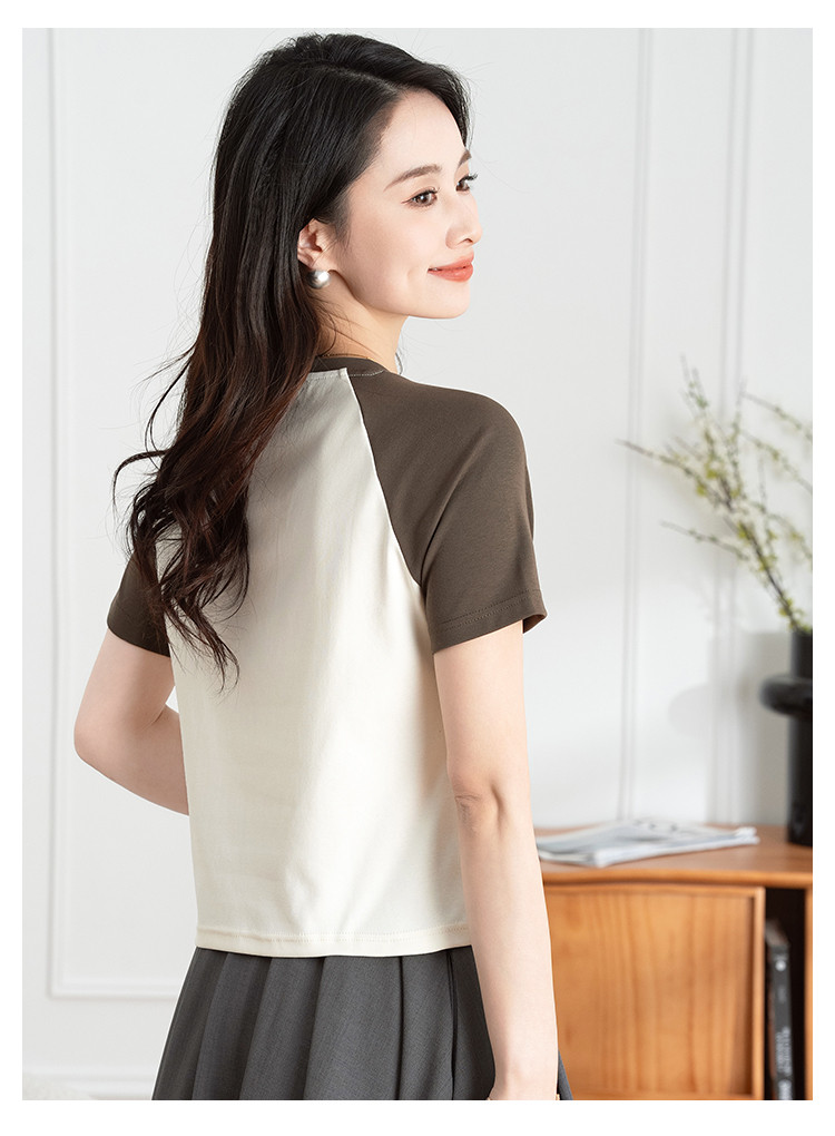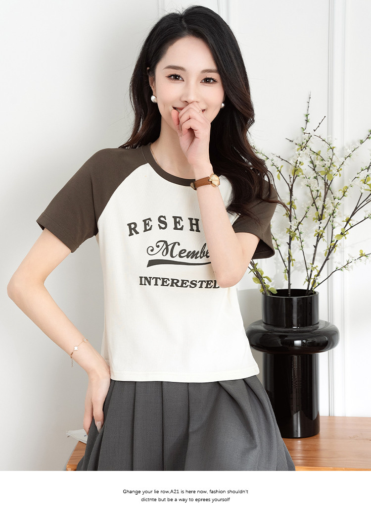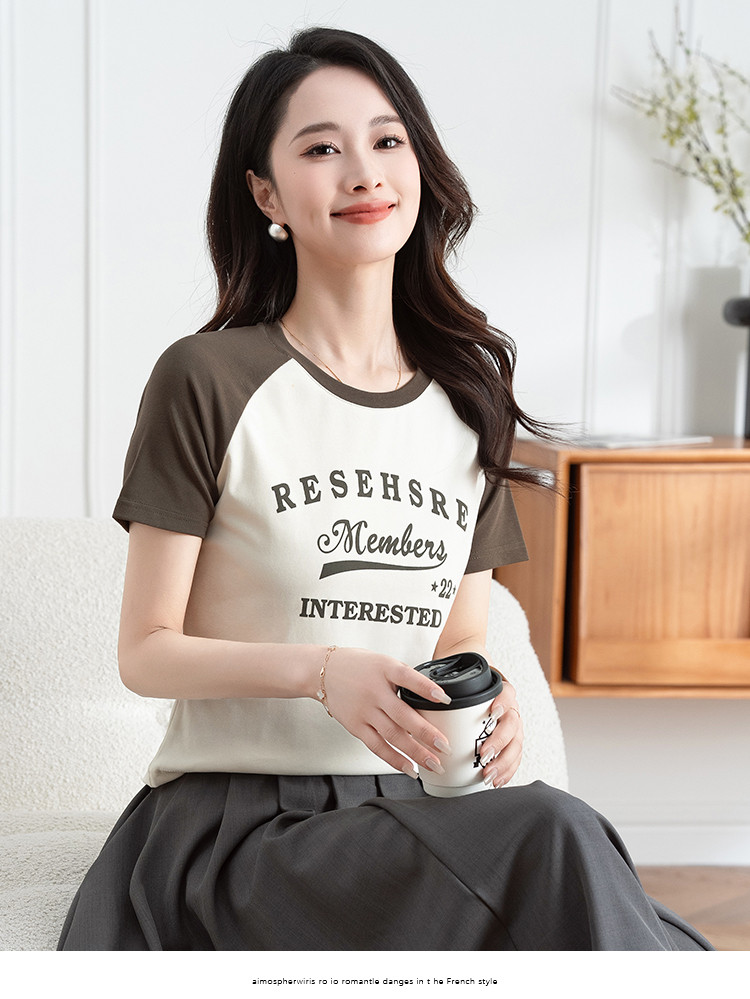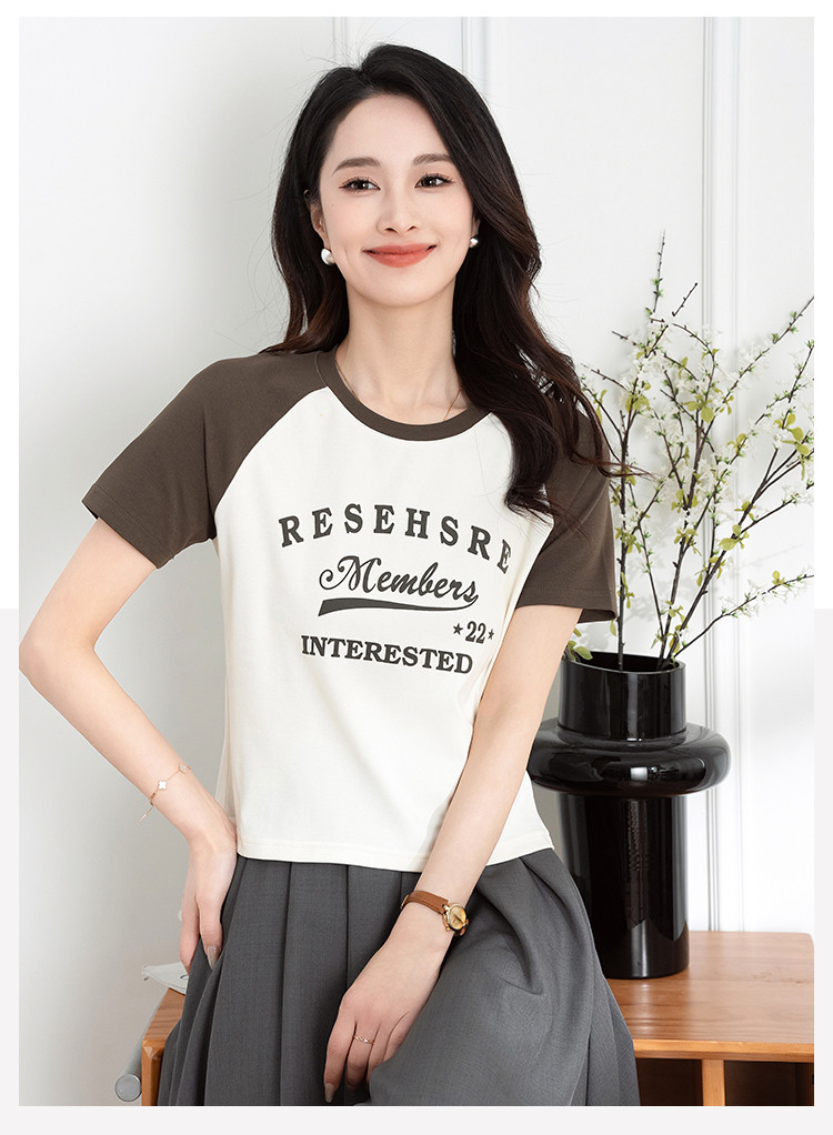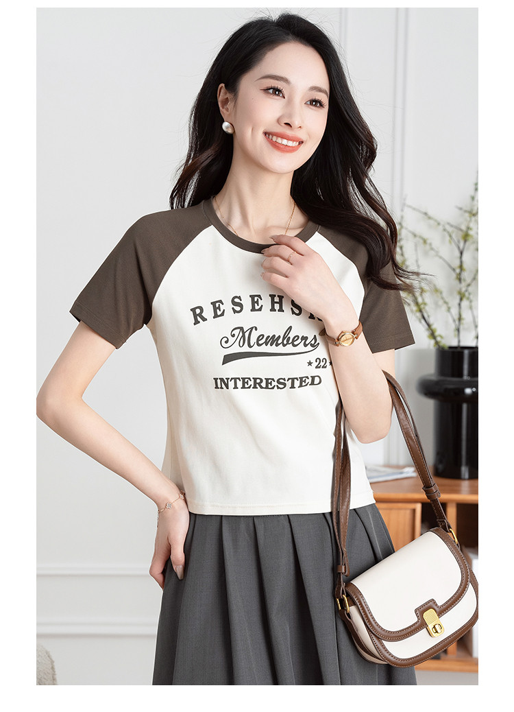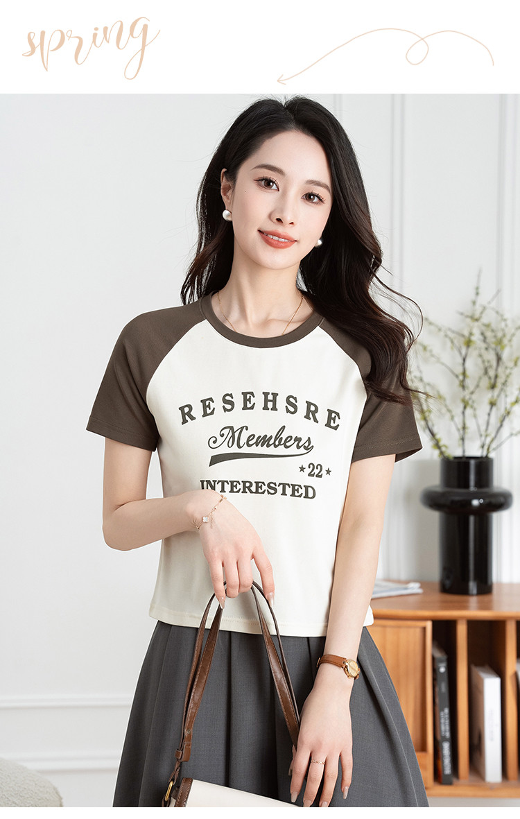 商品名称:夏季爆款印花别致插肩袖圆领短袖T恤女高弹舒适休闲修身短款上衣 324481