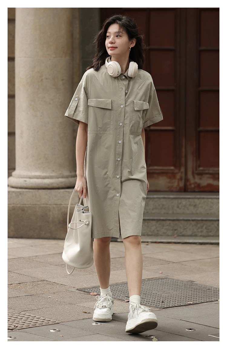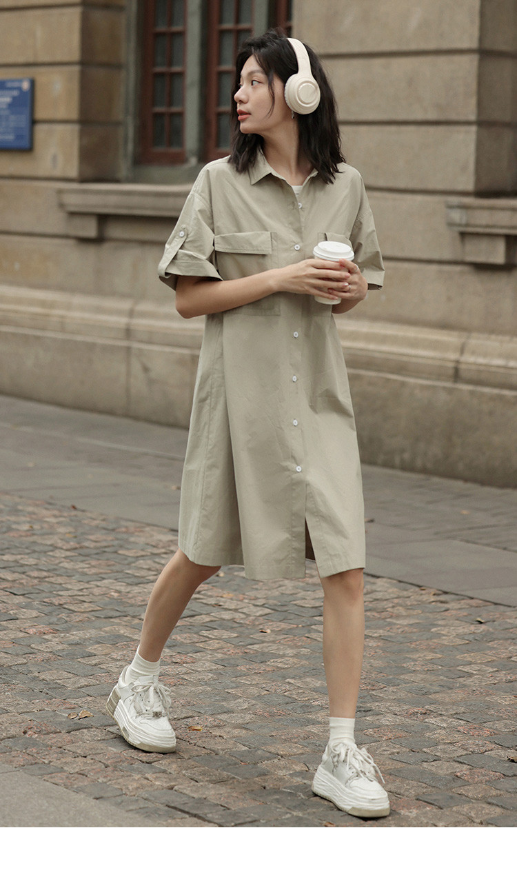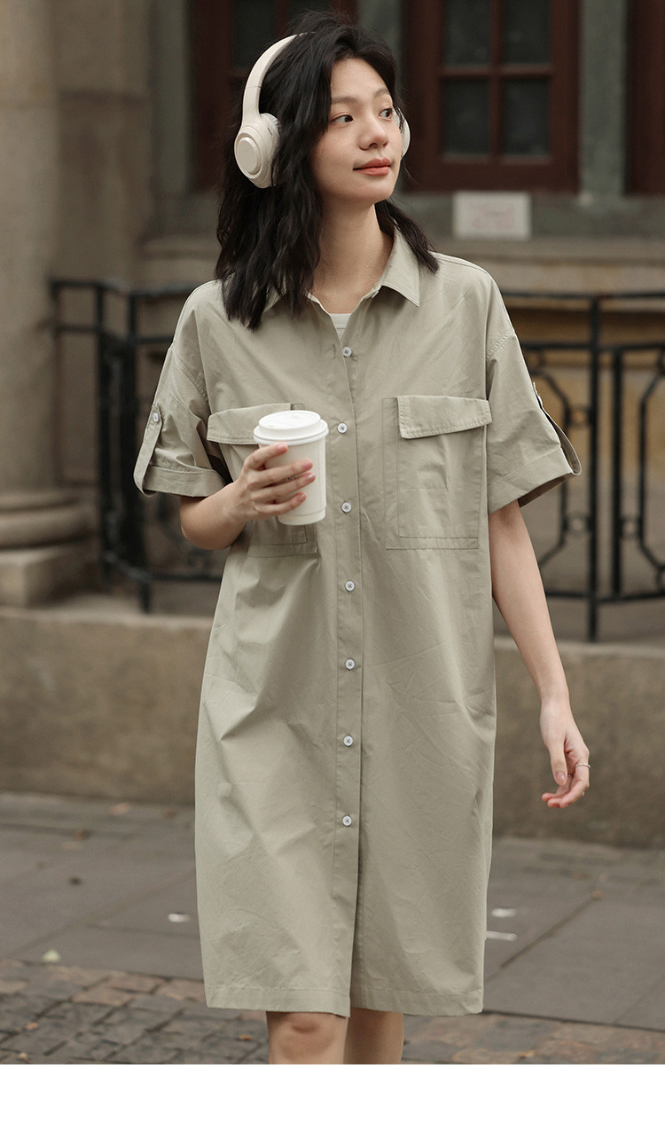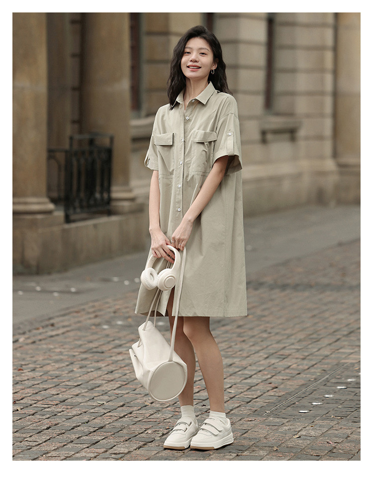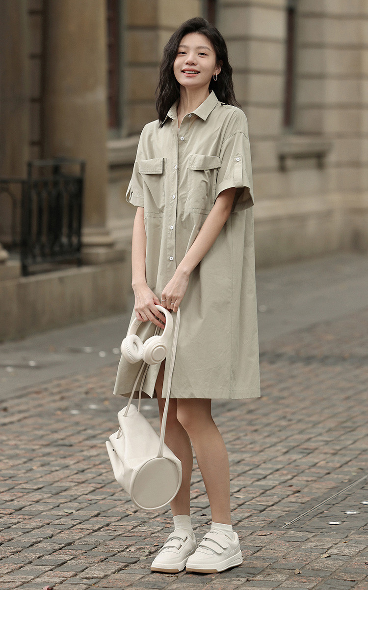 商品名称:【翻领衬衫中长裙】夏款低调翻领短袖中长款连衣裙 830594