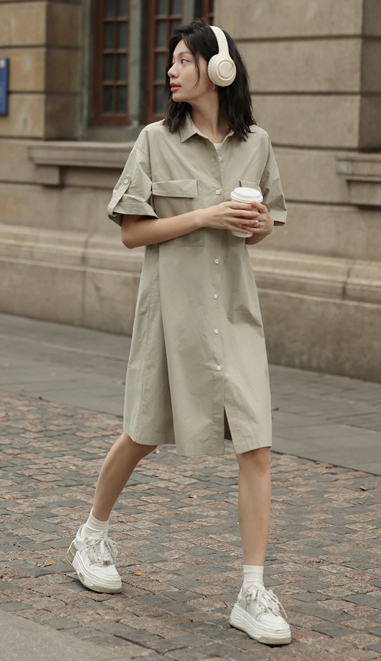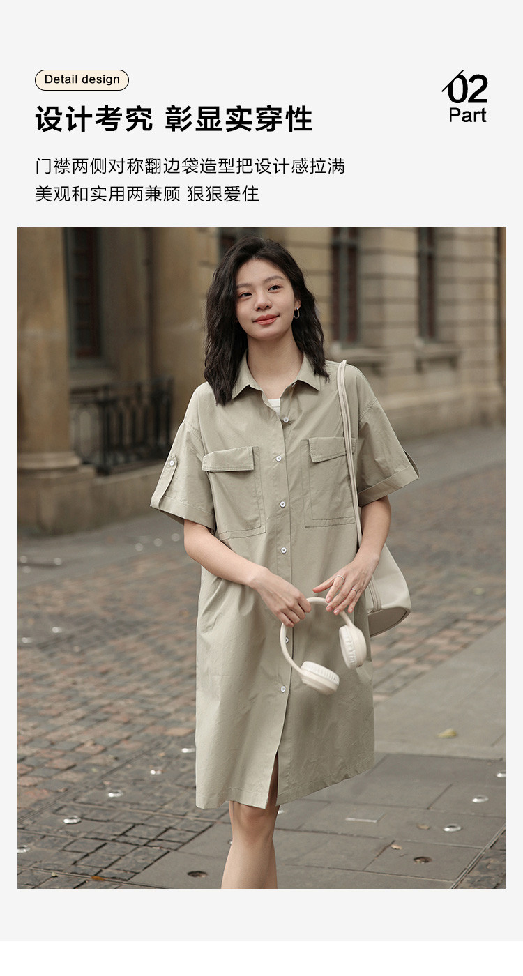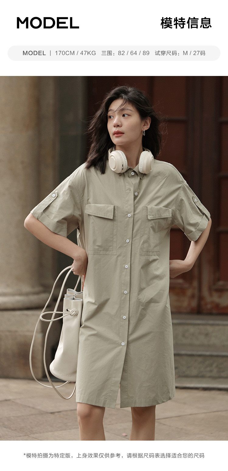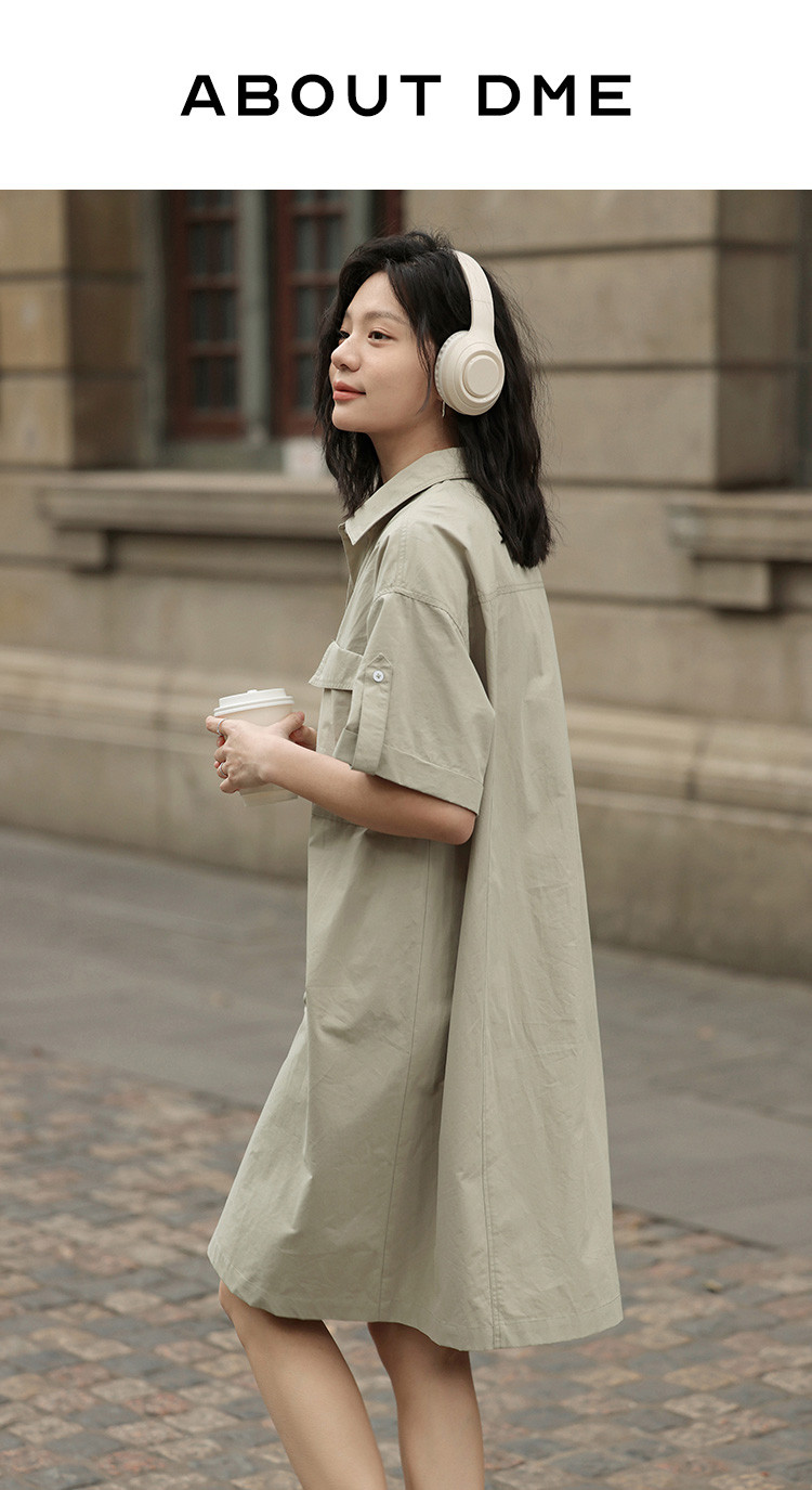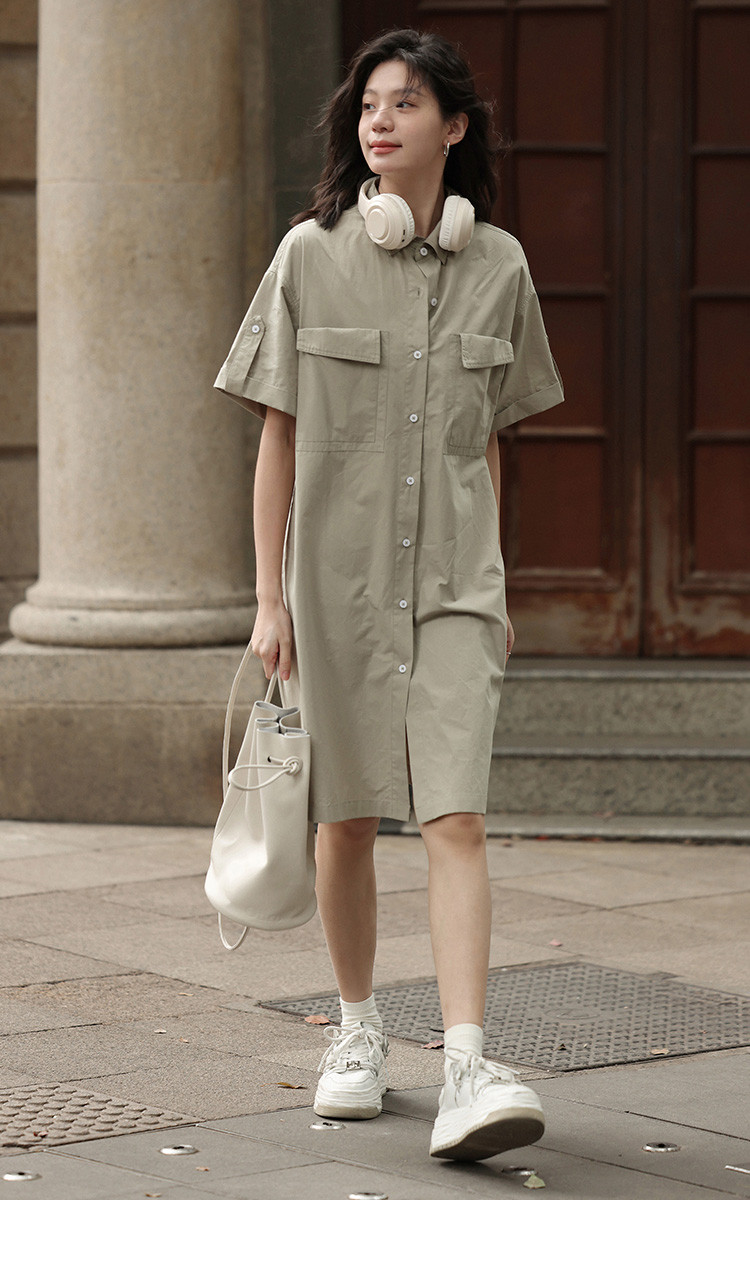 商品名称:【翻领衬衫中长裙】夏款低调翻领短袖中长款连衣裙 830594