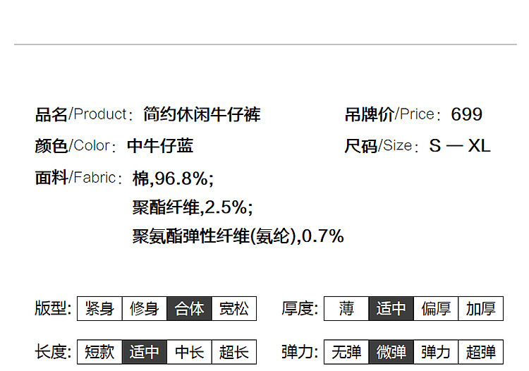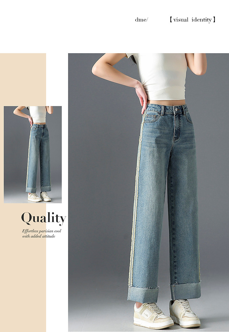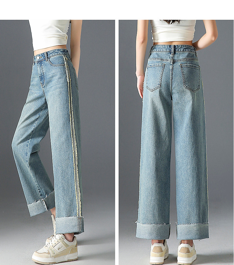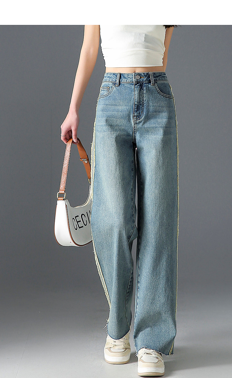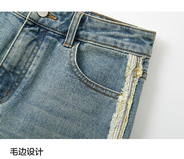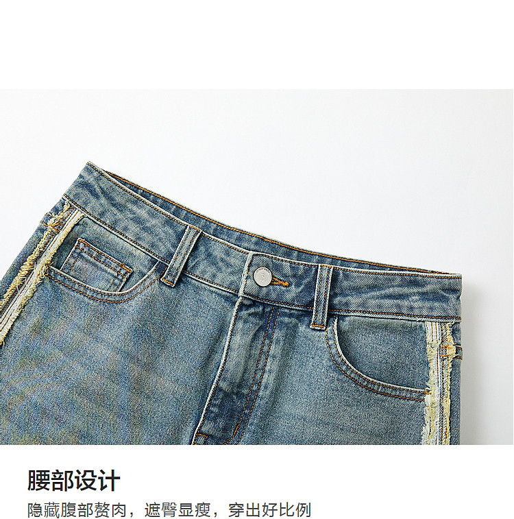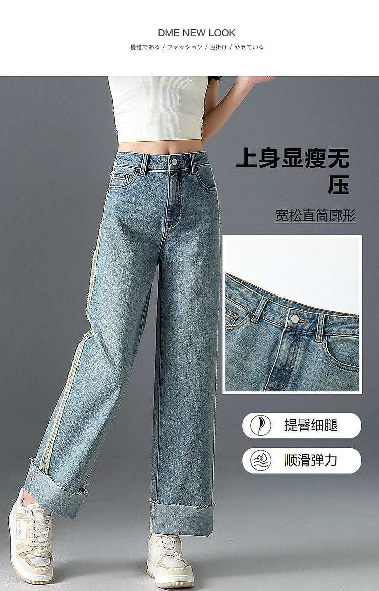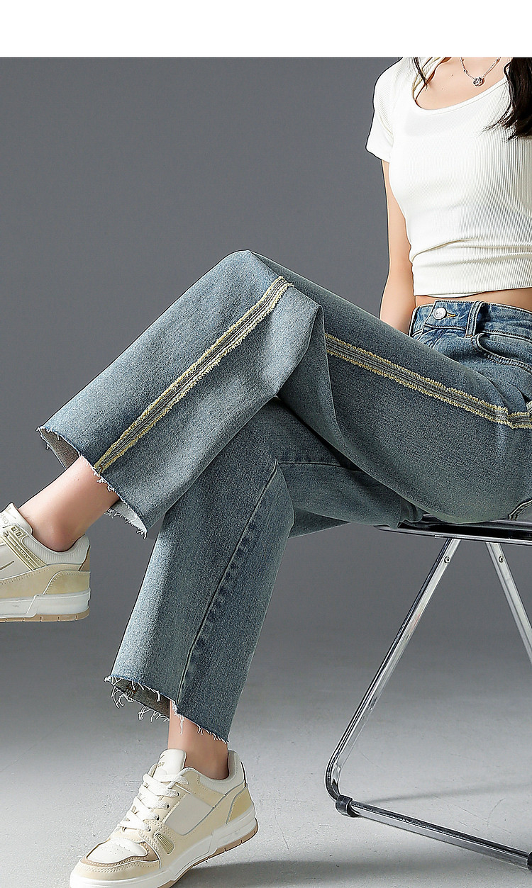 商品名称:【出街显瘦就靠它】夏复古毛边直筒长裤小皮标弹力牛仔裤子女 569345