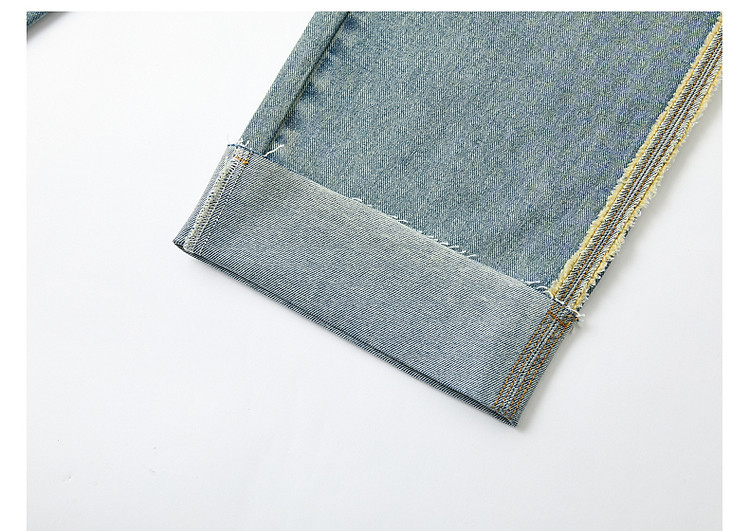 【出街显瘦就靠它】夏复古毛边直筒长裤小皮标弹力牛仔裤子女 569345