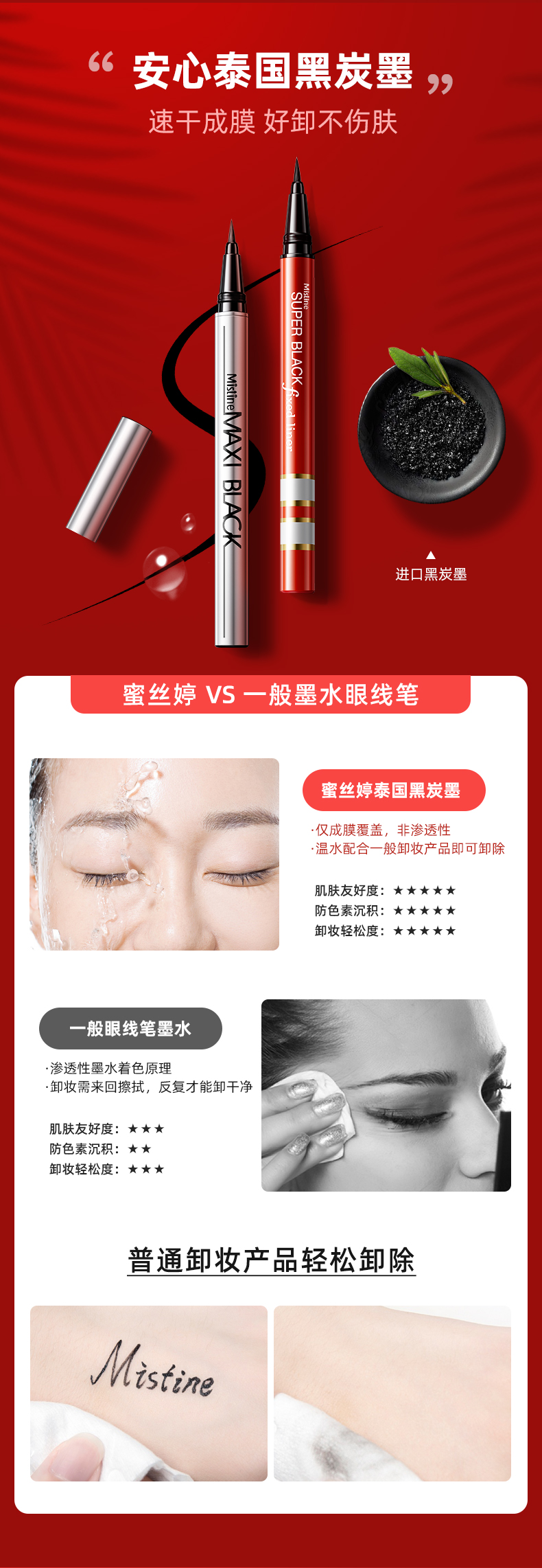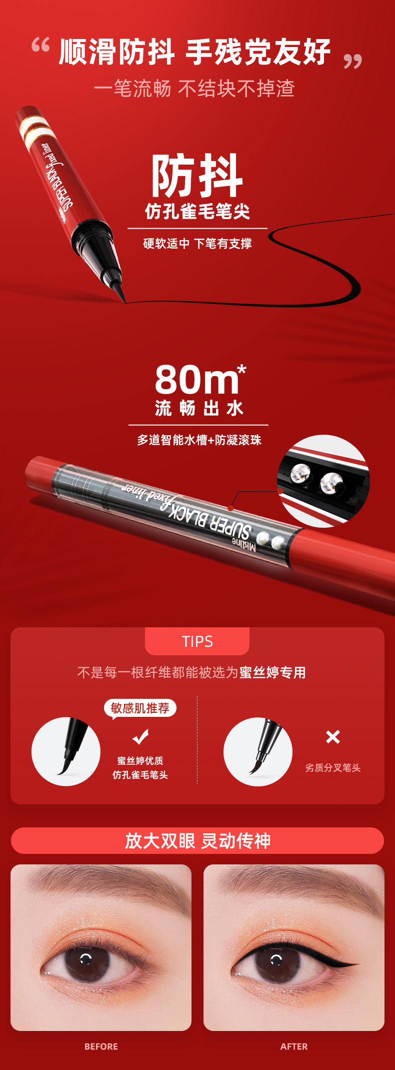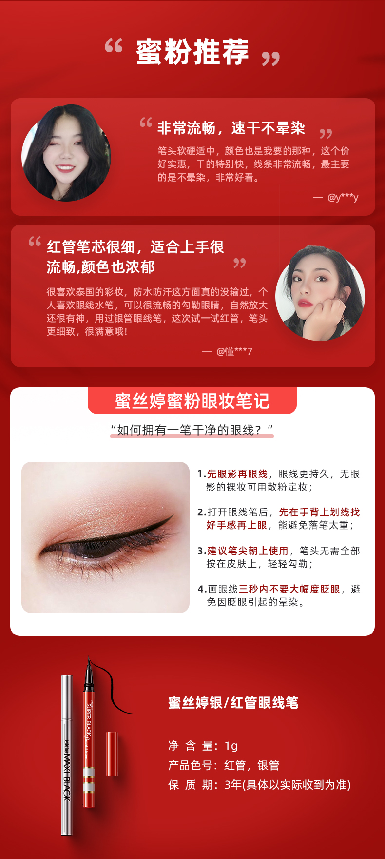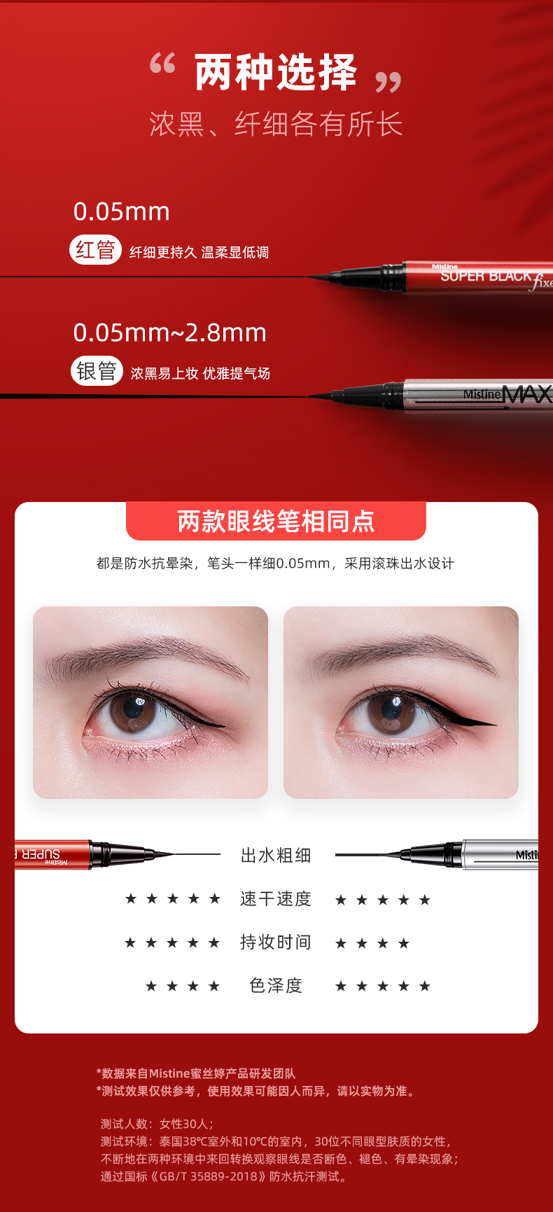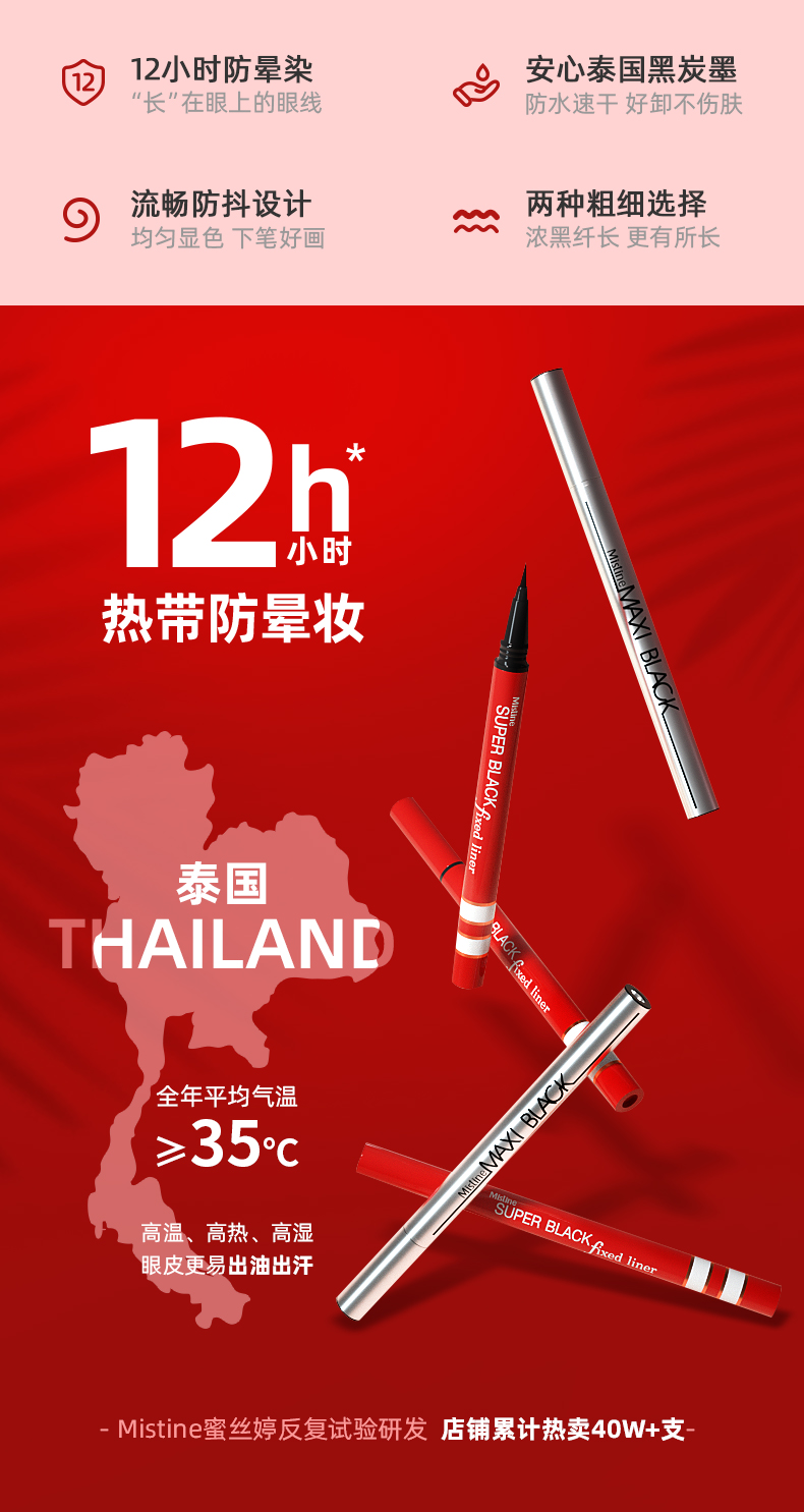 商品名称:Mistine/蜜丝婷 眼线液笔蜜丝婷持久极细胶笔不晕染防水 红管/银管 1g