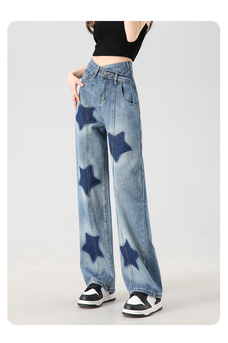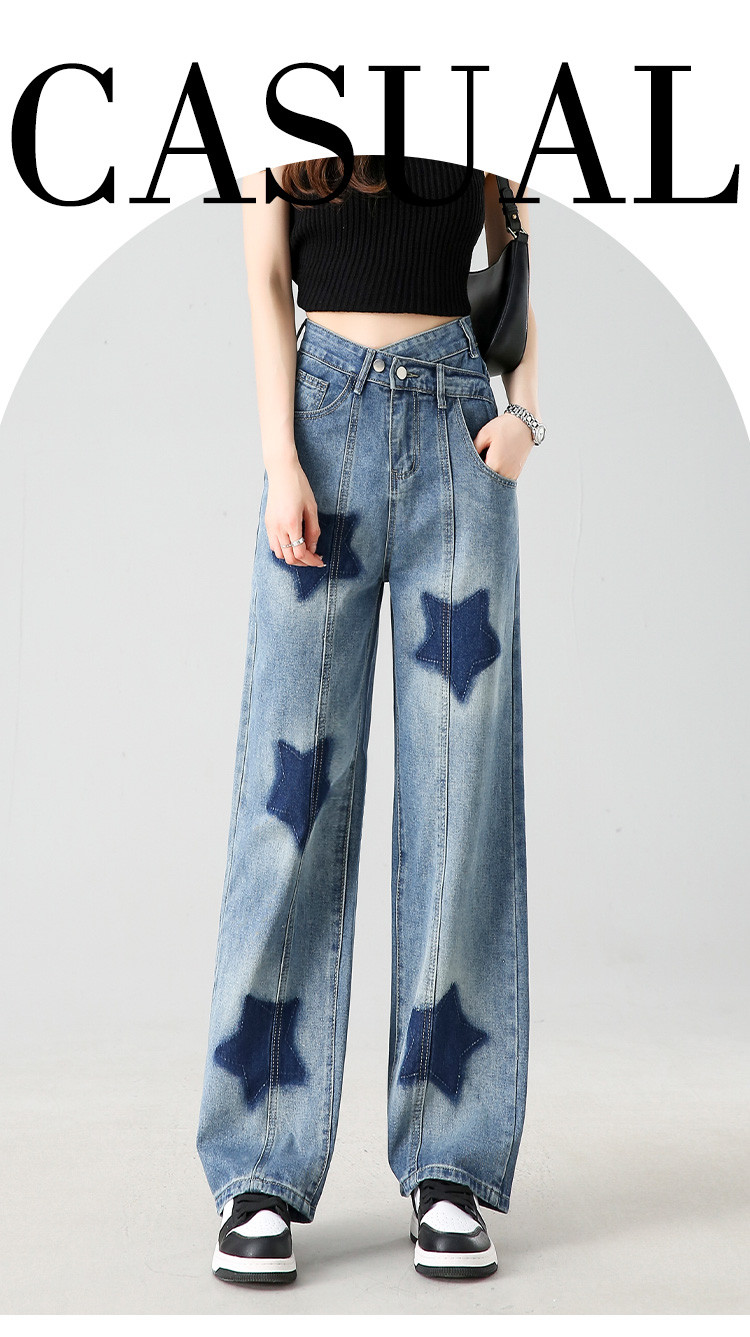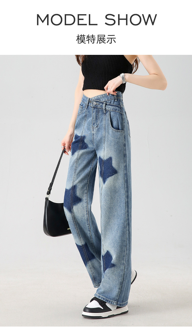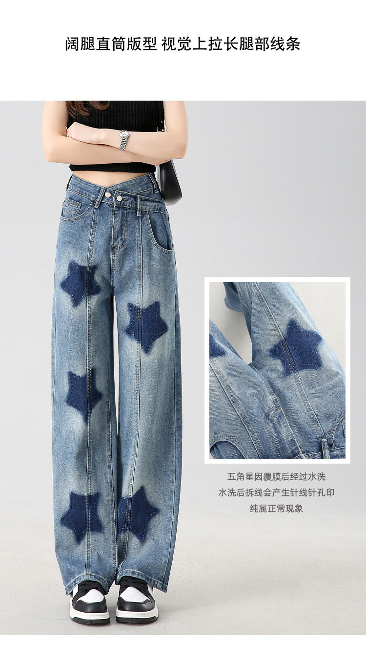 商品名称:【星星印花】阔腿牛仔裤夏季女式高腰宽松显瘦直筒裤 960344