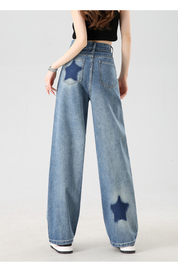 【星星印花】阔腿牛仔裤夏季女式高腰宽松显瘦直筒裤 960344
