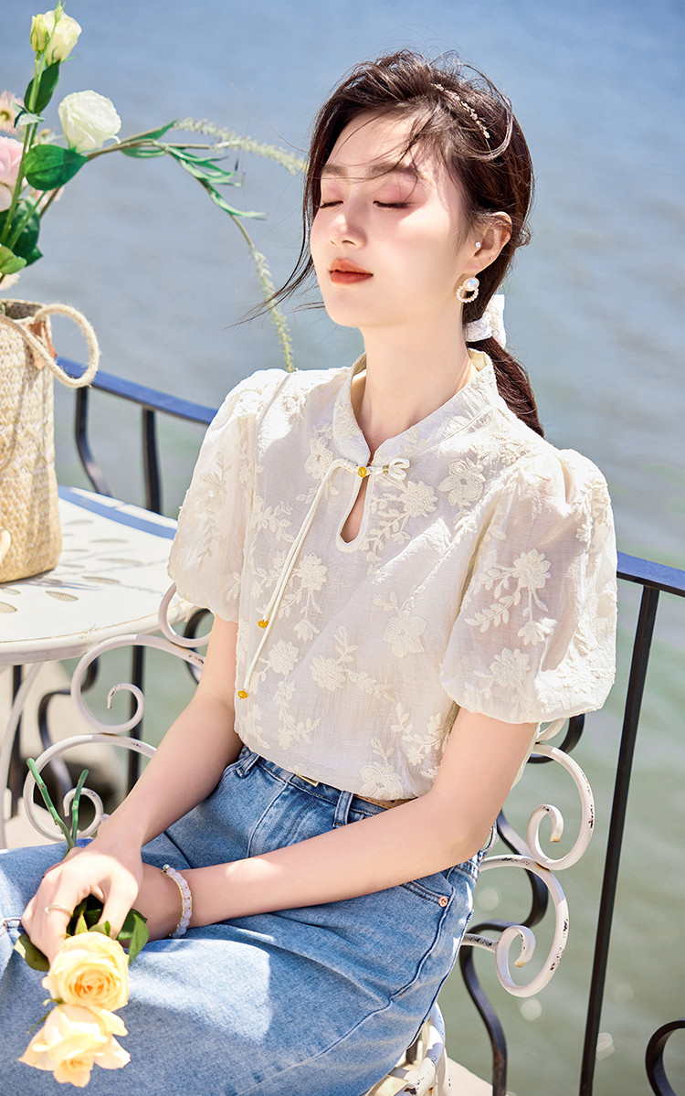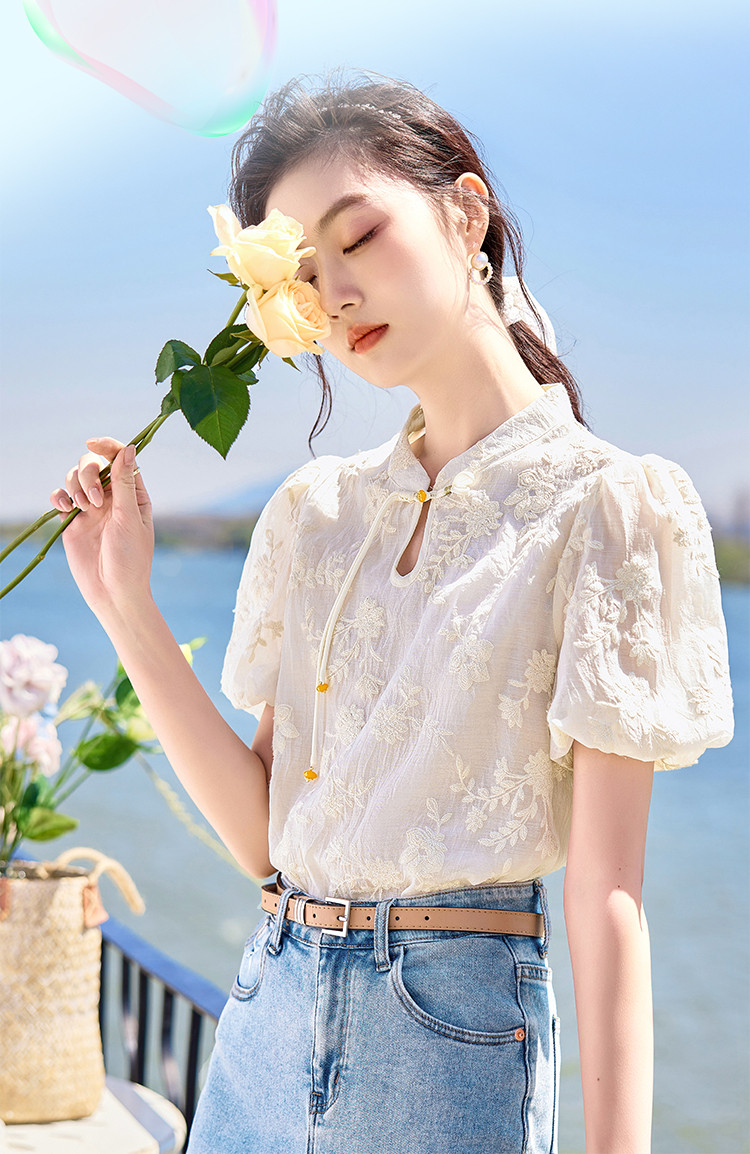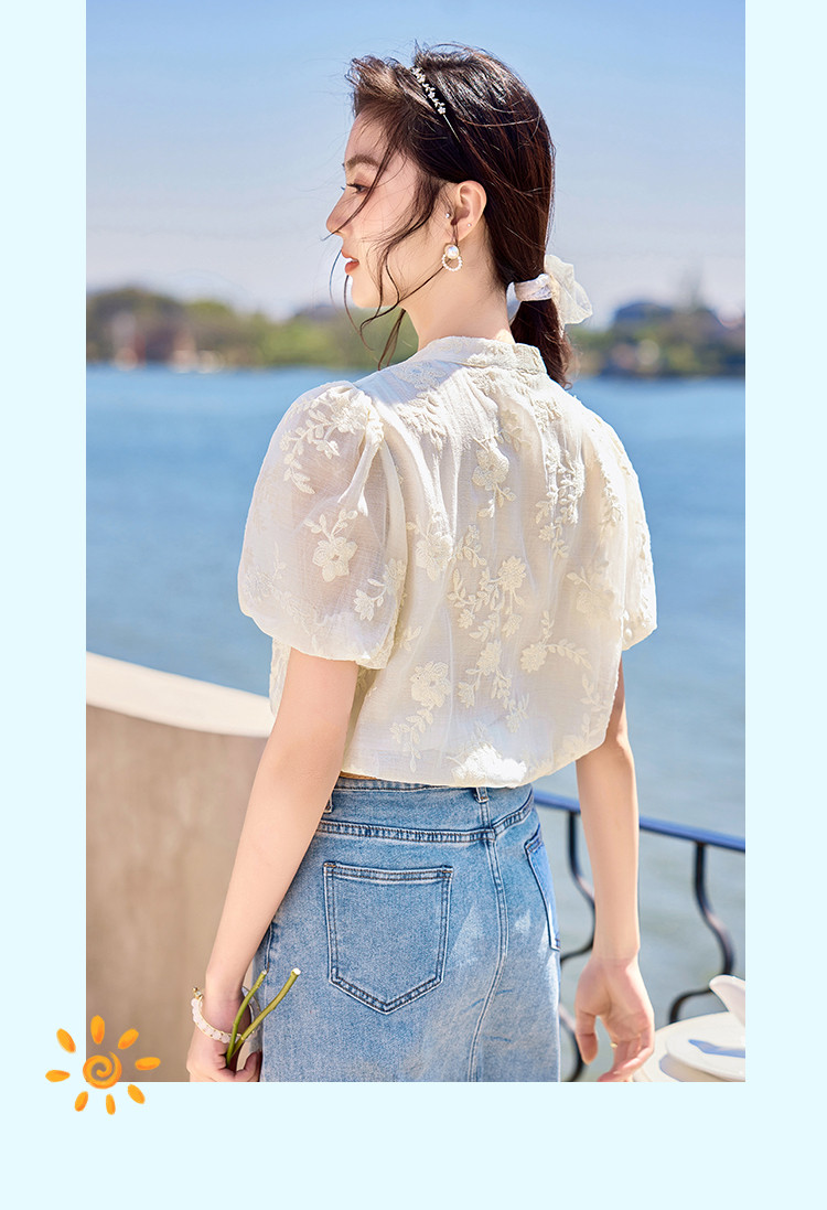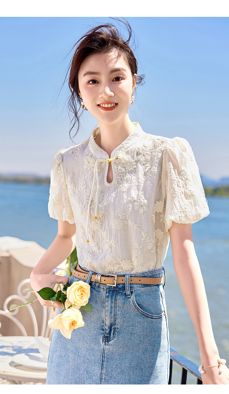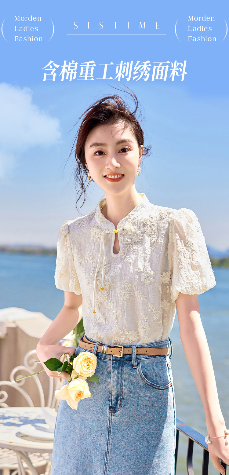 商品名称:【夏日海风】出游穿搭国风绣花设计感小众显瘦小个子女式衬衫 422744
