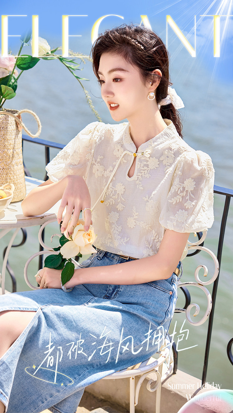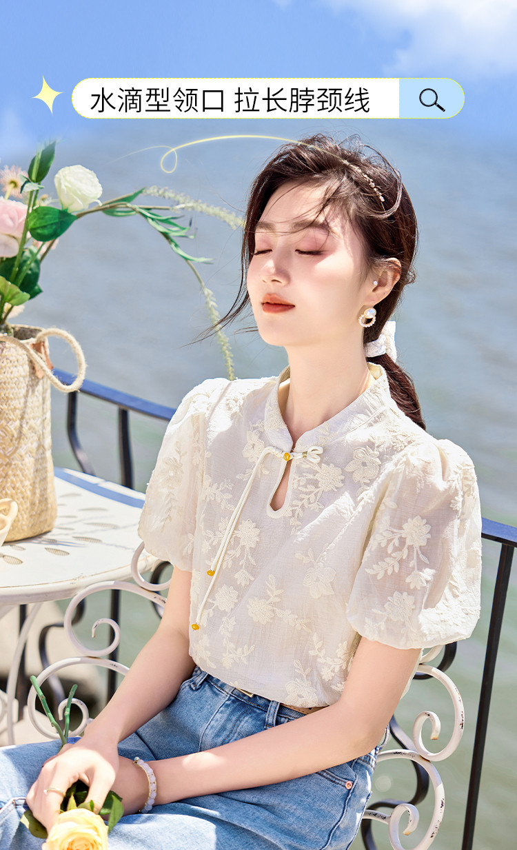 【夏日海风】出游穿搭国风绣花设计感小众显瘦小个子女式衬衫 422744