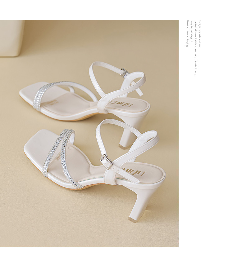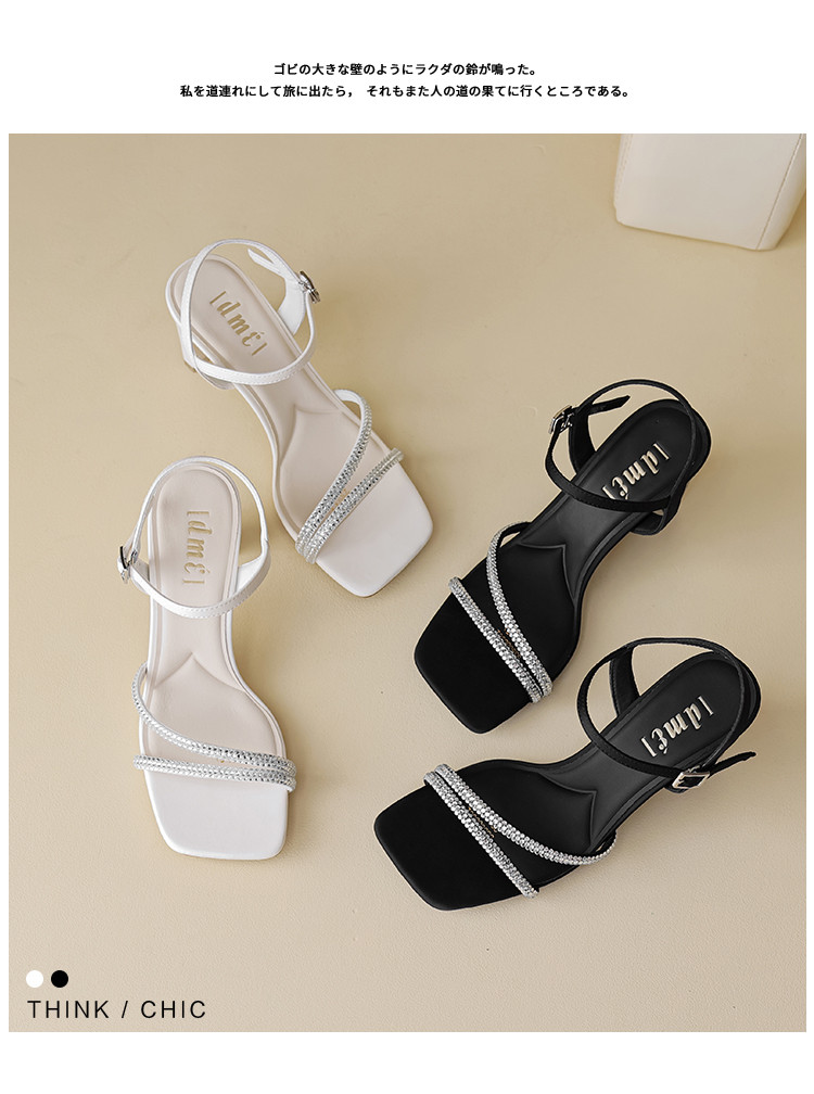 商品名称:夏季气质高级感闪亮水钻条带简约优雅随心百搭一字带女凉鞋 477441