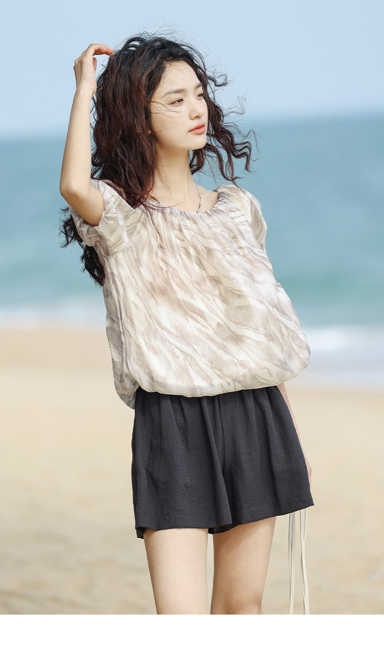 商品名称:【通勤风套头衫】夏松紧领口艺术晕染印花宽松显瘦衬衫女 560258