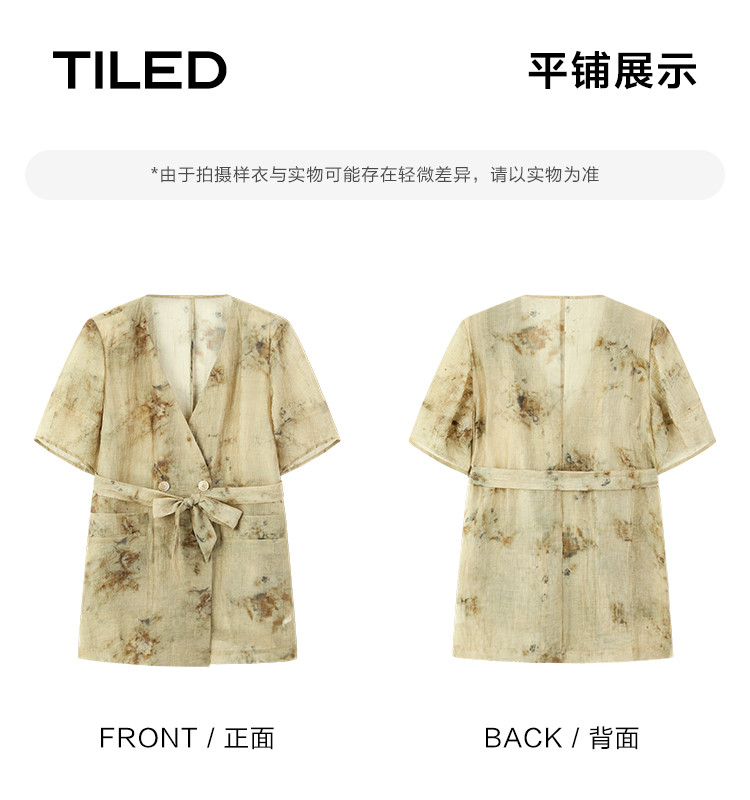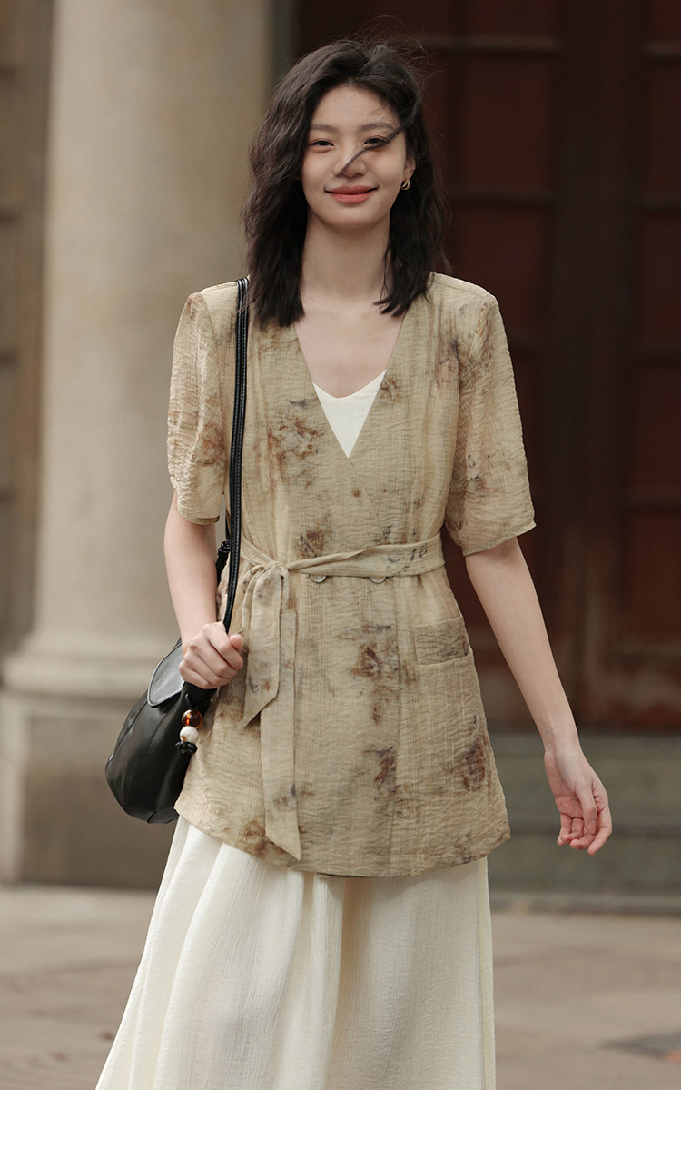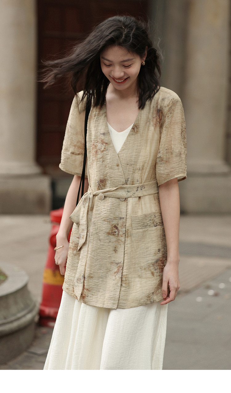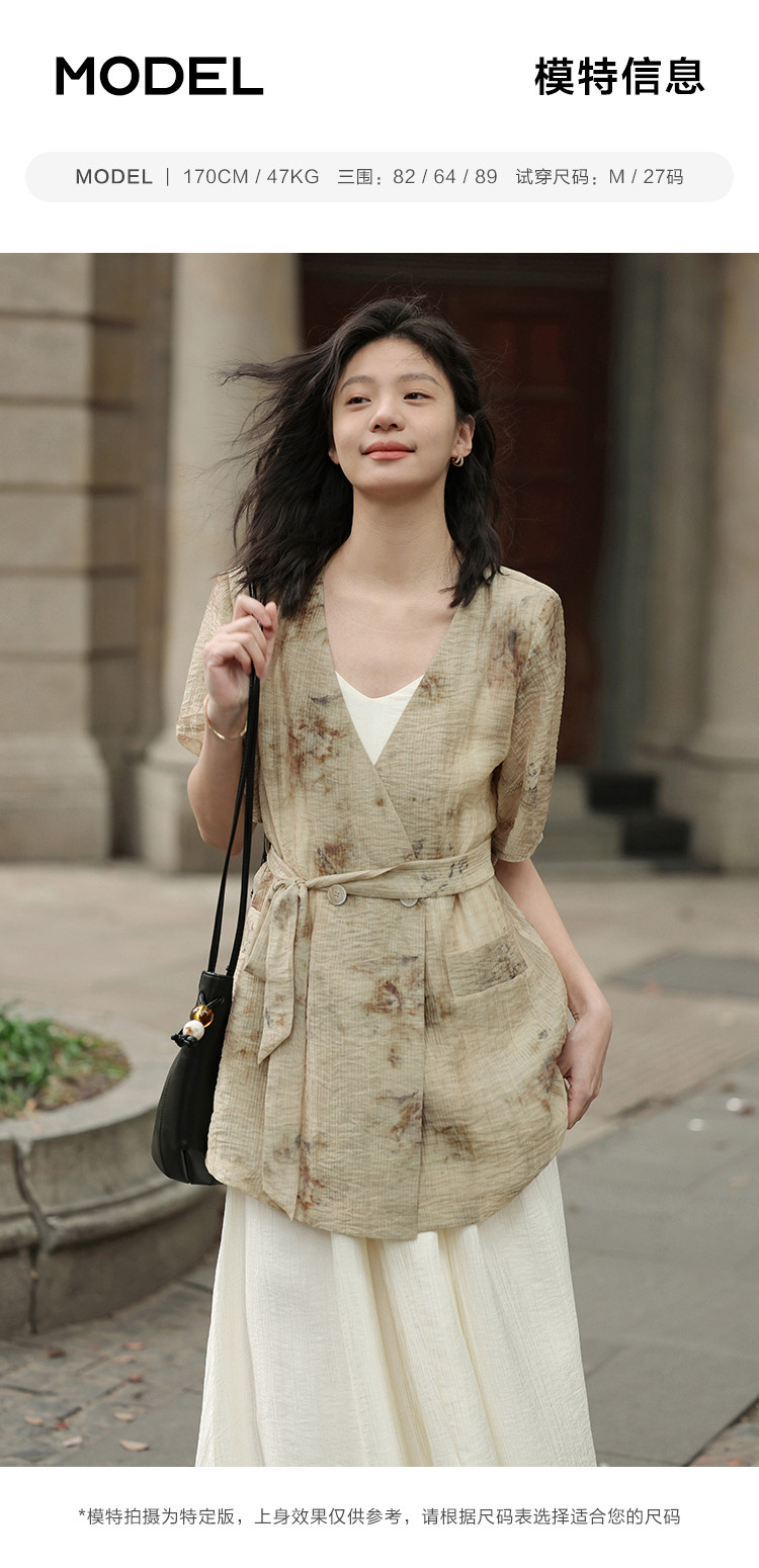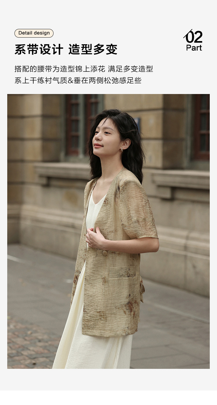 商品名称:【新中式晕染印花V领外套】夏款可系腰带西装外套女 818306