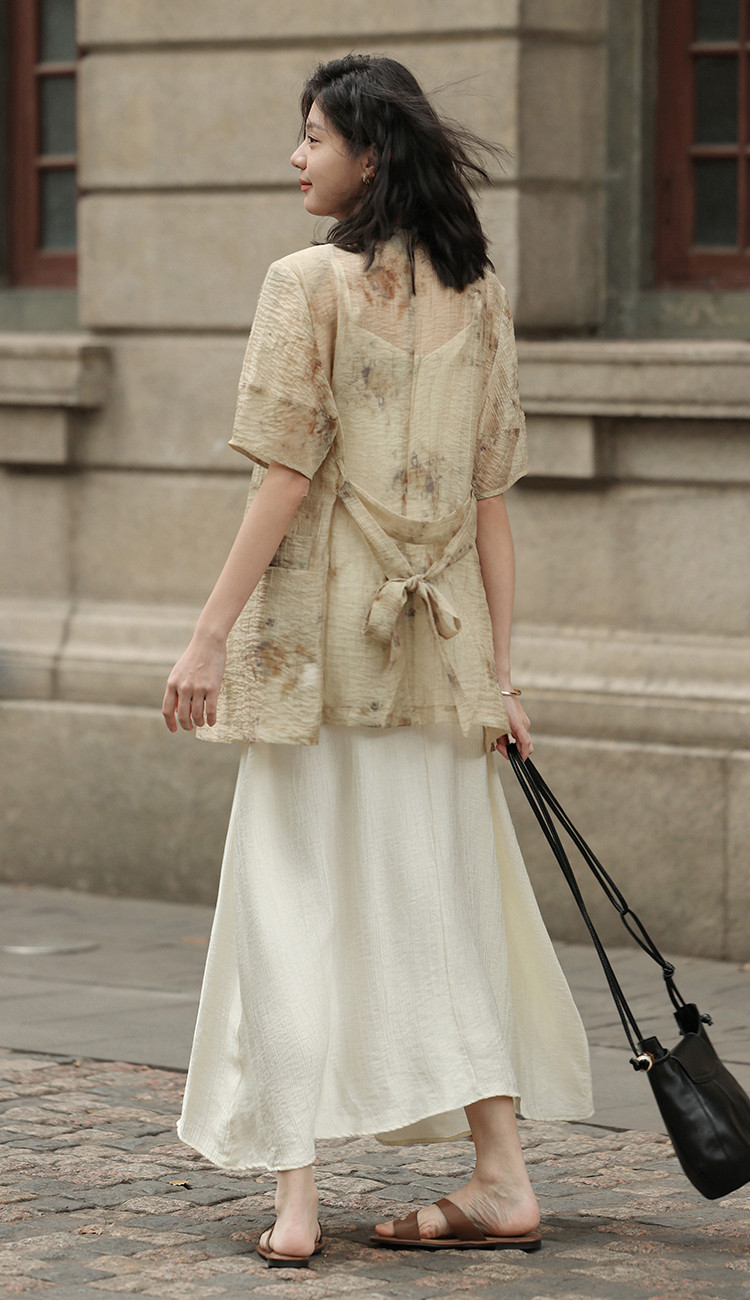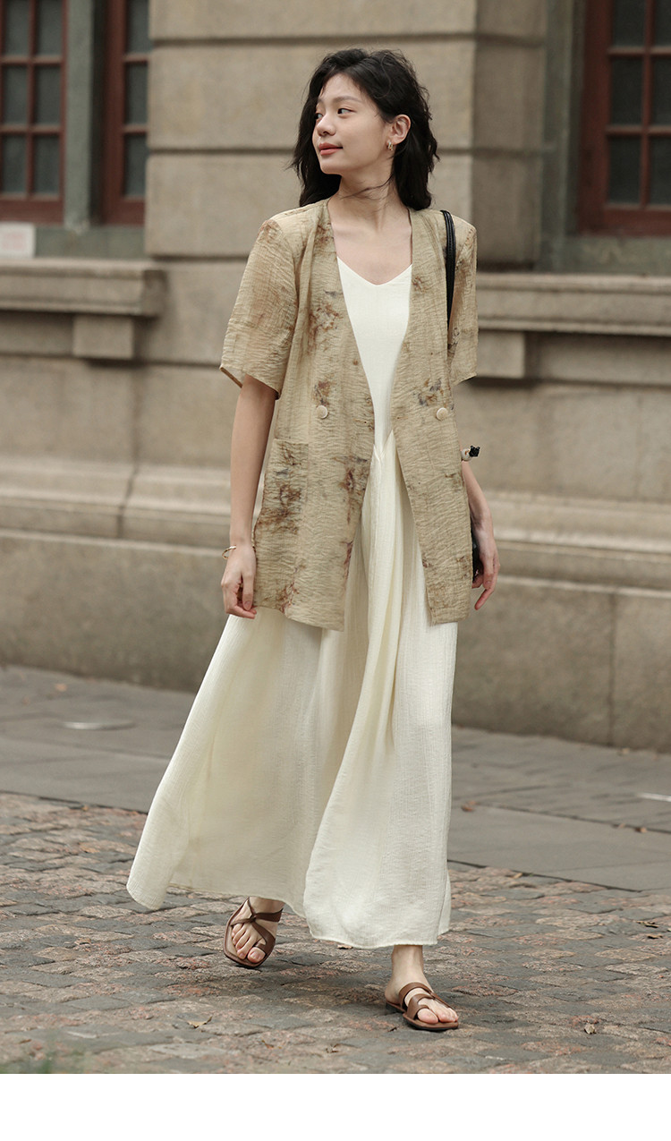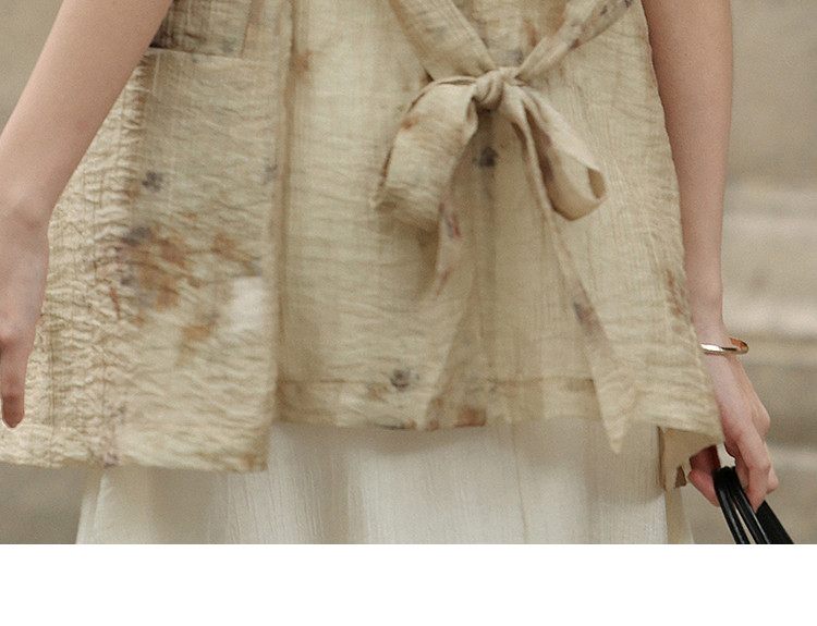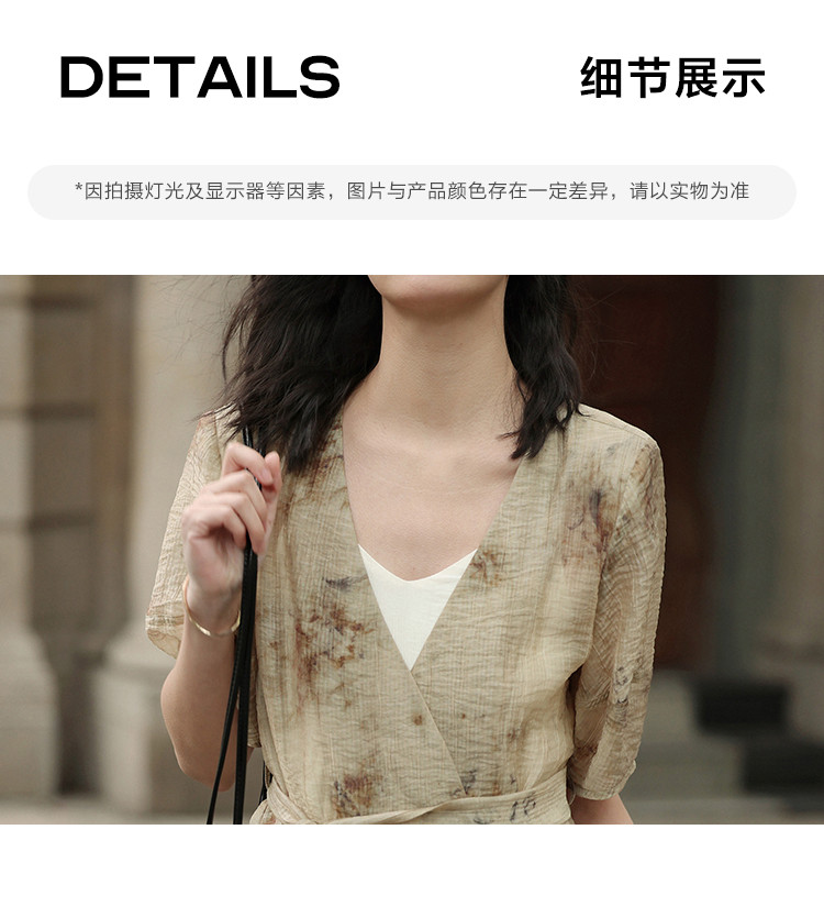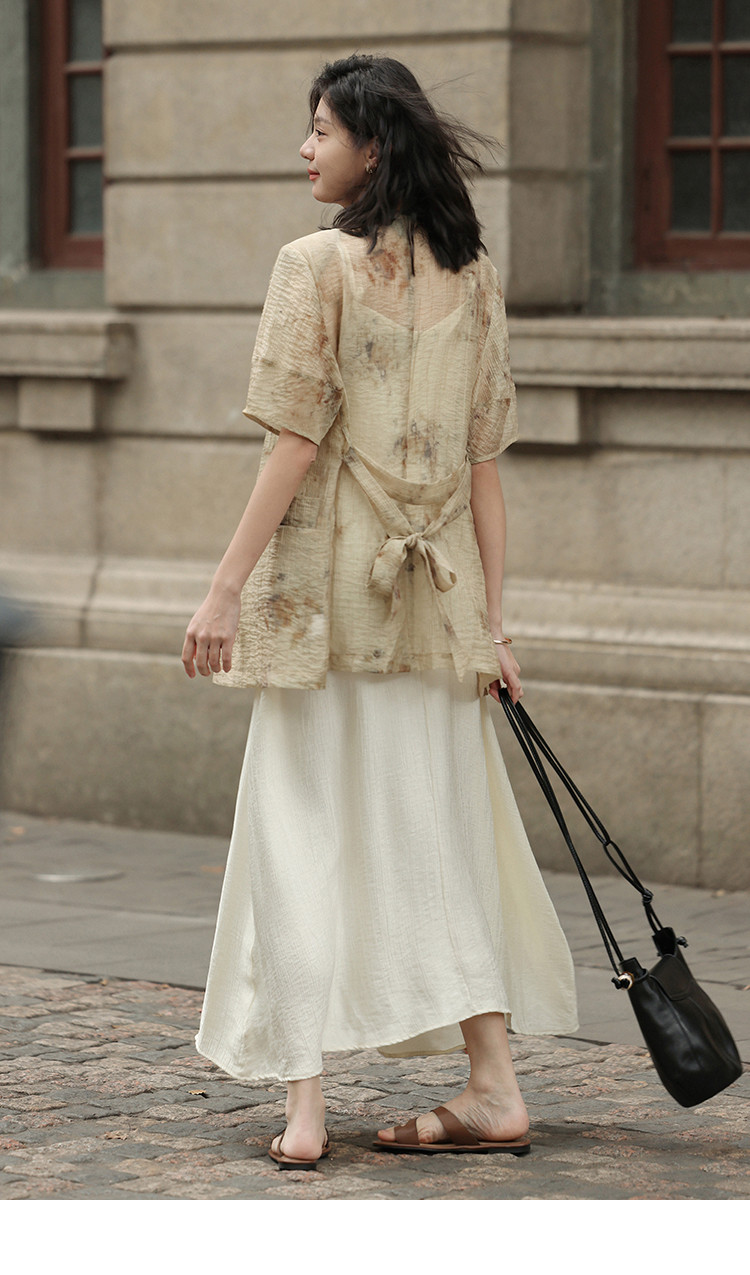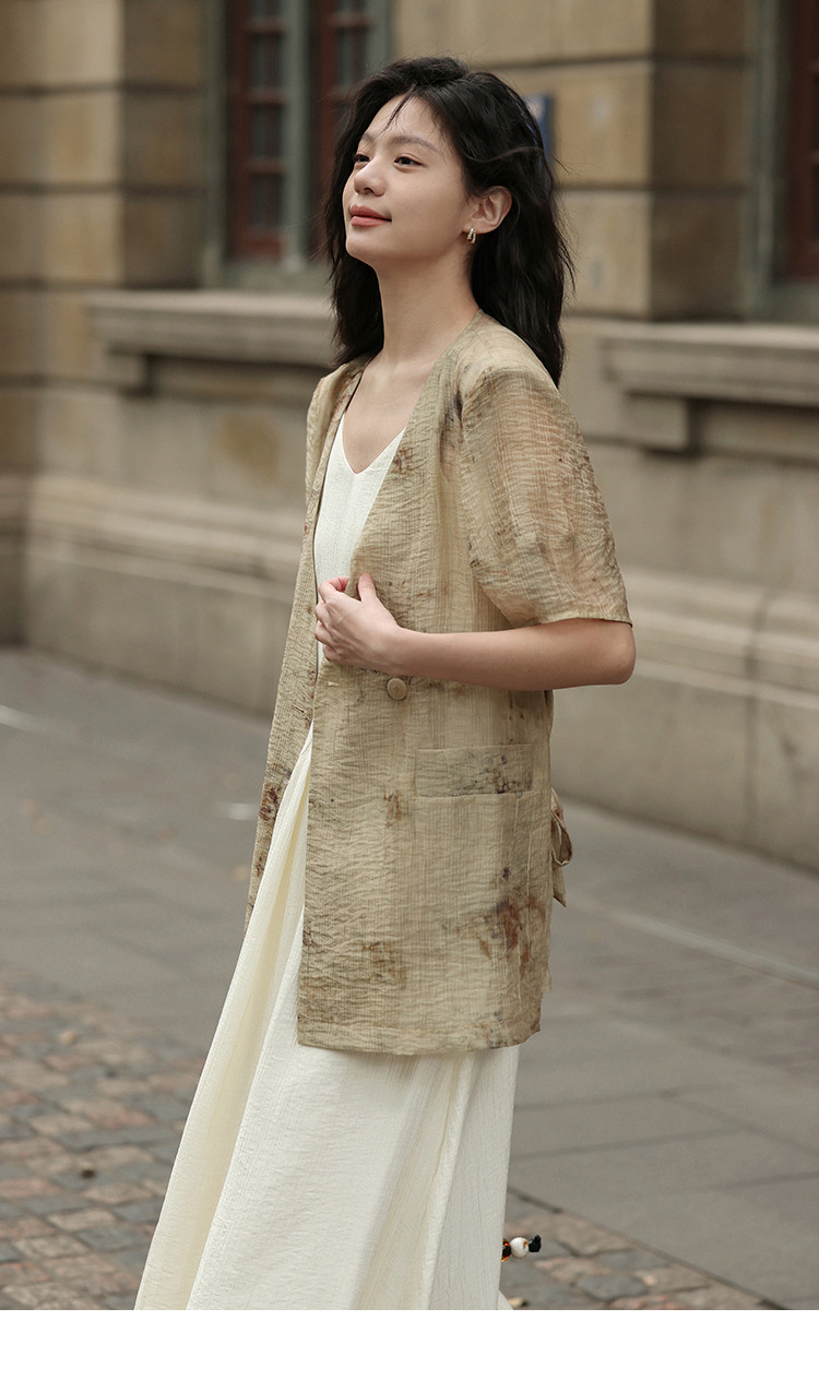 商品名称:【新中式晕染印花V领外套】夏款可系腰带西装外套女 818306