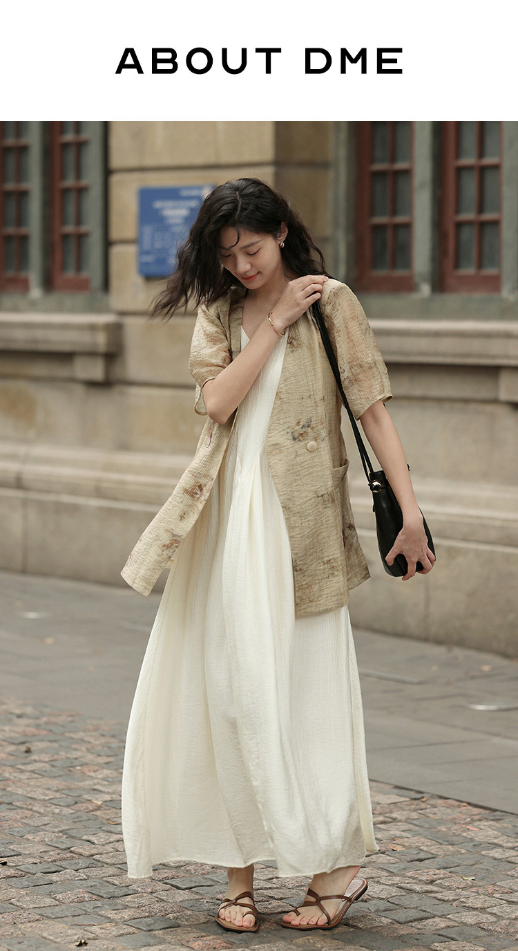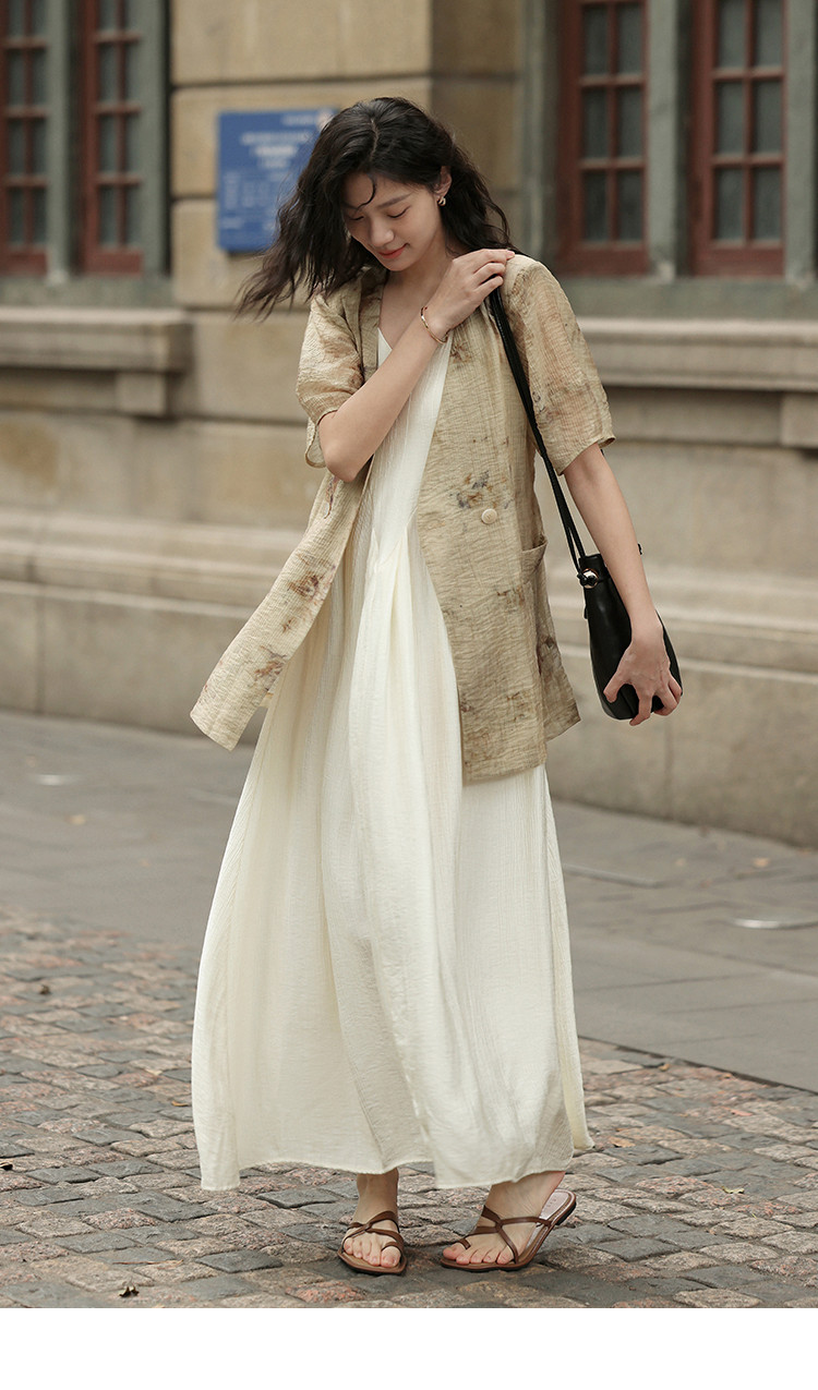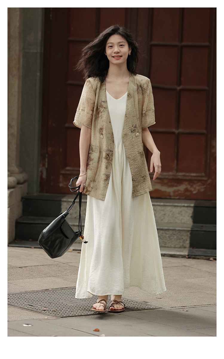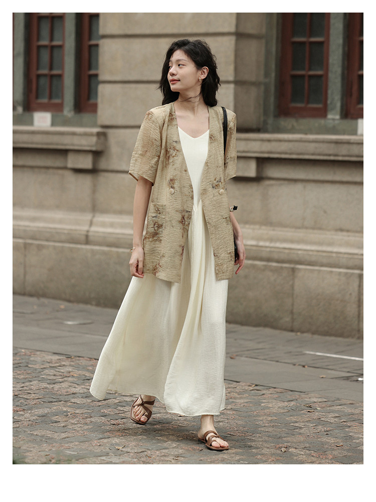 【新中式晕染印花V领外套】夏款可系腰带西装外套女 818306