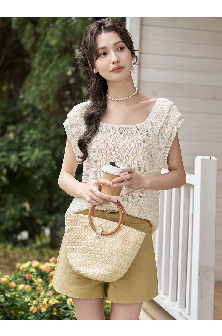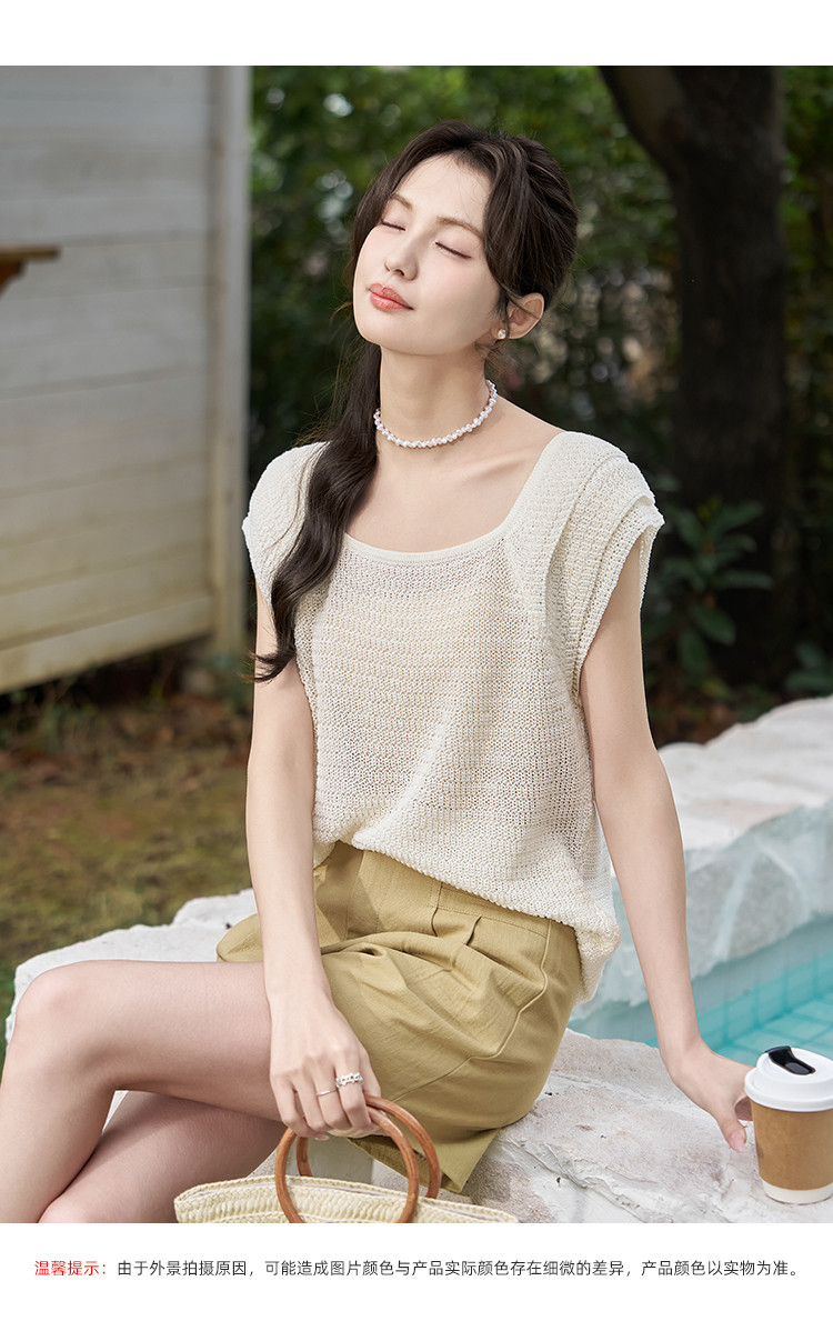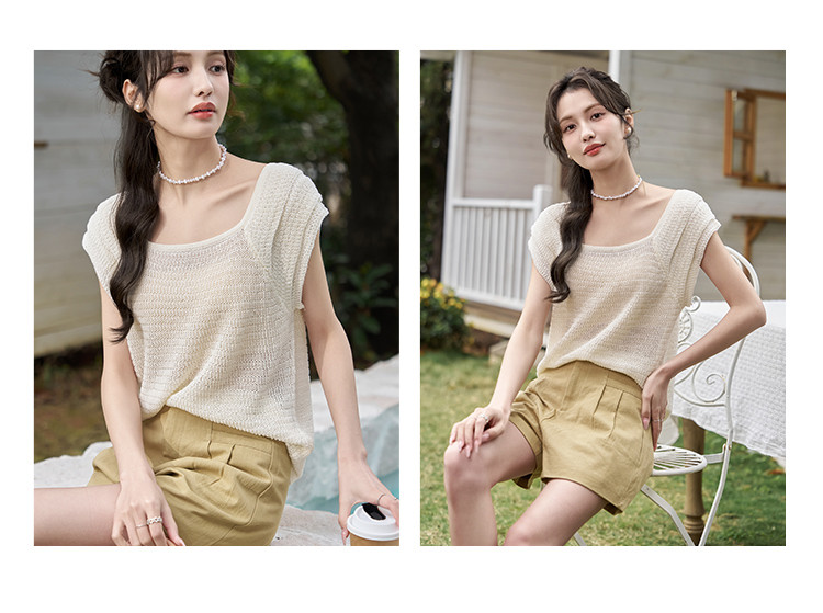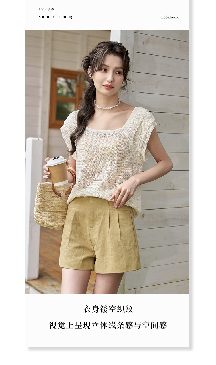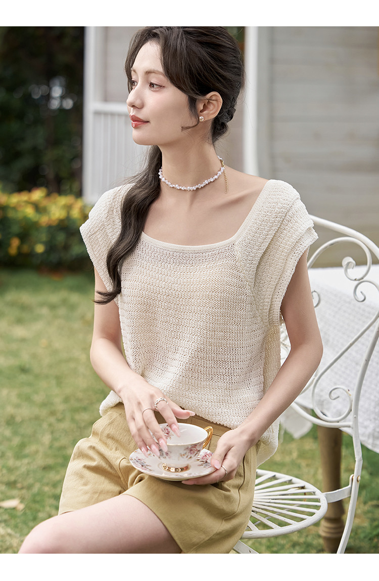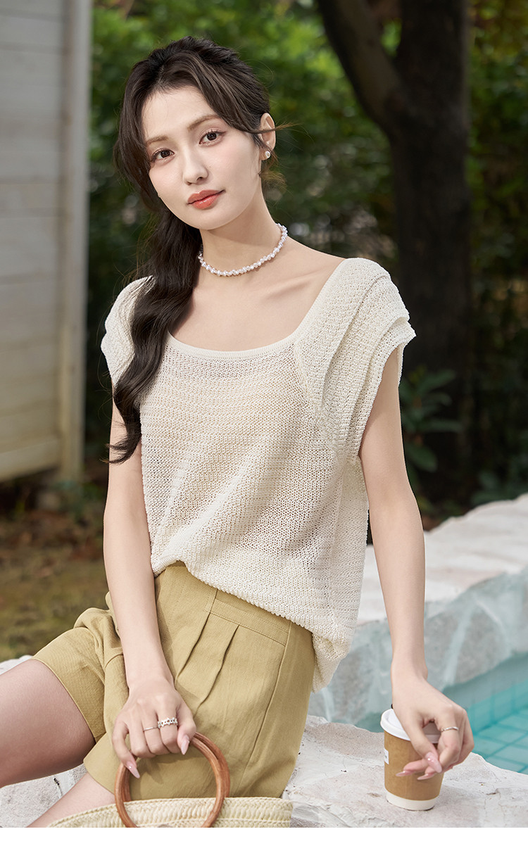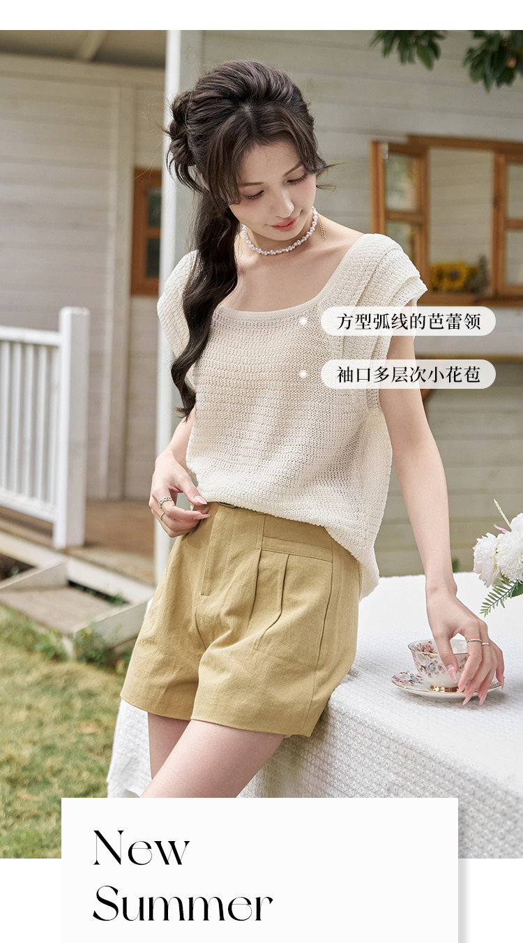 商品名称:【镂空显瘦针织衫女】优雅芭蕾领时尚花瓣袖休闲透气高级感女上衣 529985