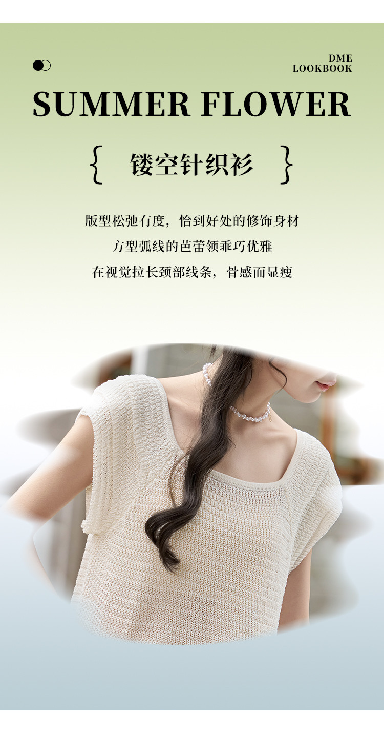 【镂空显瘦针织衫女】优雅芭蕾领时尚花瓣袖休闲透气高级感女上衣 529985