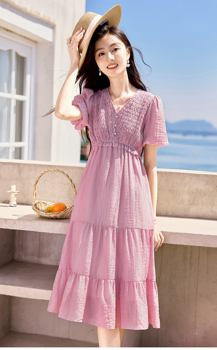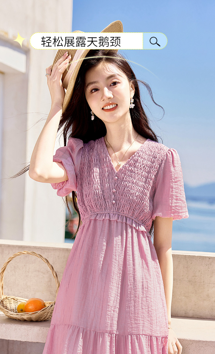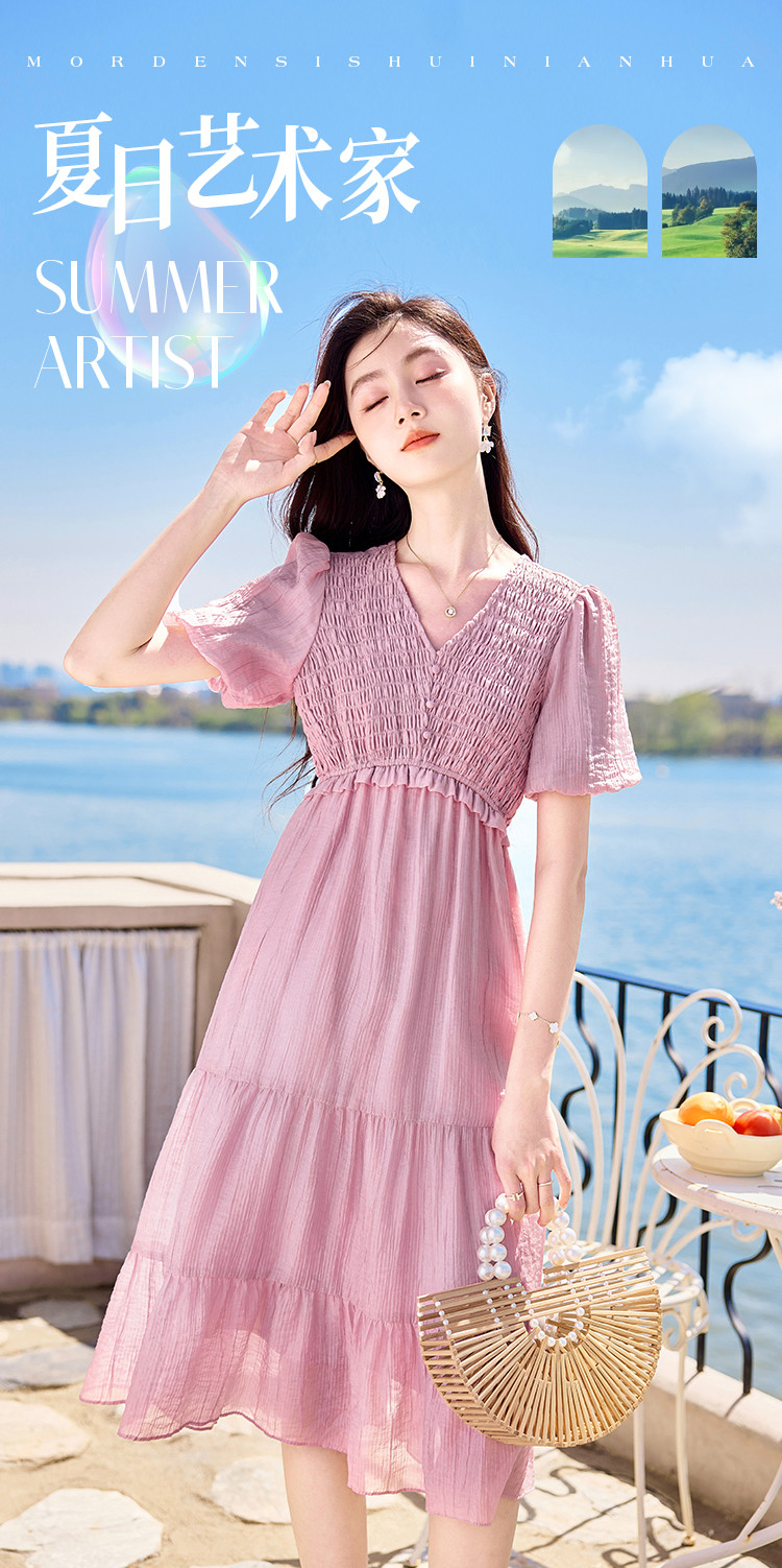 商品名称:【夏日海风】出游穿搭气质设计感小众时尚显瘦小个子连衣裙 557592