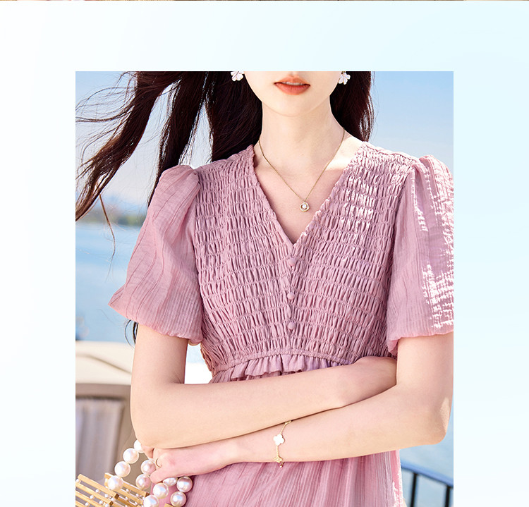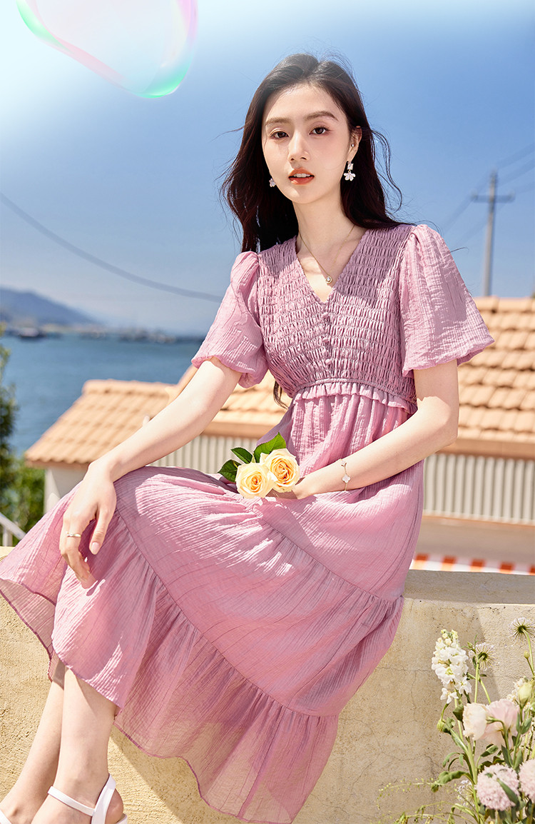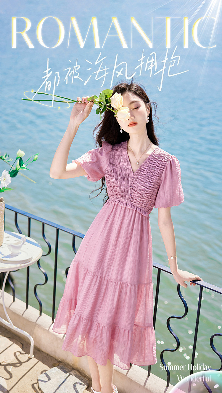 【夏日海风】出游穿搭气质设计感小众时尚显瘦小个子连衣裙 557592