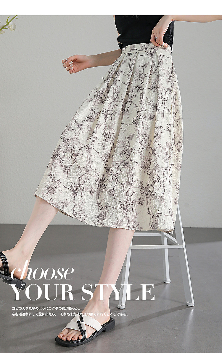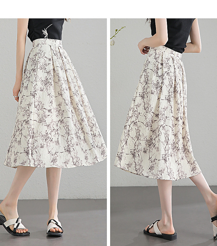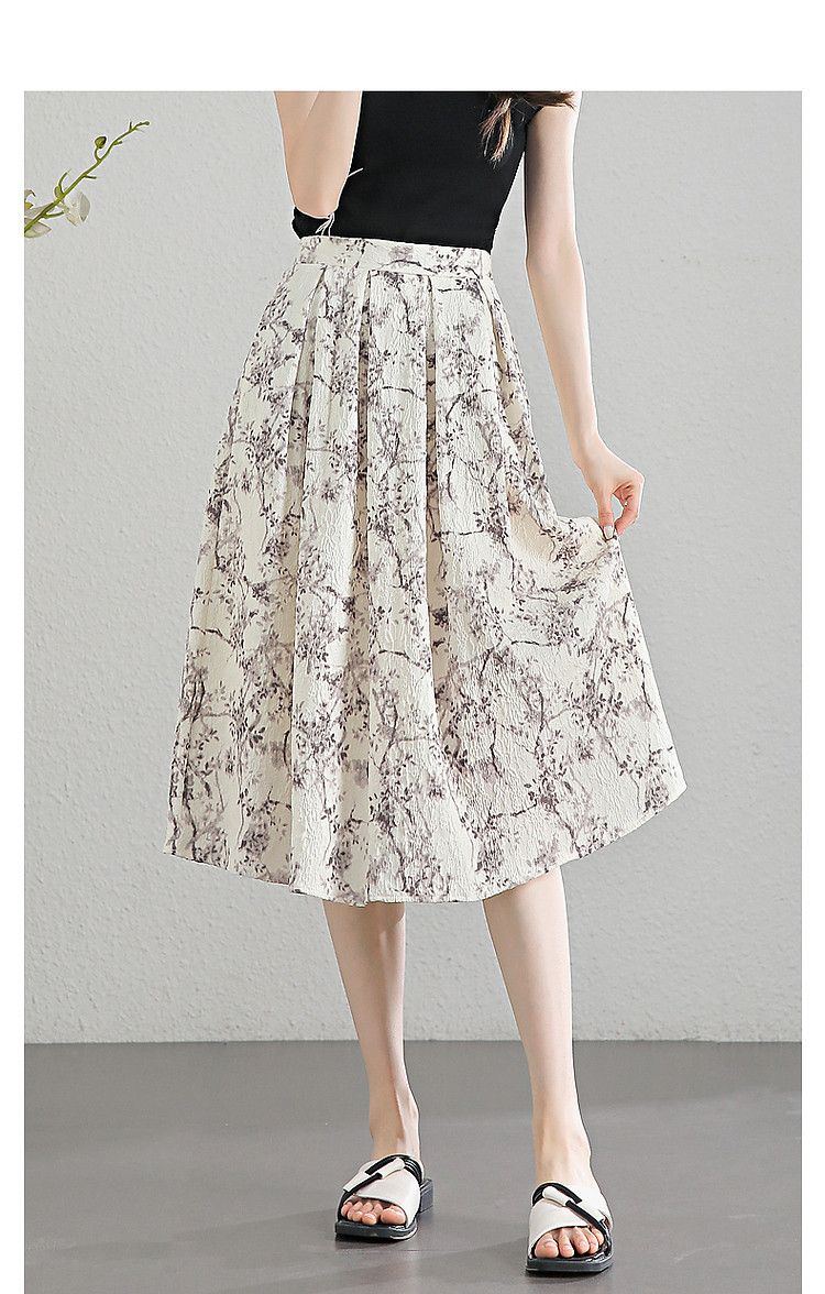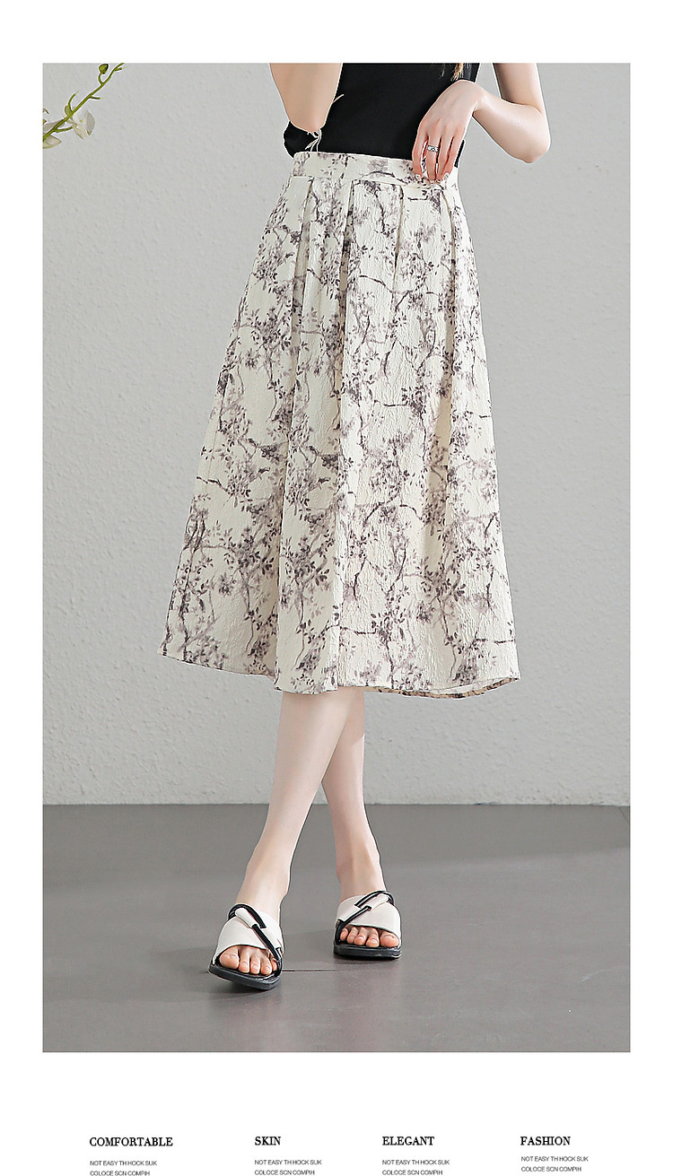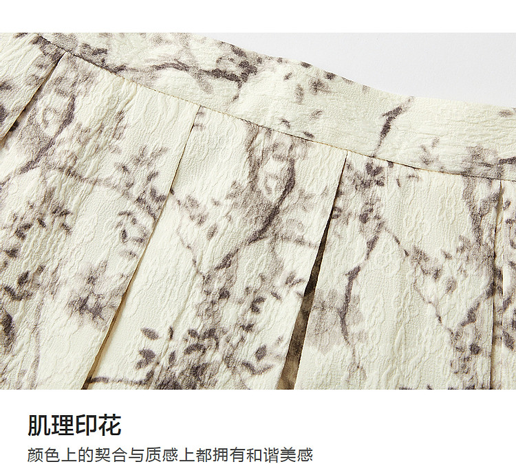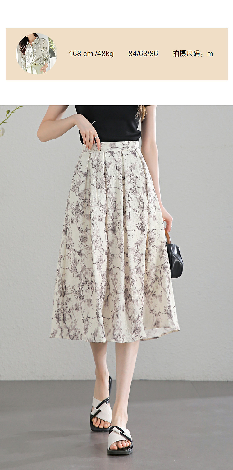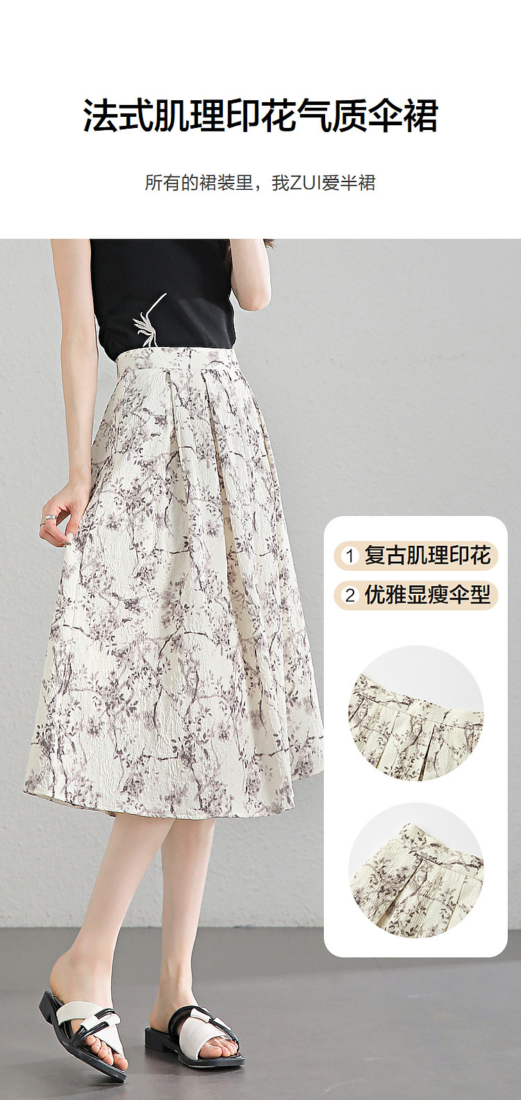 商品名称:【复古浪漫精髓】夏法式肌理印花伞裙松紧腰a字半身裙女中长款 737281