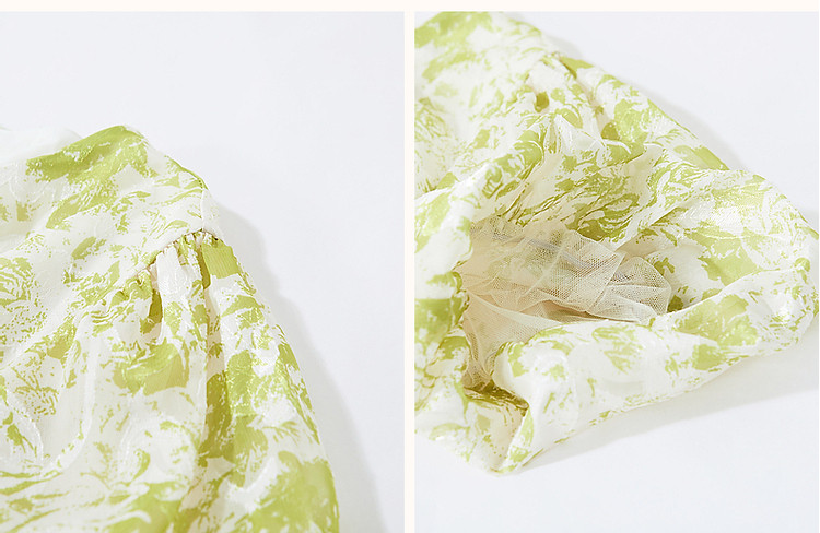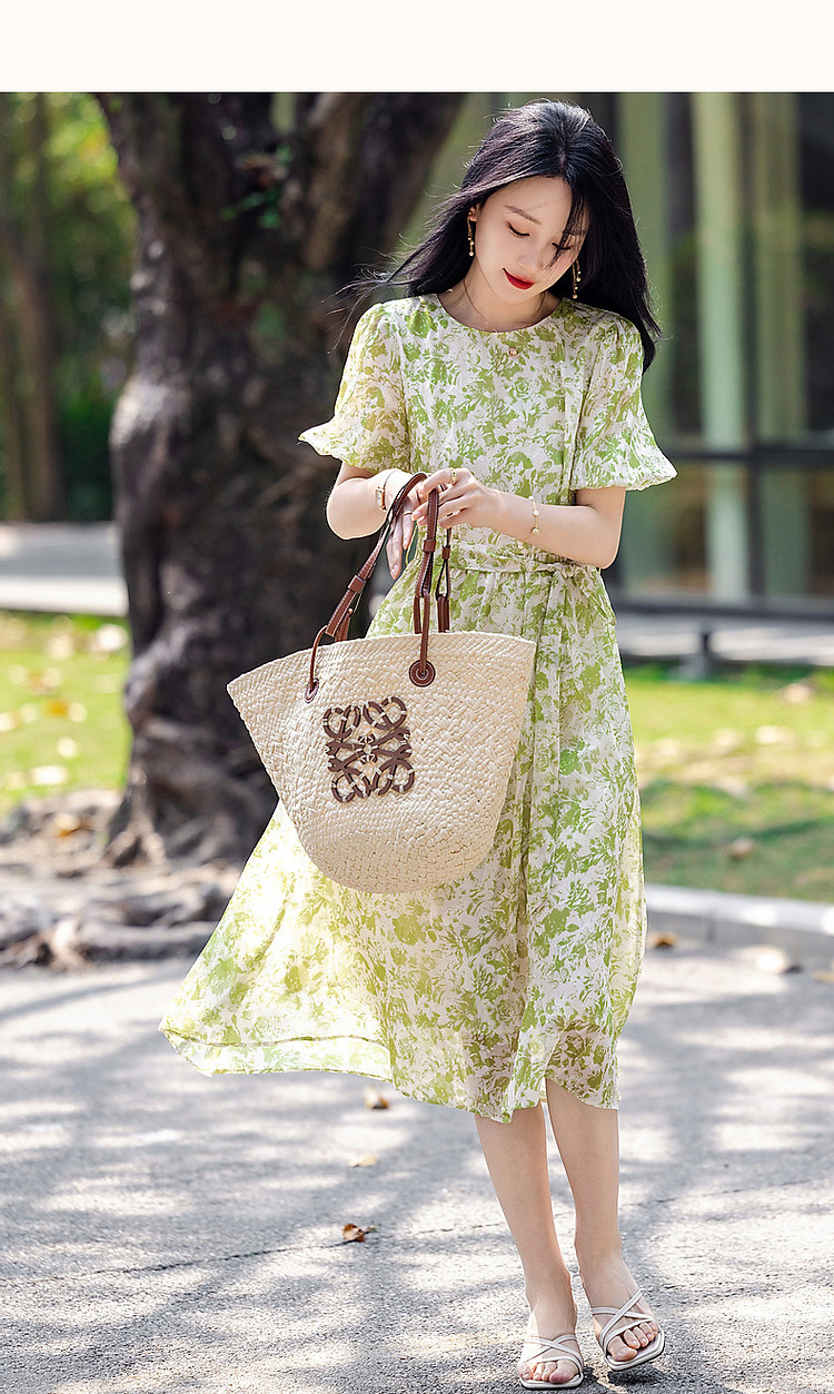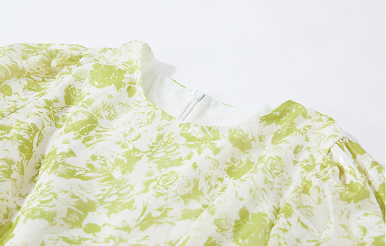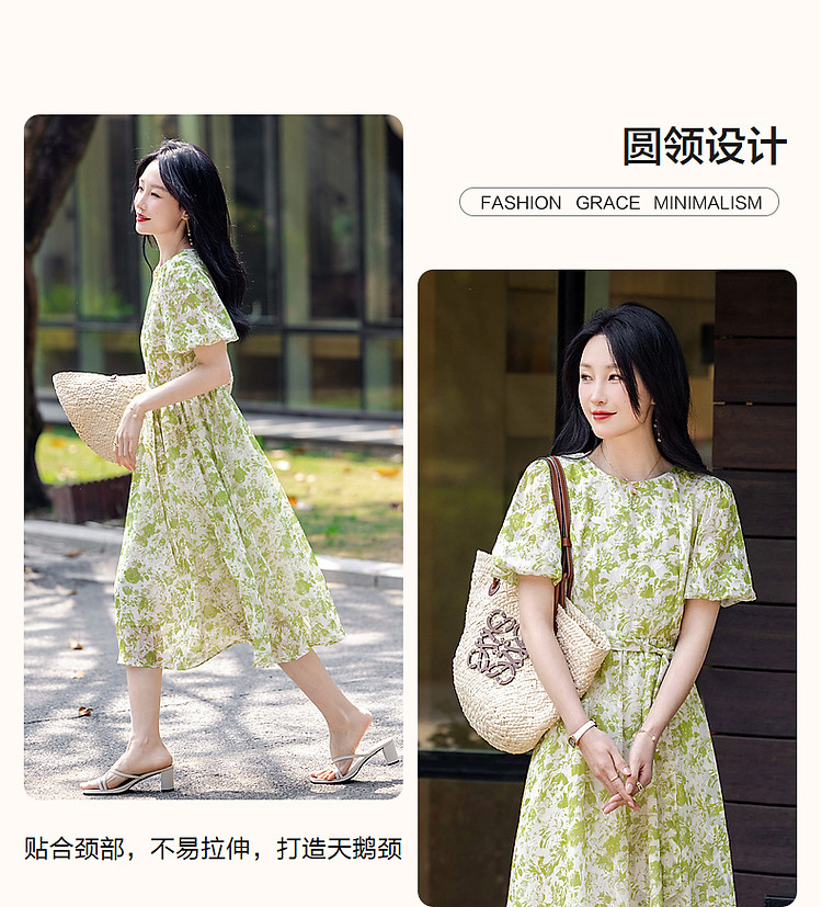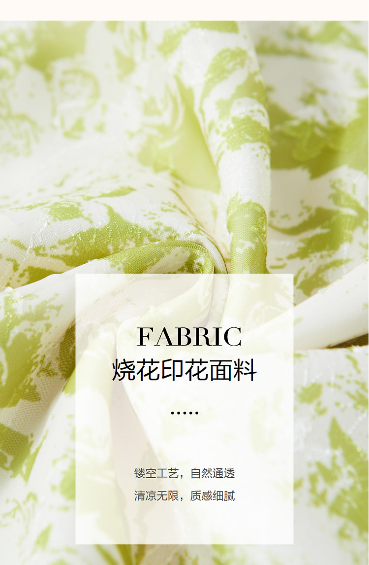 商品名称:【薄荷曼波】夏法式烧花镂空工艺印花泡泡袖系带大摆藏肉连衣裙 200065