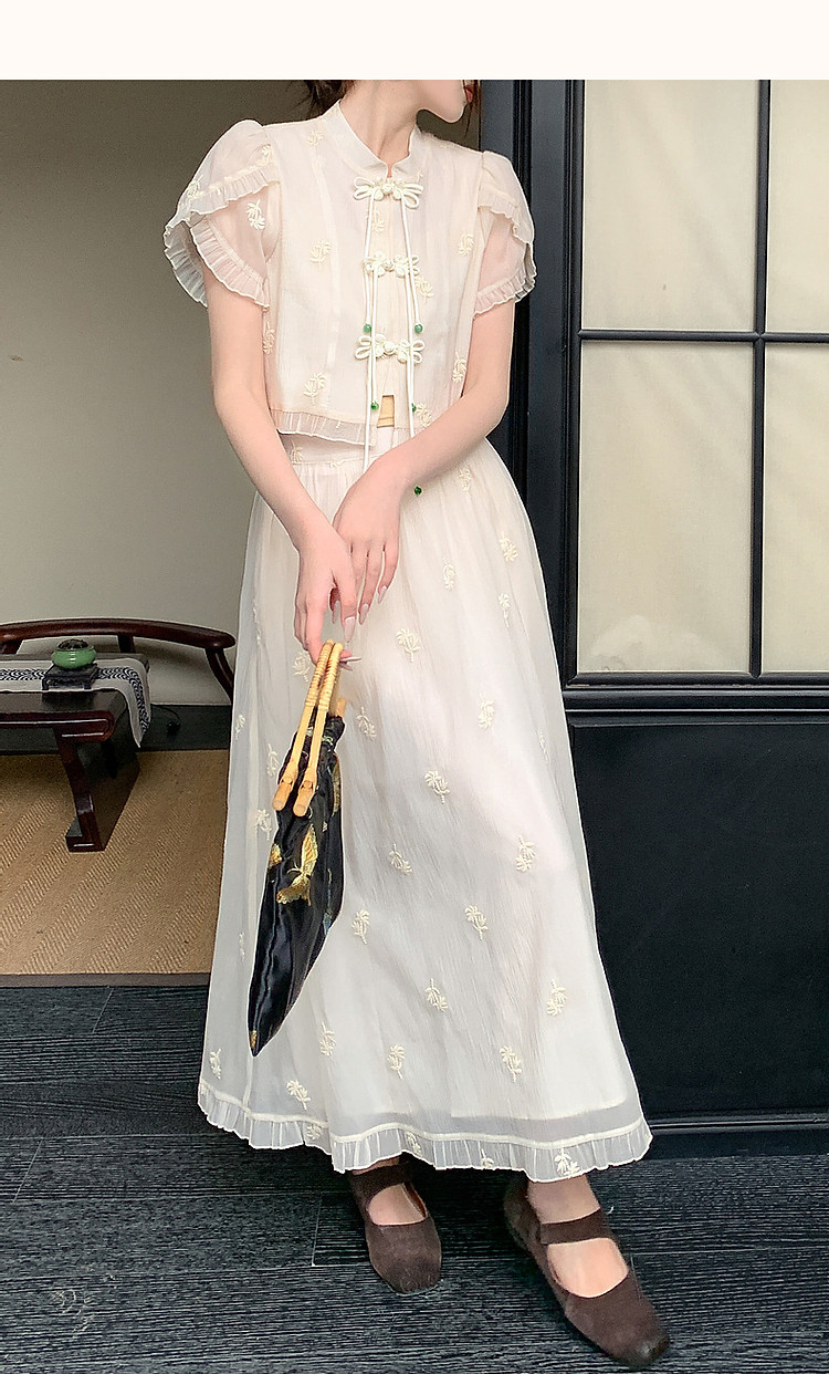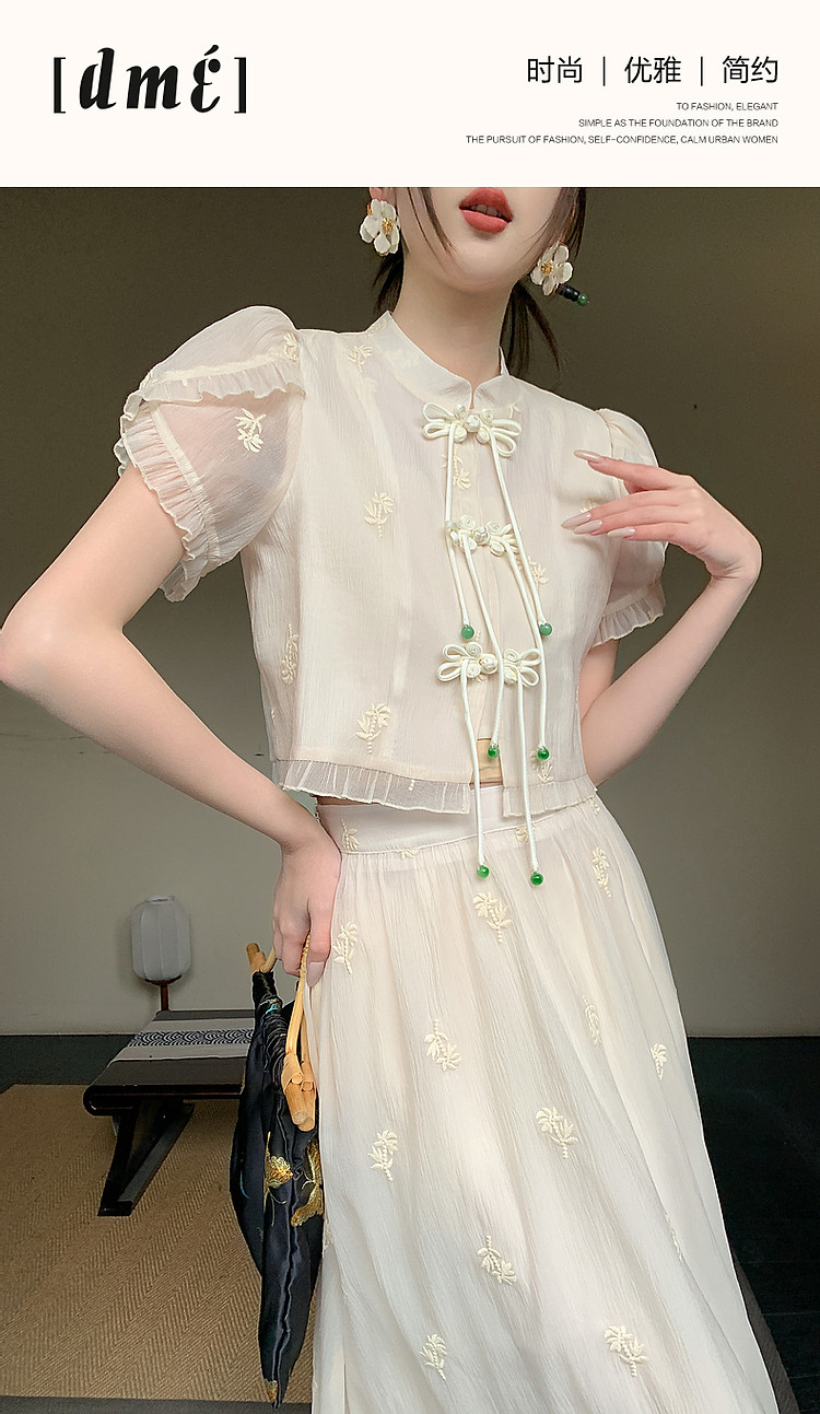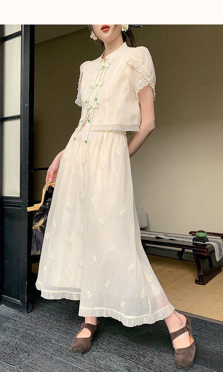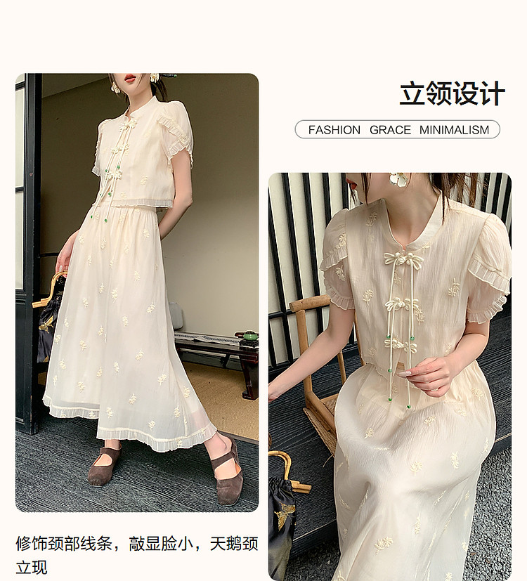 商品名称:【下江南系列】夏国风新中式立领花瓣袖套装刺绣两件套女 046465
