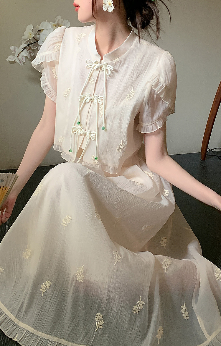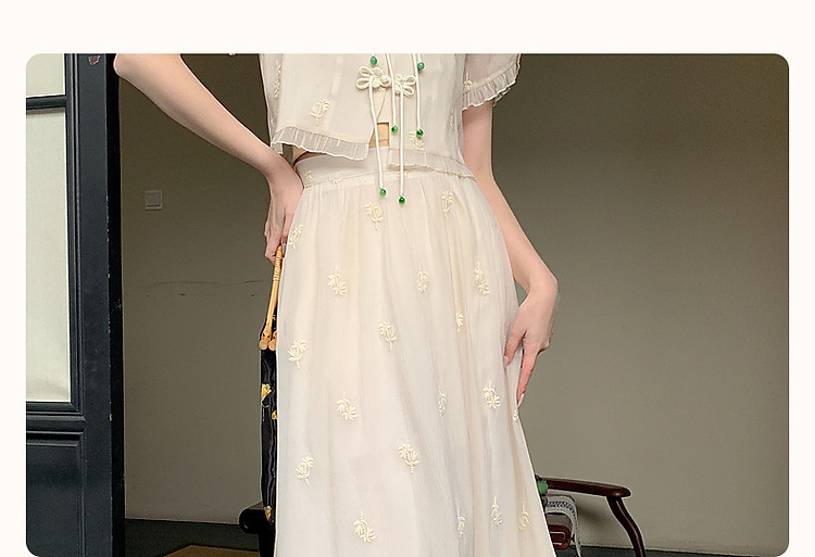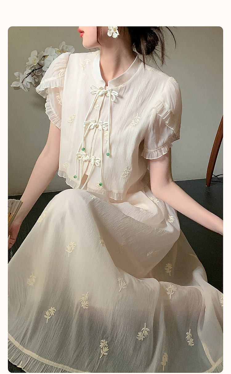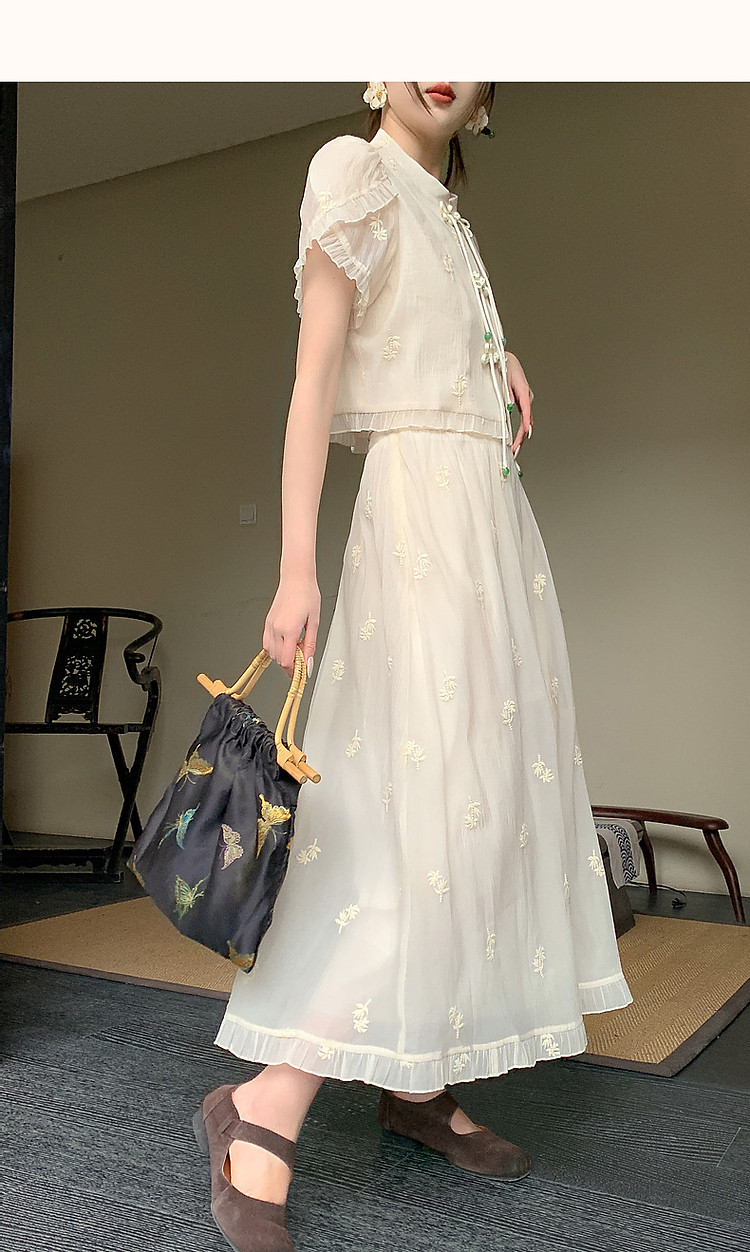 商品名称:【下江南系列】夏国风新中式立领花瓣袖套装刺绣两件套女 046465