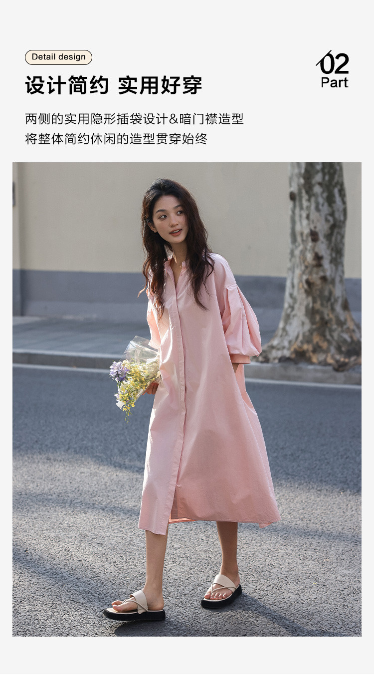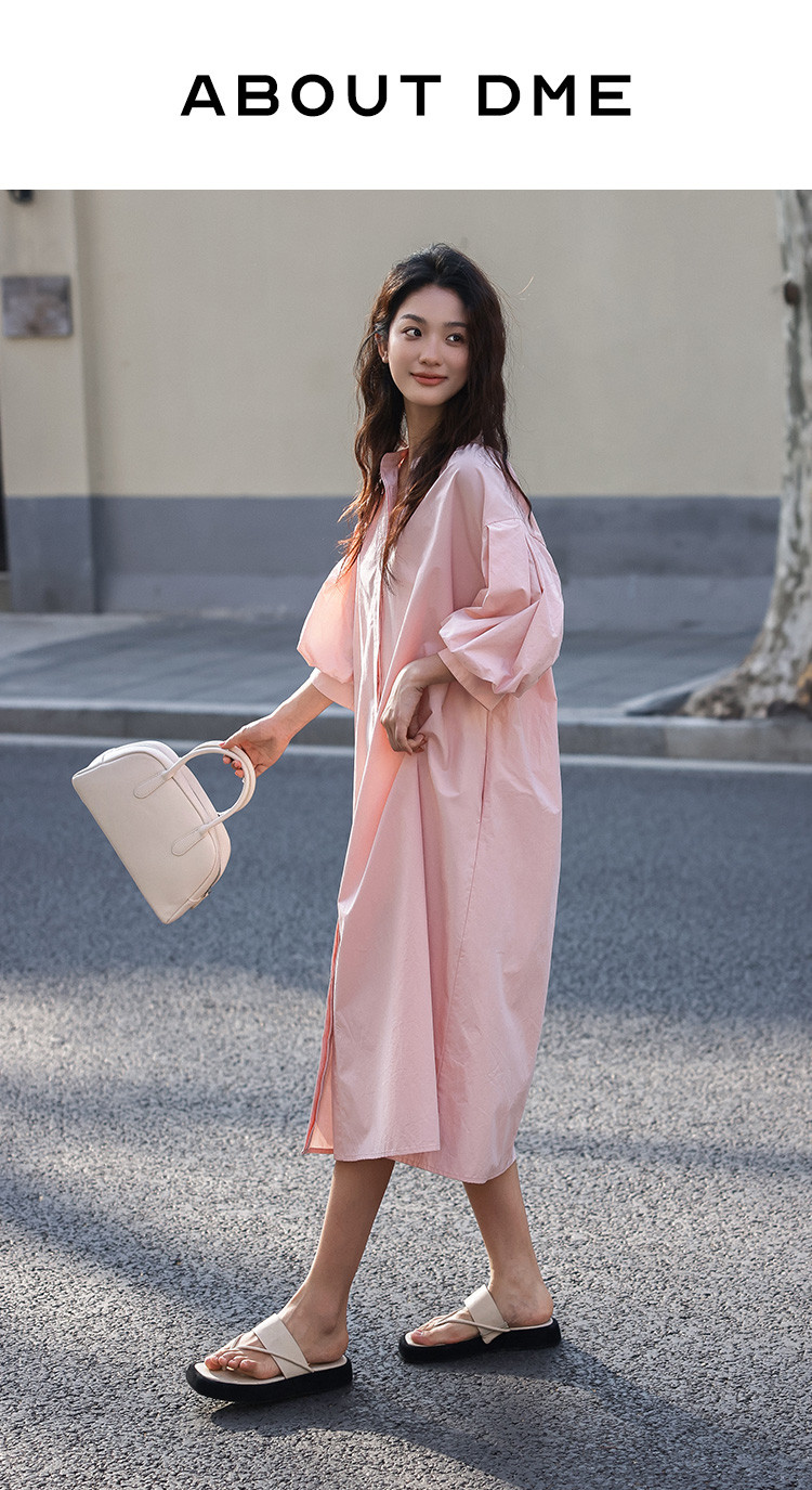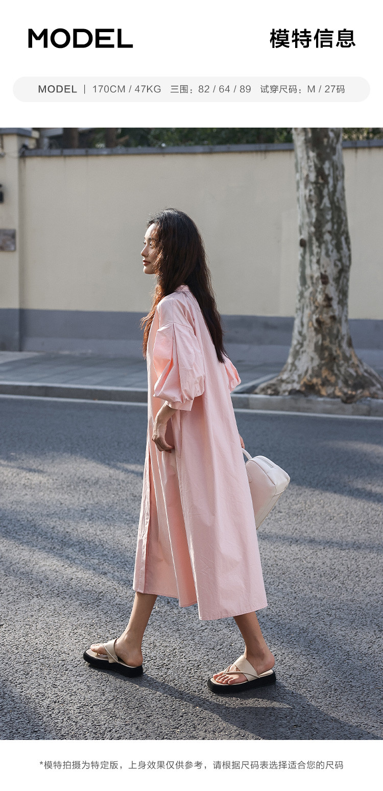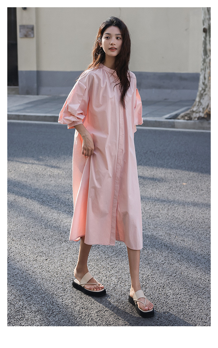 商品名称:【嫩粉色中袖连衣裙】夏款粉嫩圆领泡泡袖长款连衣裙女 239490