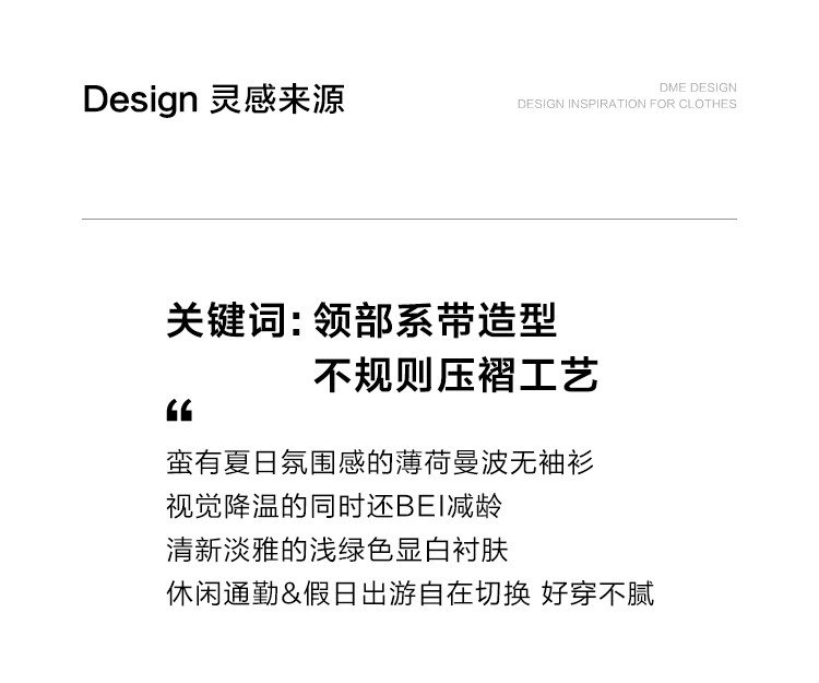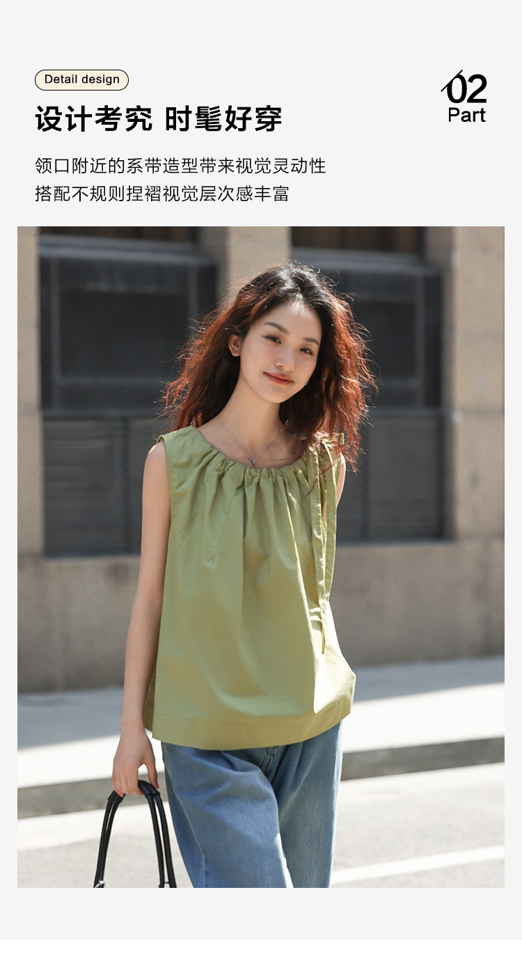 商品名称:【曼波罗兰无袖衬衫】夏款清新淡绿圆领抽绳无袖小衫 649346