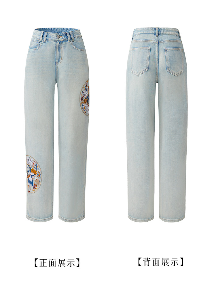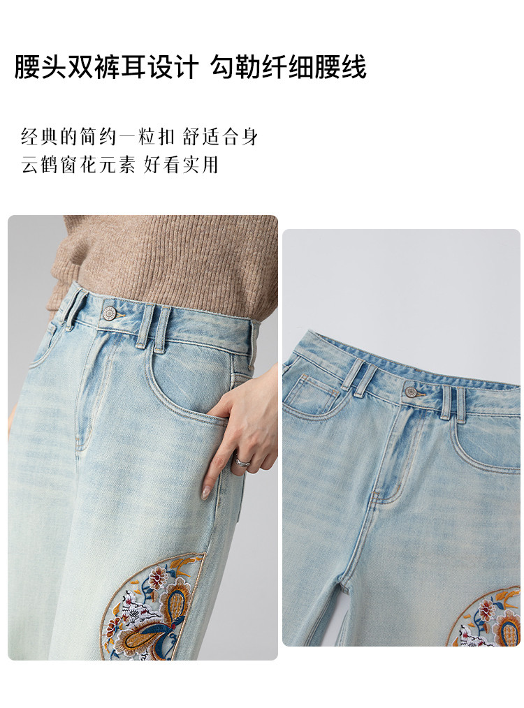商品名称:【国风刺绣牛仔】春季热销新中式高腰老爹裤休闲风百搭哈伦裤女 112001