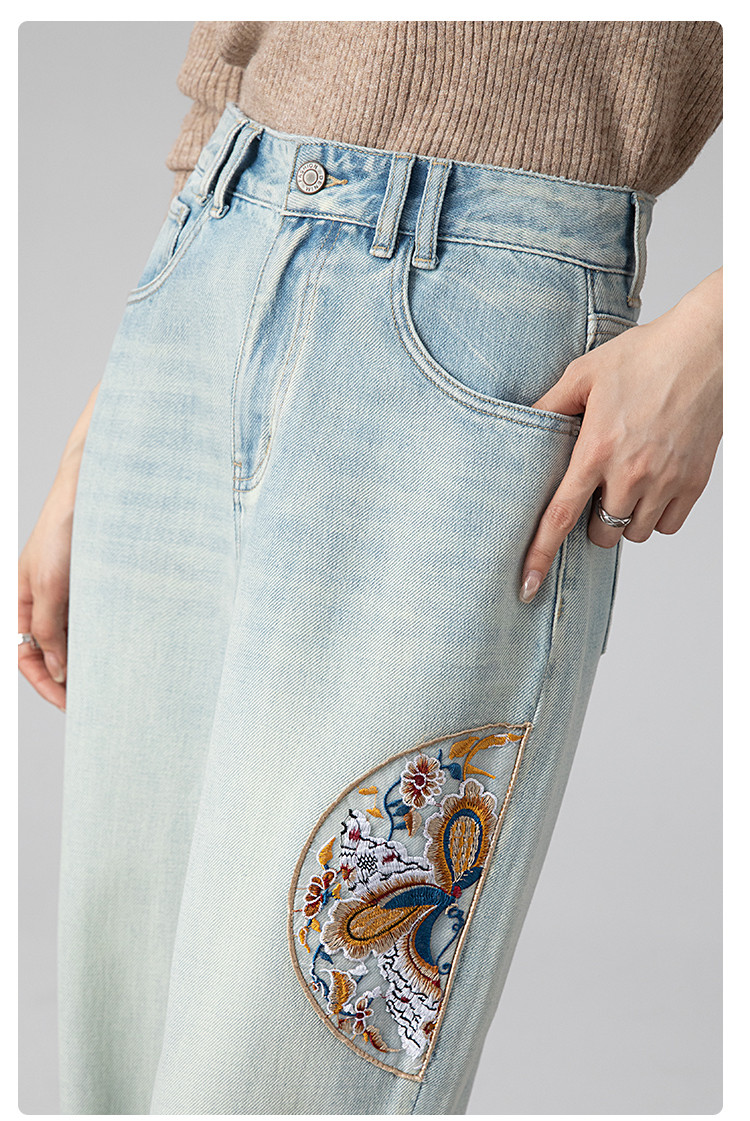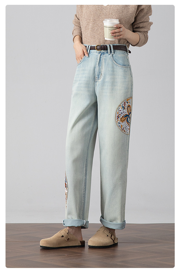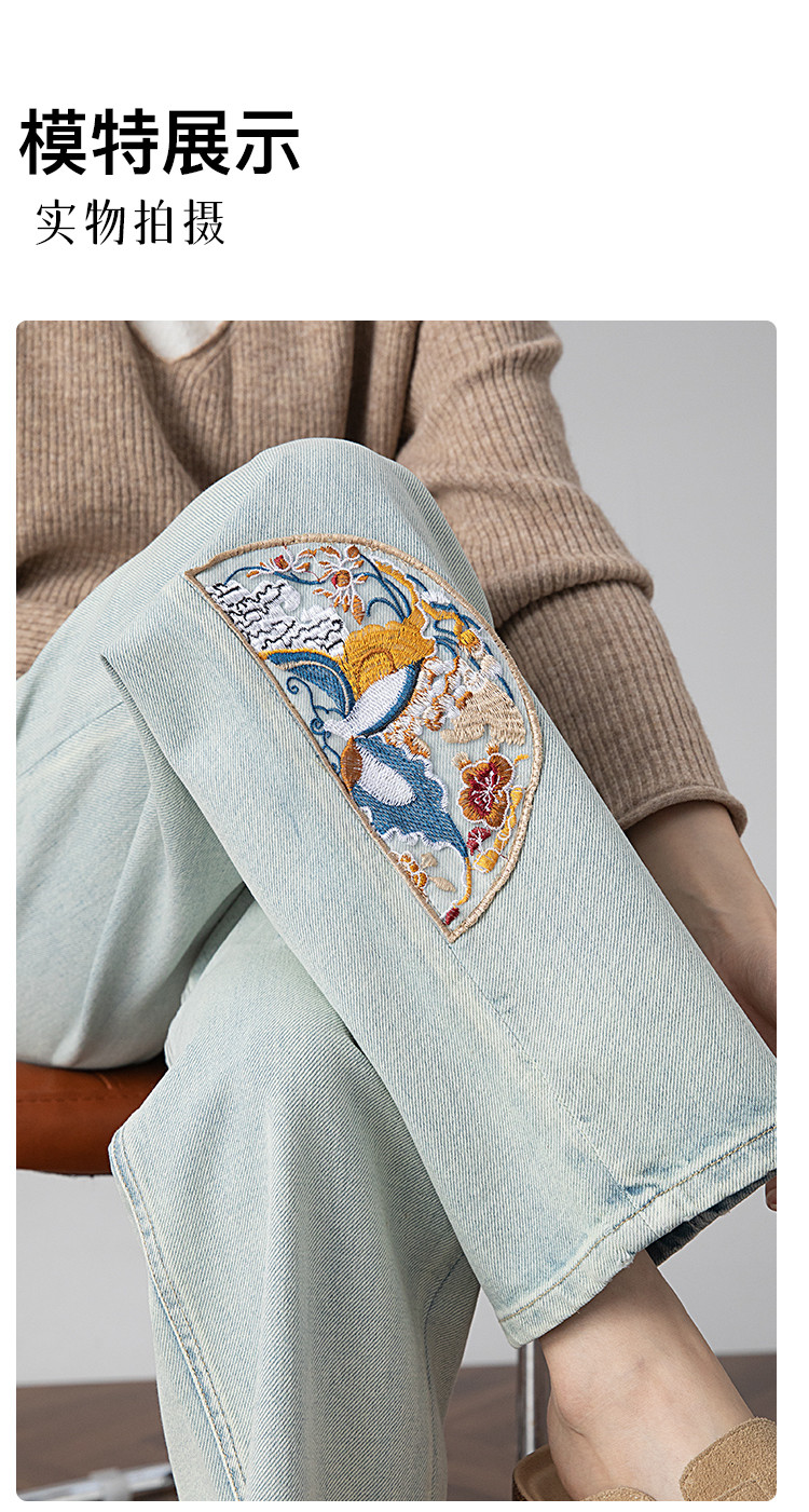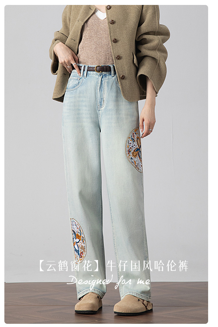【国风刺绣牛仔】春季热销新中式高腰老爹裤休闲风百搭哈伦裤女 112001
