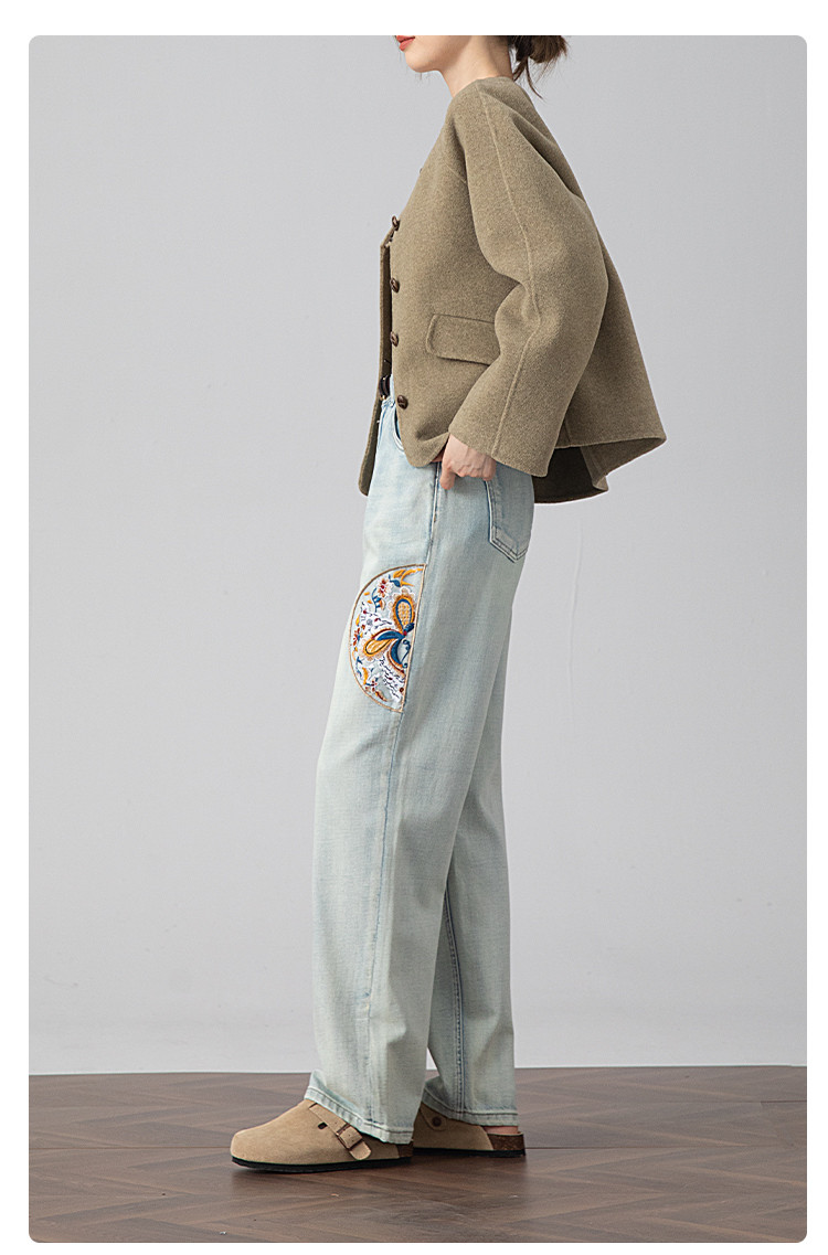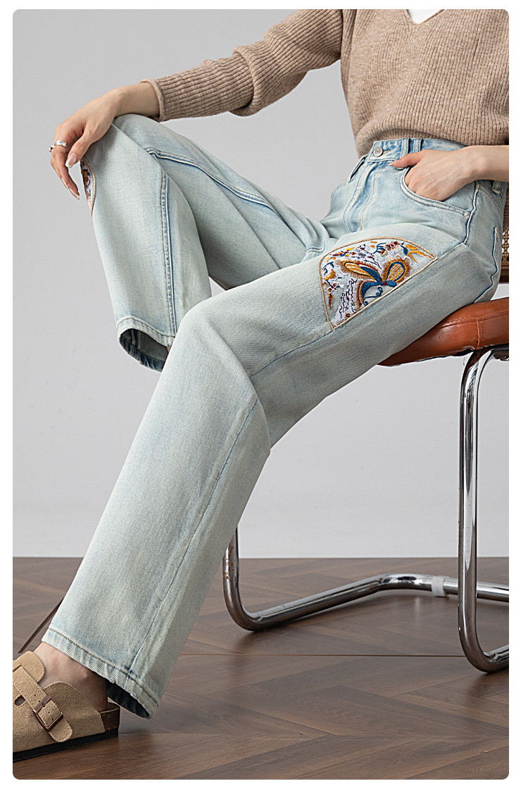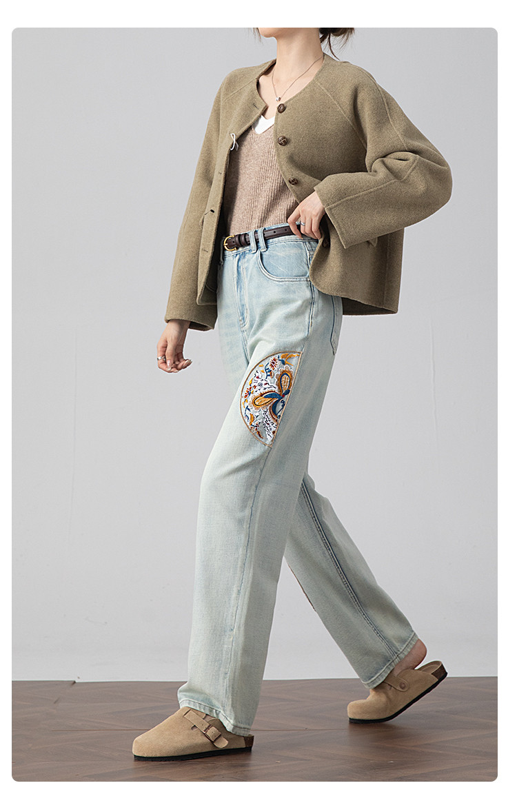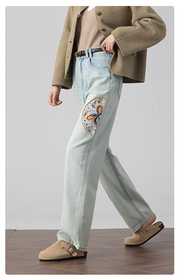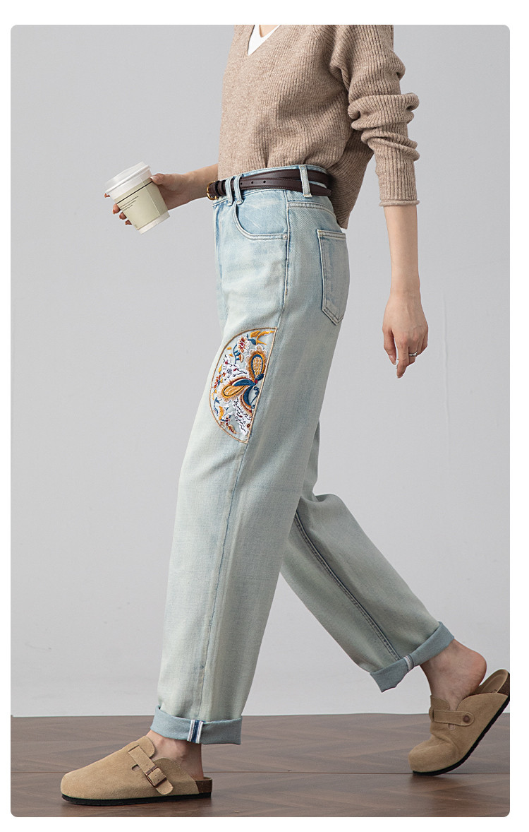 【国风刺绣牛仔】春季热销新中式高腰老爹裤休闲风百搭哈伦裤女 112001