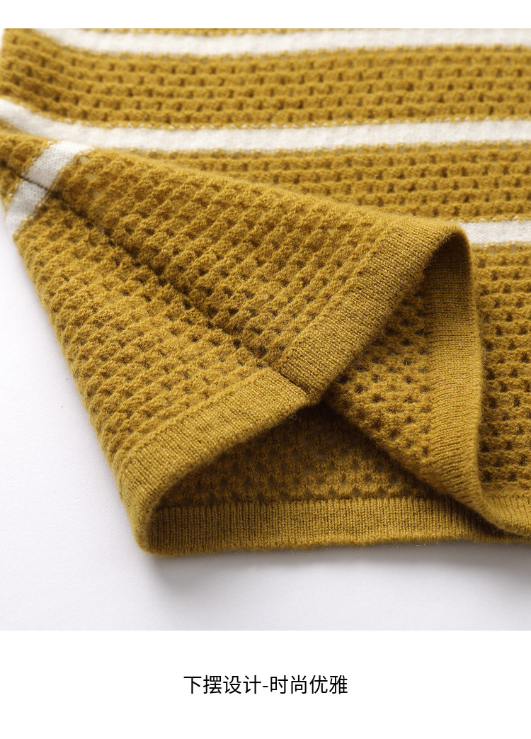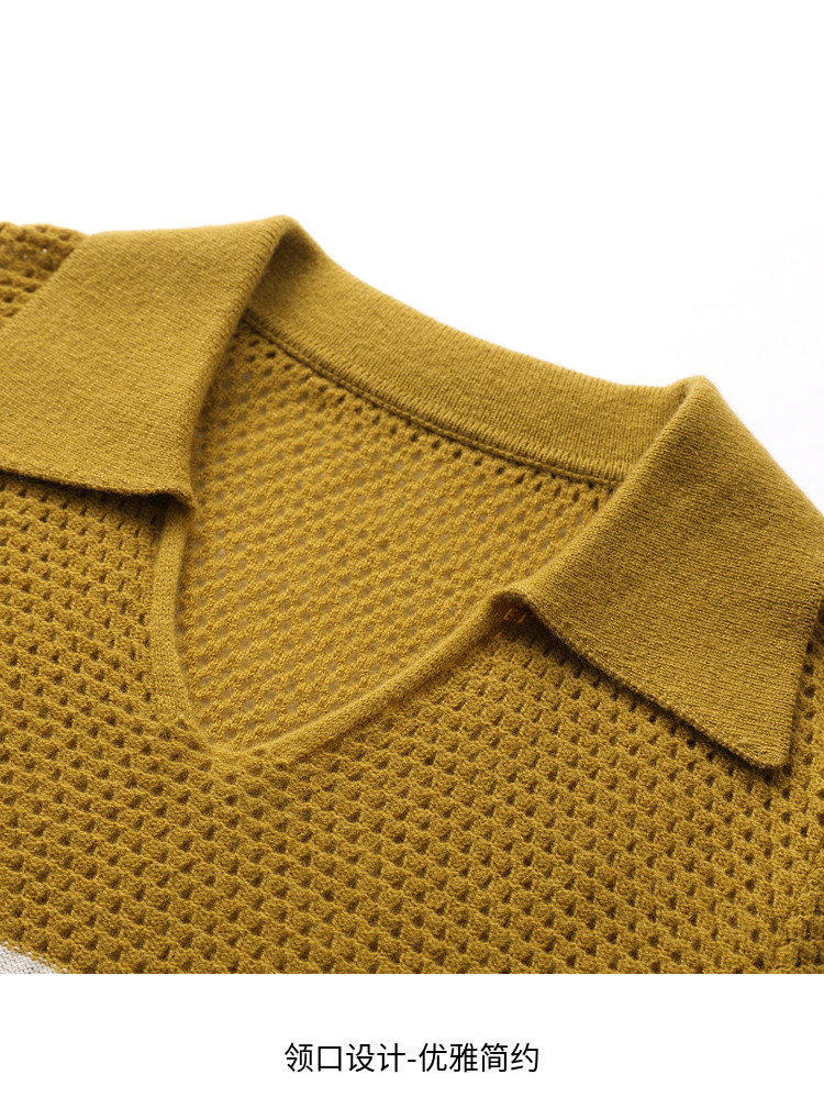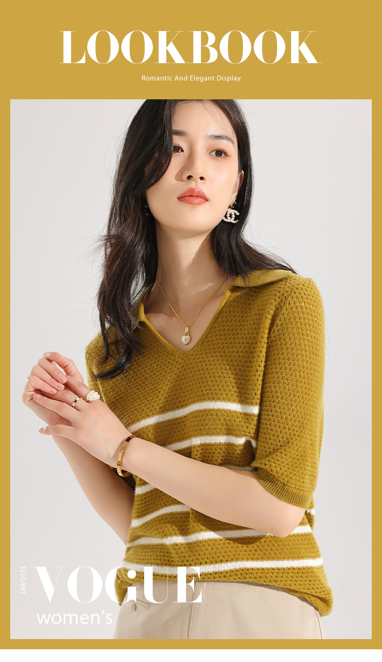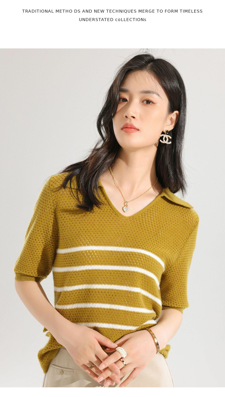 商品名称:【镂空透气】夏季纯羊毛轻薄条纹针织衫短袖翻领T恤女polo衫 886931