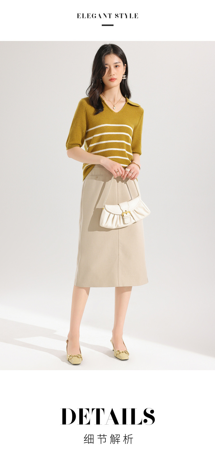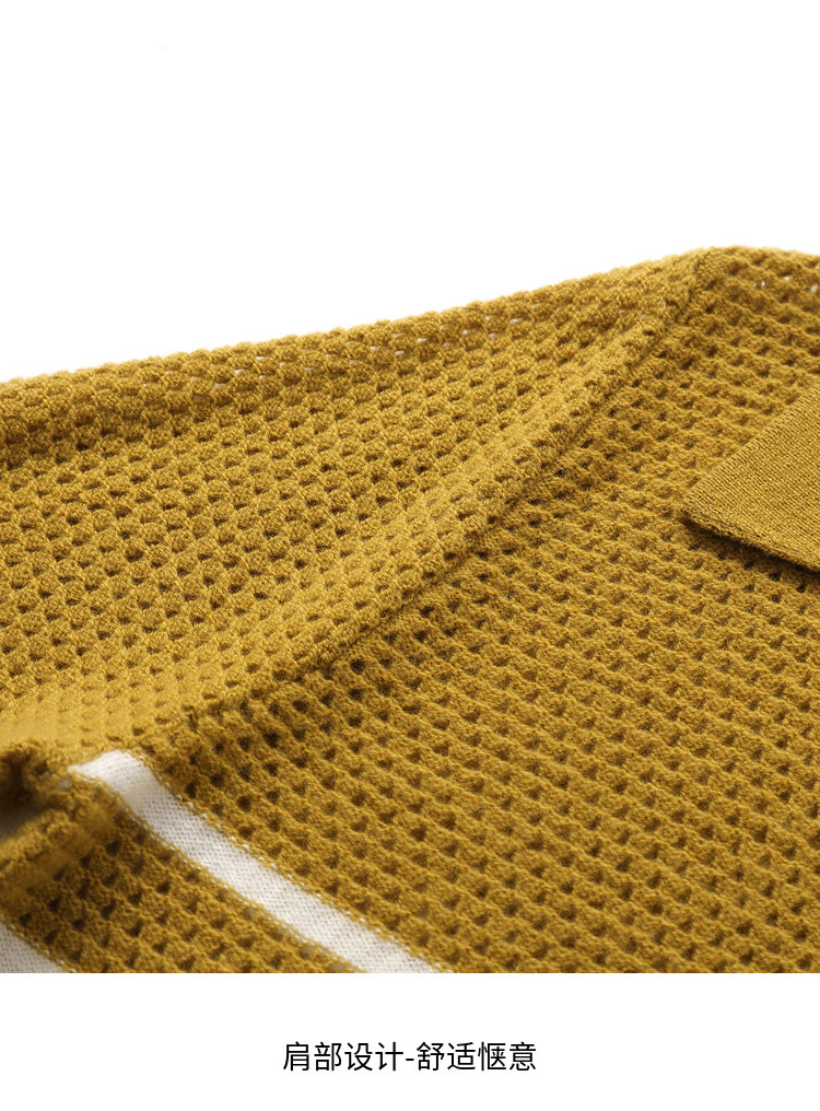 【镂空透气】夏季纯羊毛轻薄条纹针织衫短袖翻领T恤女polo衫 886931