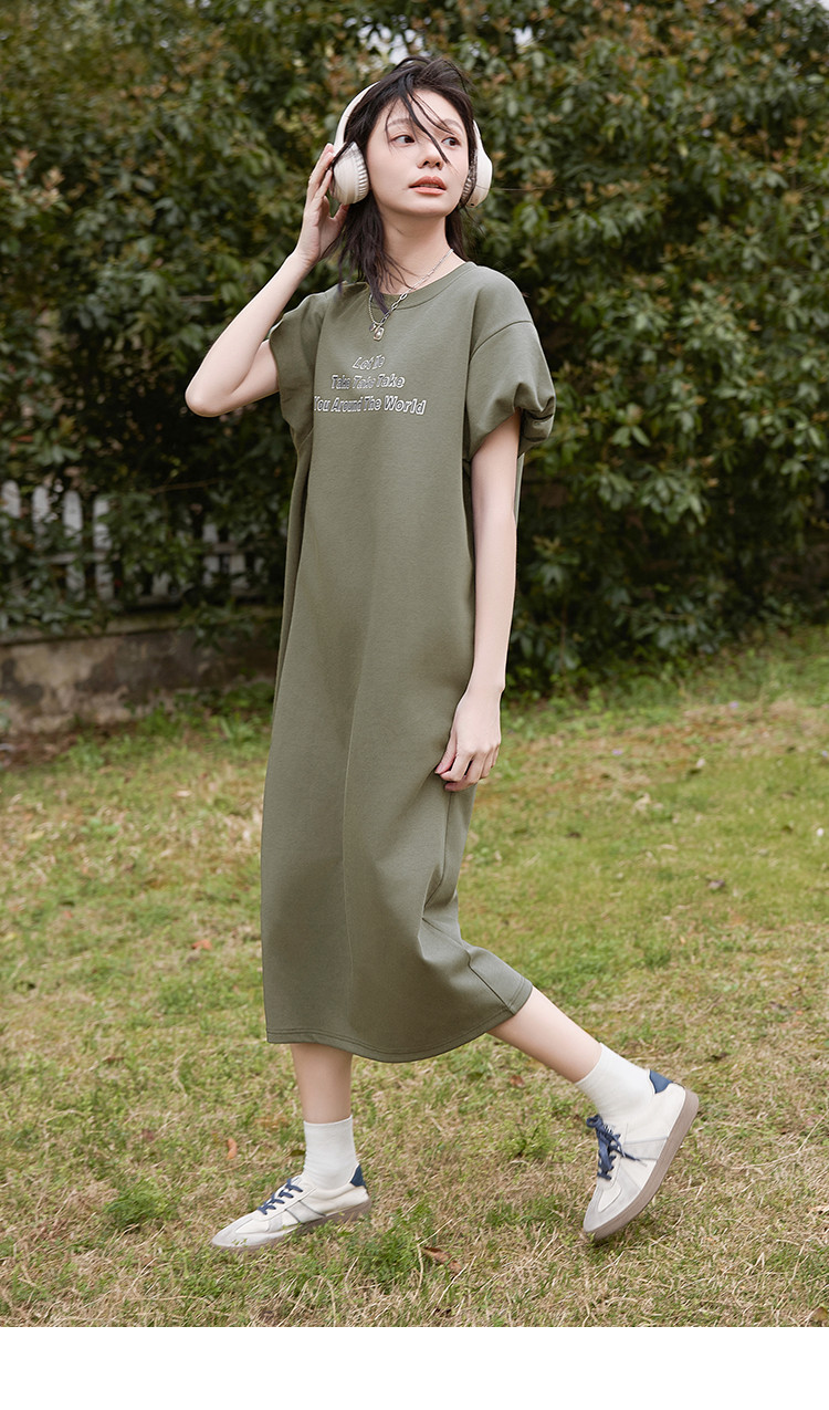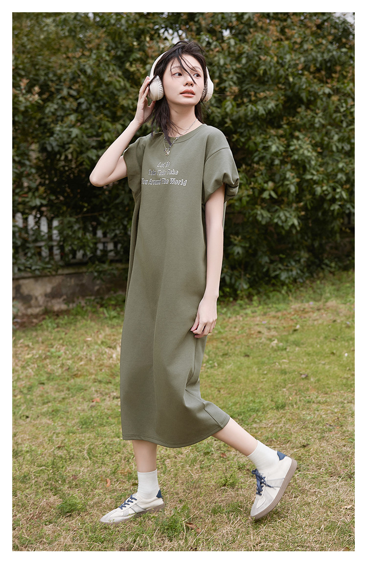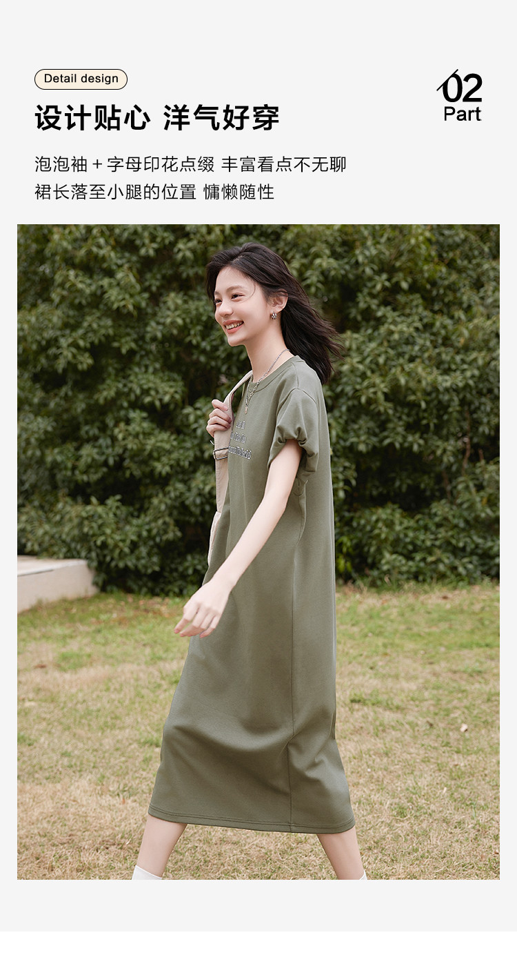 商品名称:【个性泡泡袖长裙】夏鼠尾草套头字母印花显高连衣裙 877954