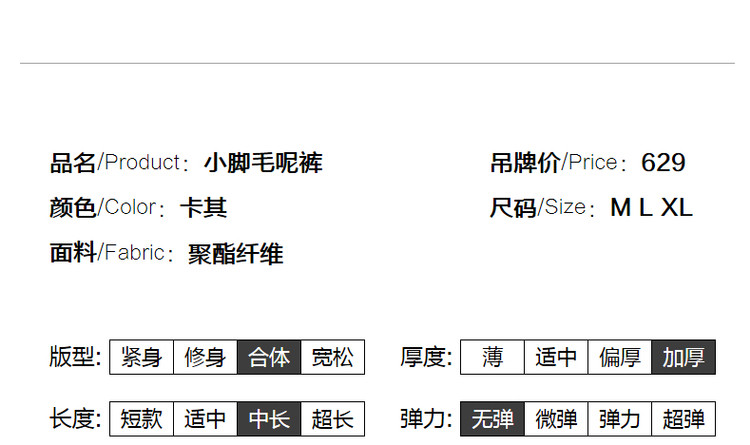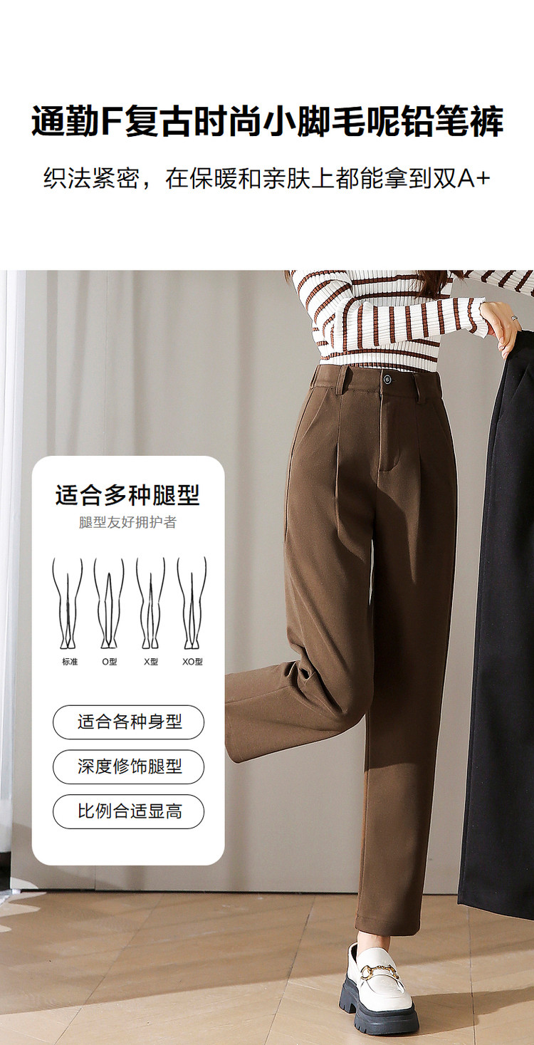 商品名称:【ins流行季】冬通勤小脚毛呢铅笔裤子女复古长裤休闲裤 160065