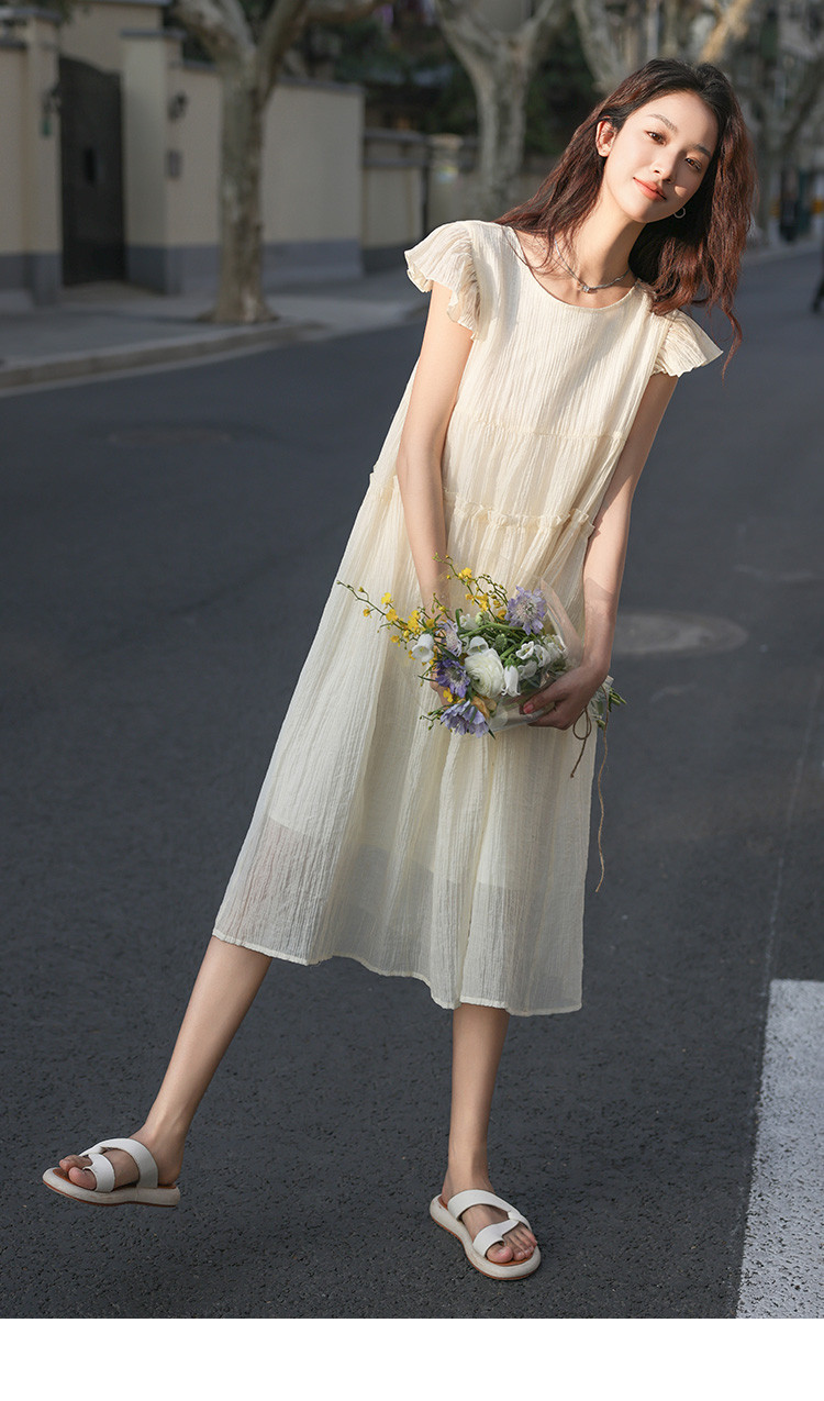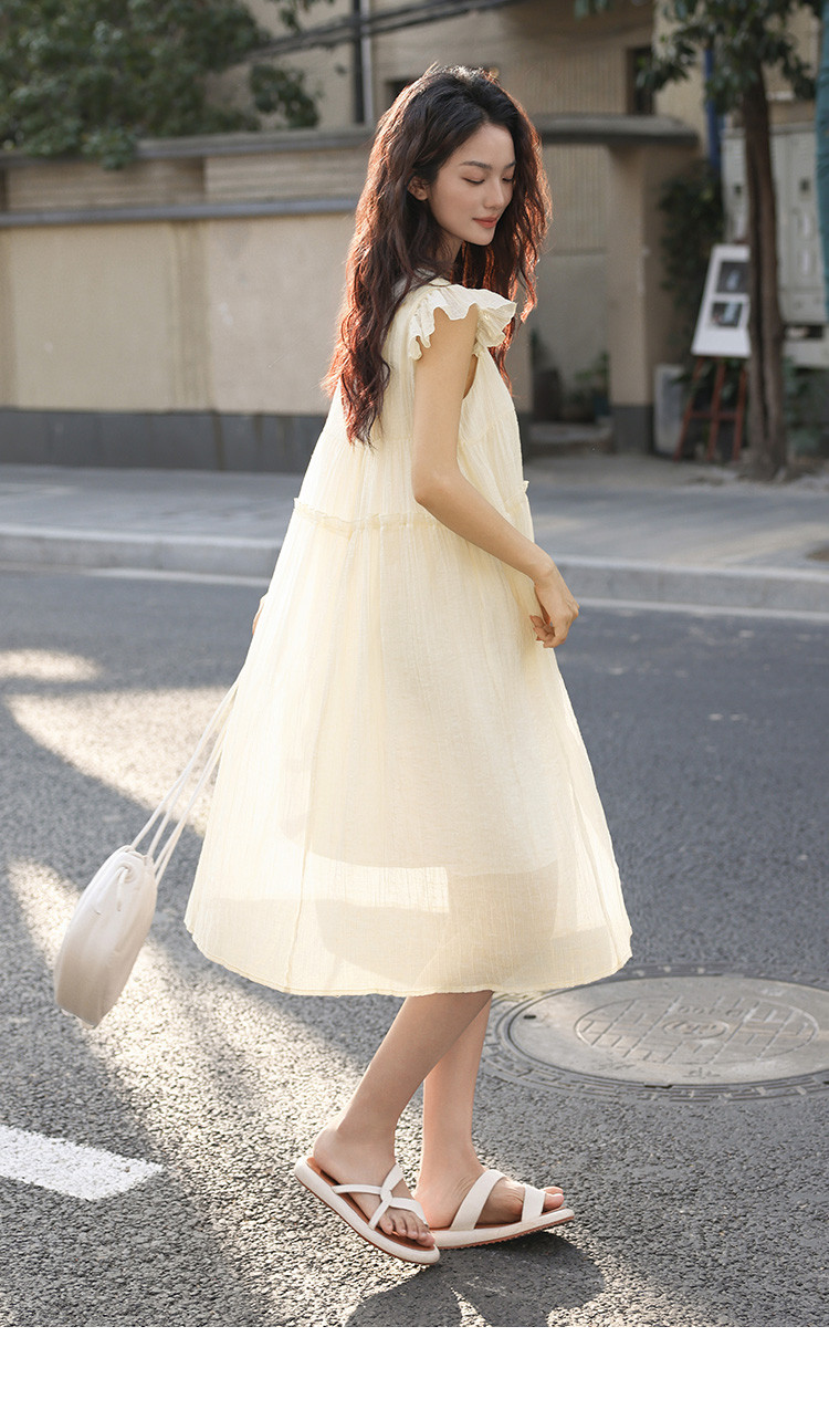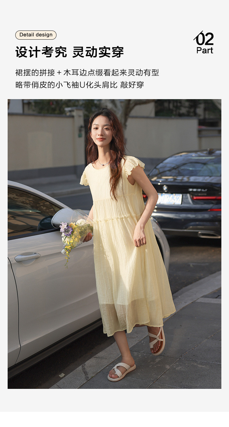 商品名称:【可爱小飞袖连衣裙】夏减龄嫩黄色木耳边洋气时髦中长裙 981634