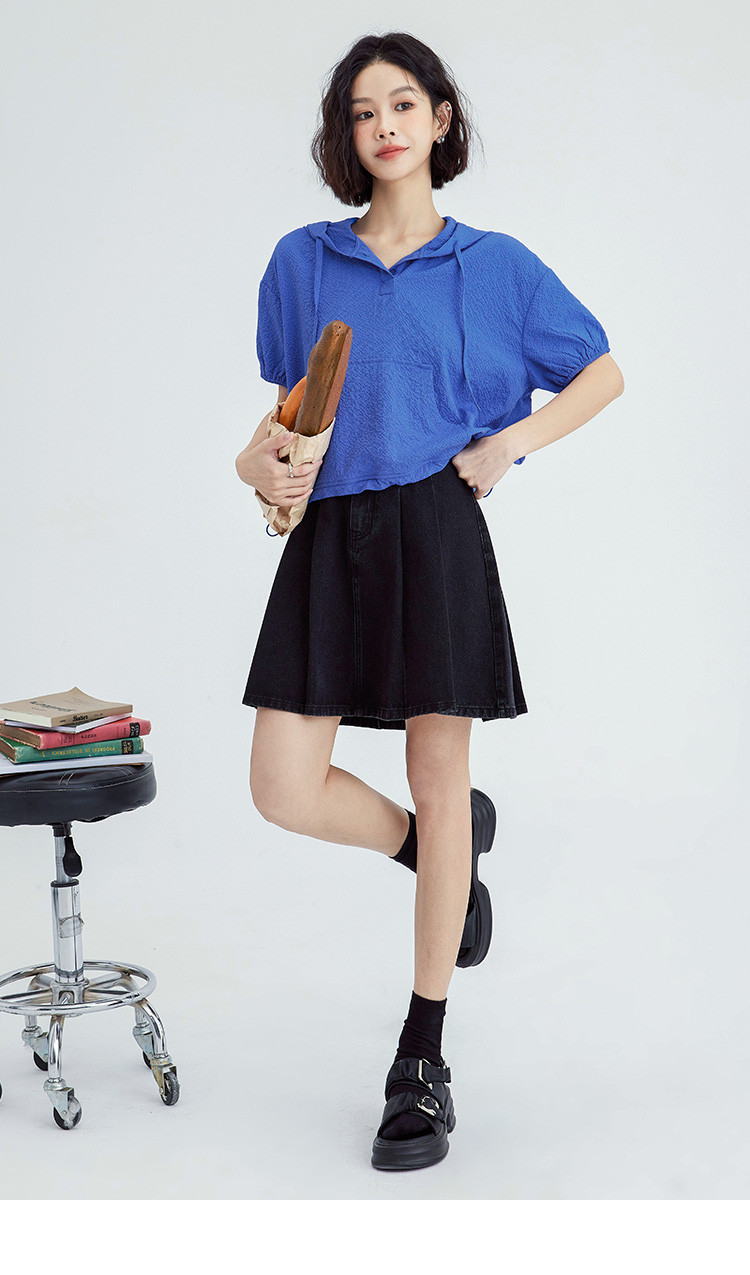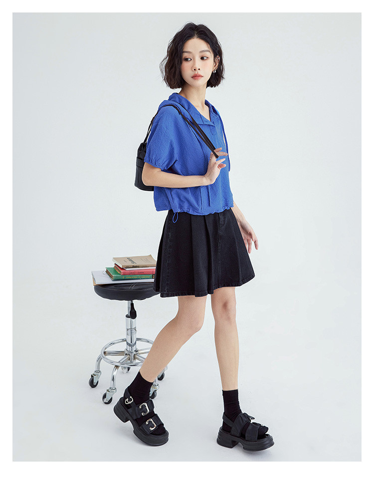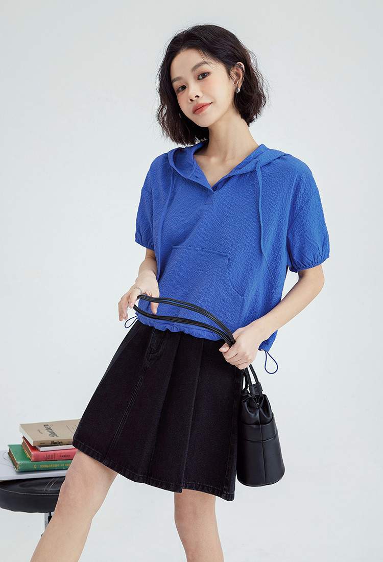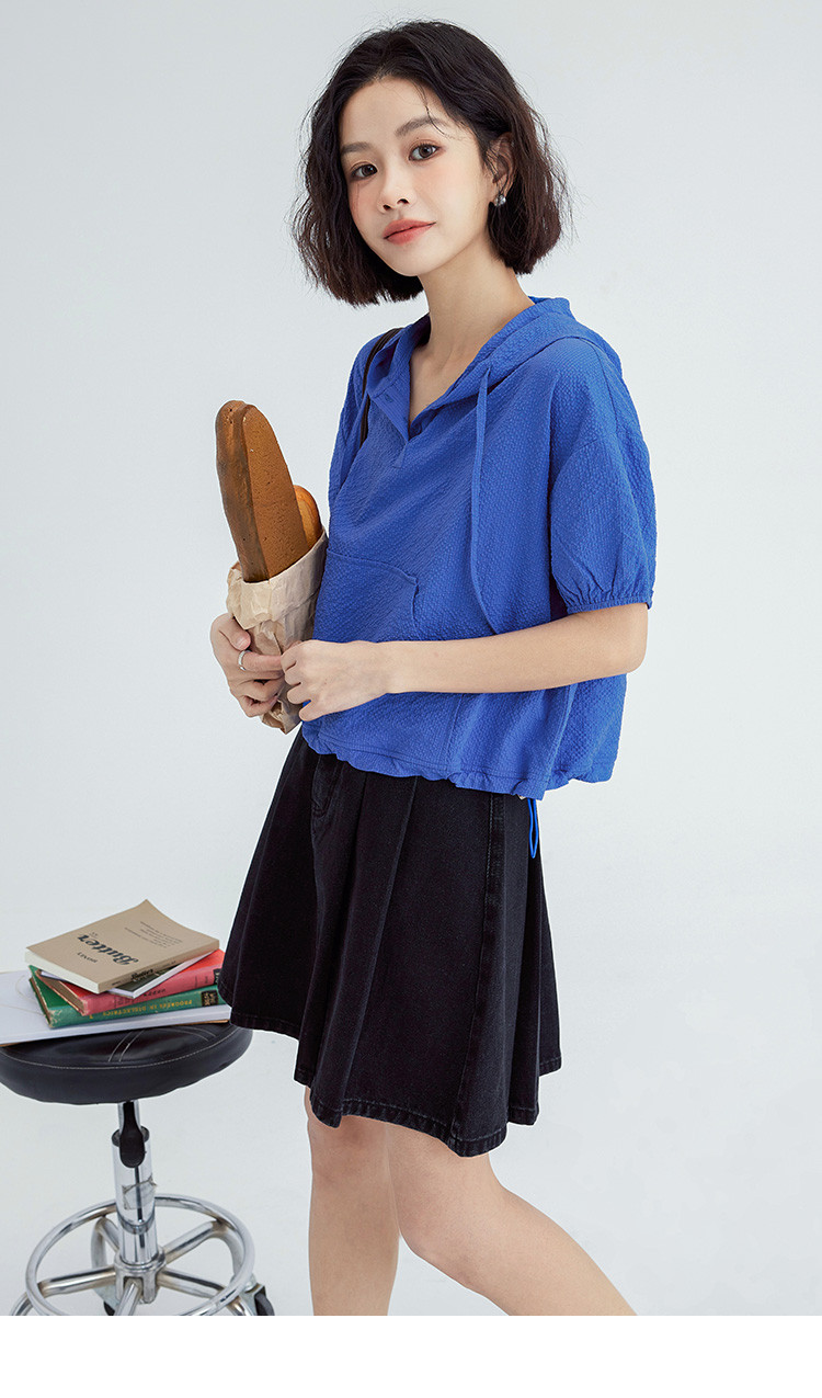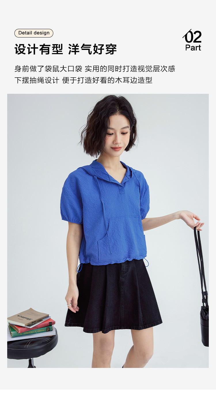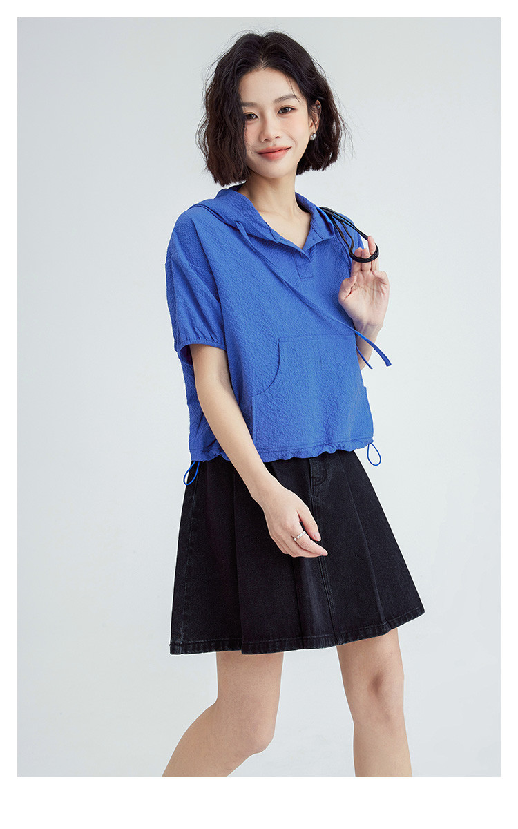 商品名称:【显白连帽衬衫】夏半门襟洋气活力运动休闲风短衬衫 736386