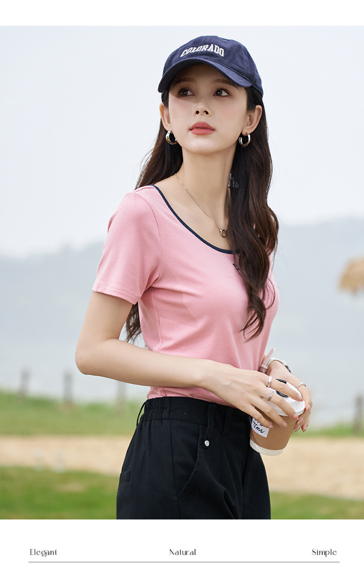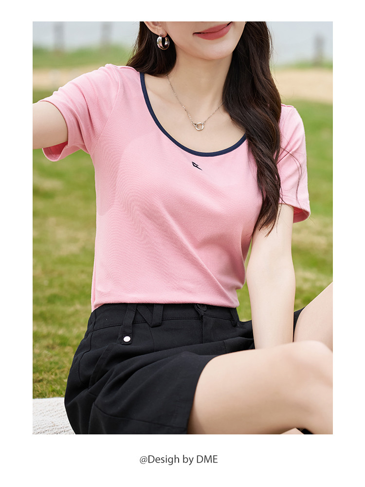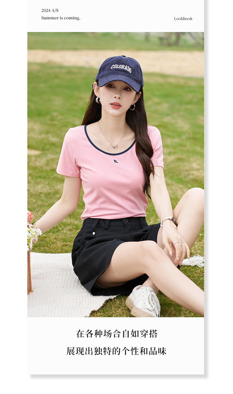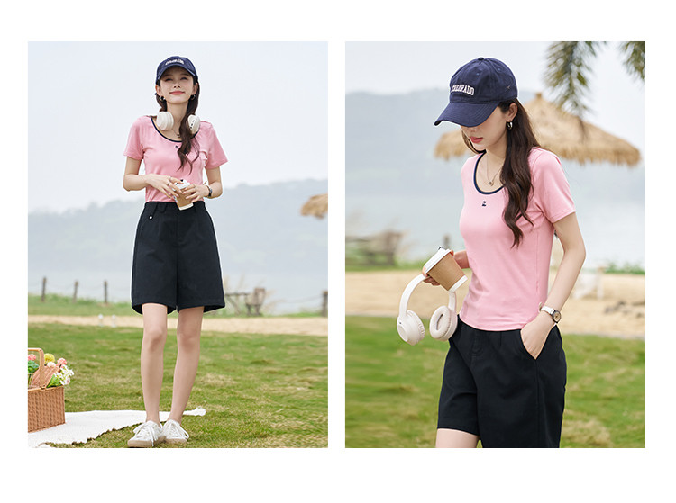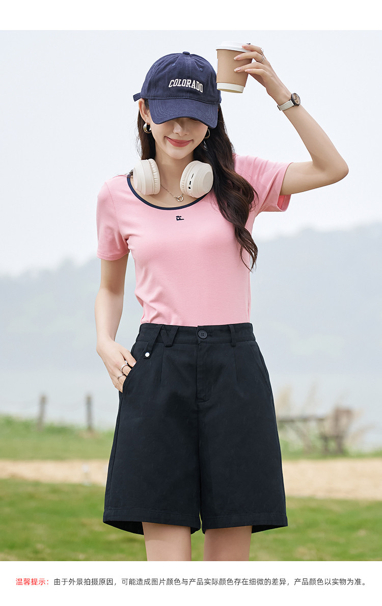 商品名称:【半熟恋人】大圆领微弹 绣花款 显瘦 辣妹 短袖T恤女 775553