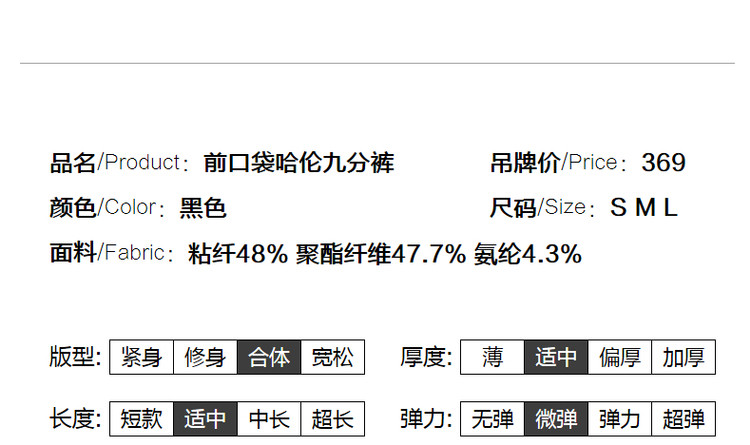商品名称:【通勤哈伦九分裤】秋季中腰微弹女裤子长裤九分休闲裤 096001