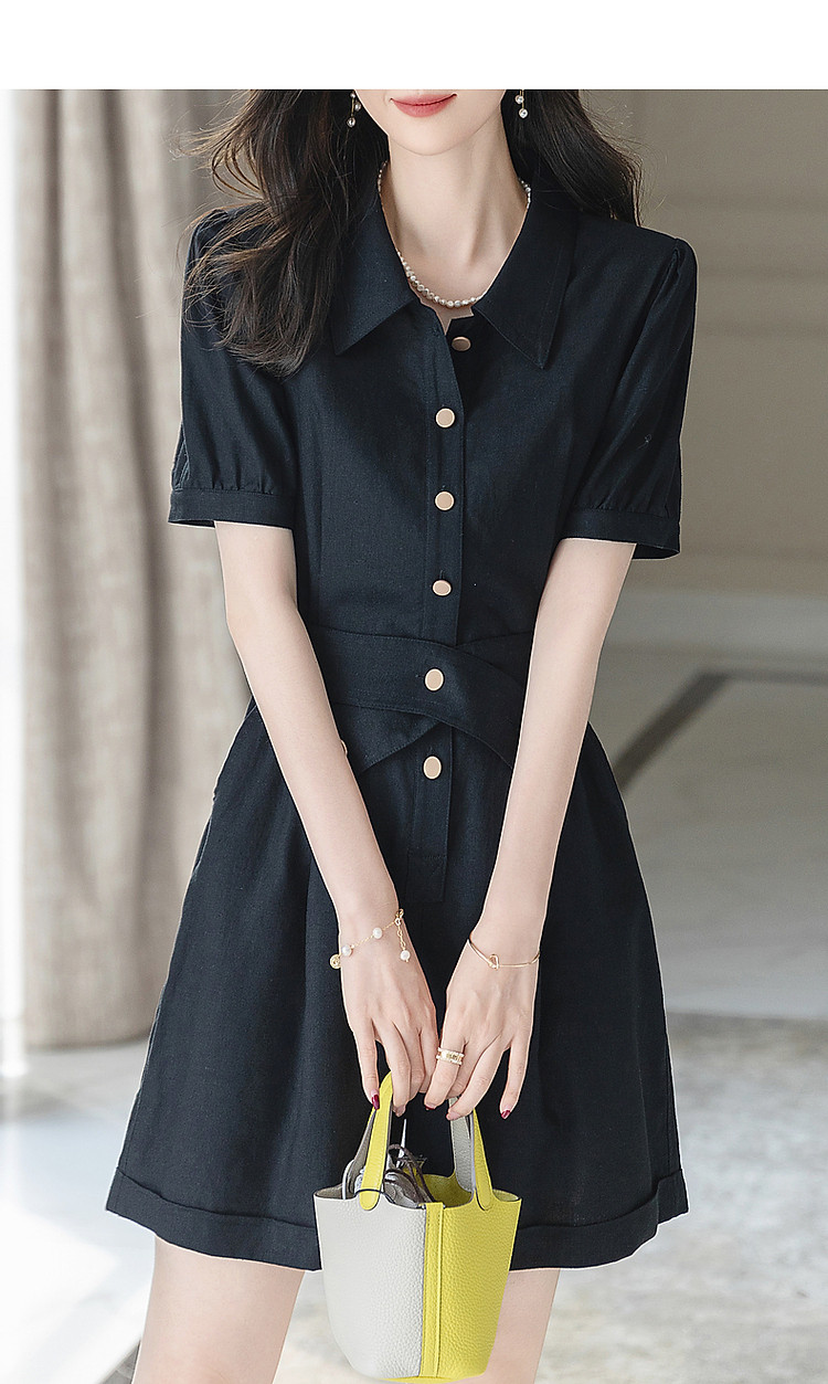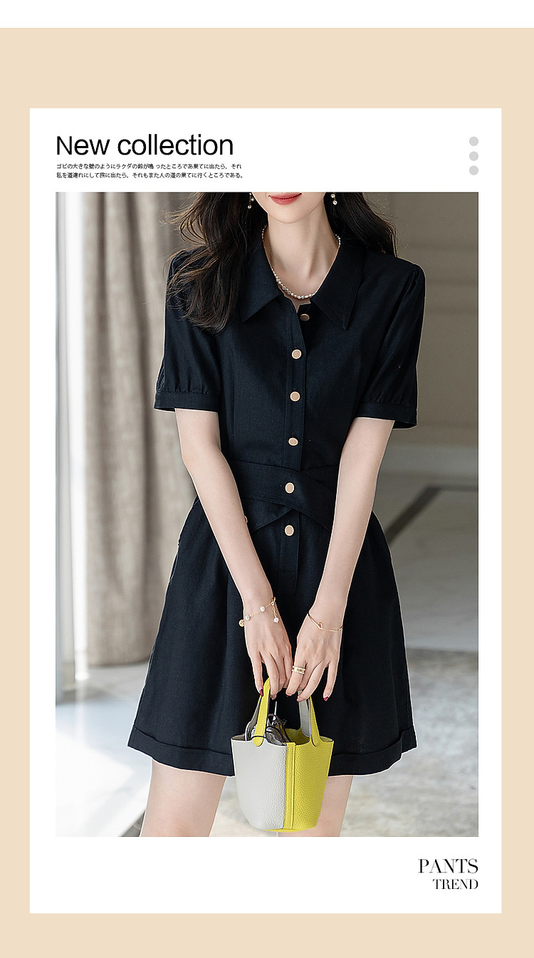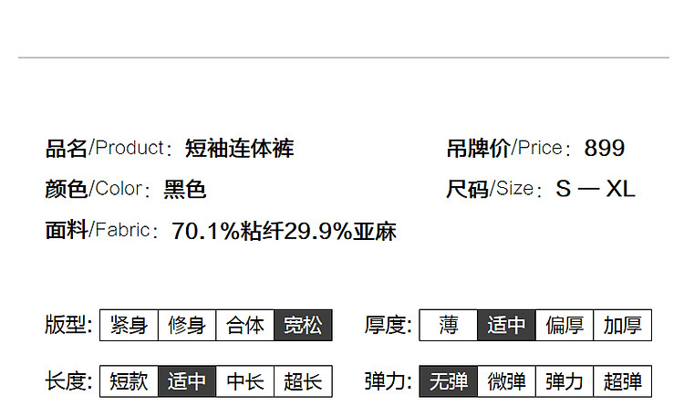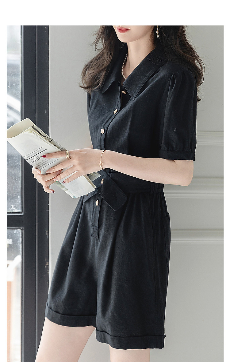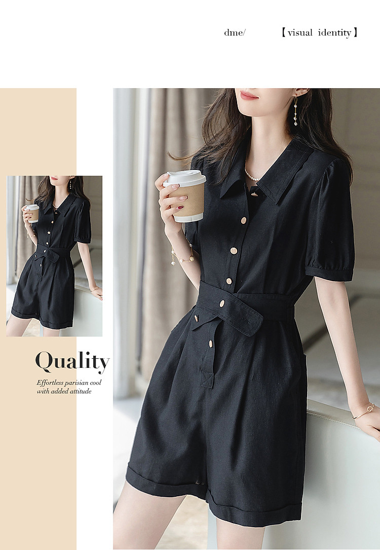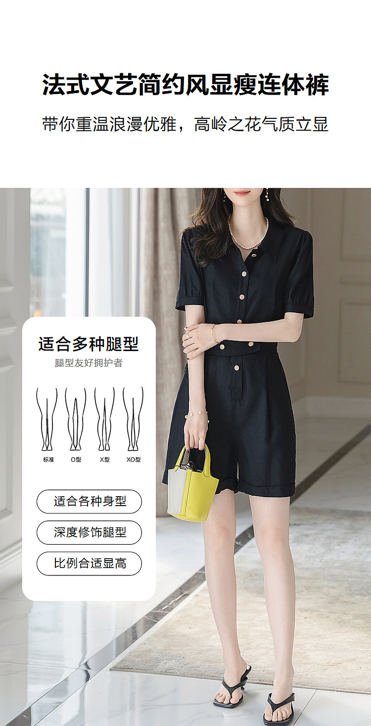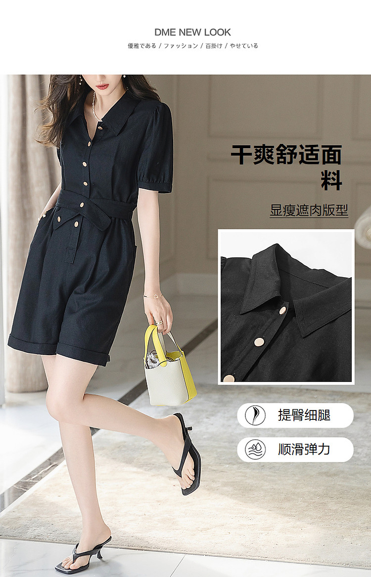 商品名称:【清凉空调连体裤】夏法式简约含亚麻橡筋腰短袖可调节腰带藏肉休 423233