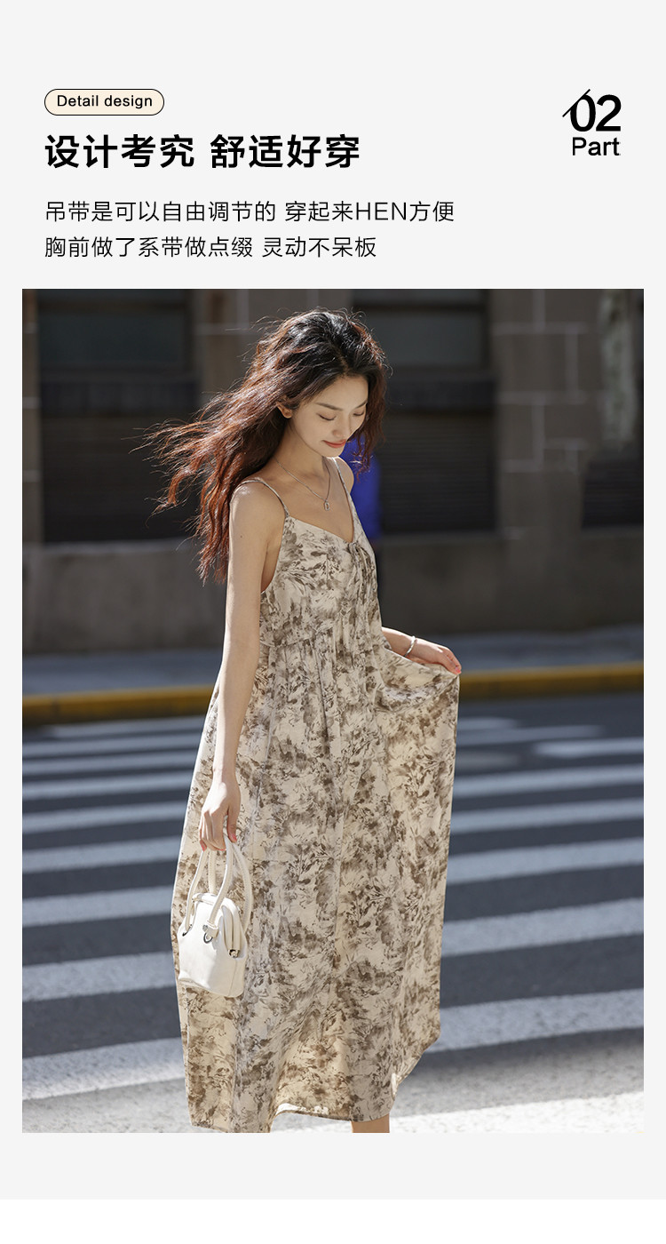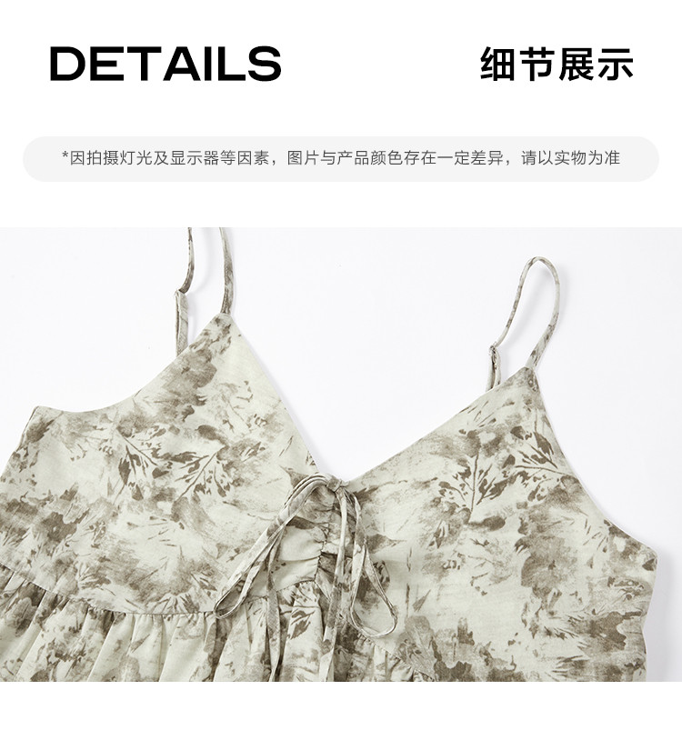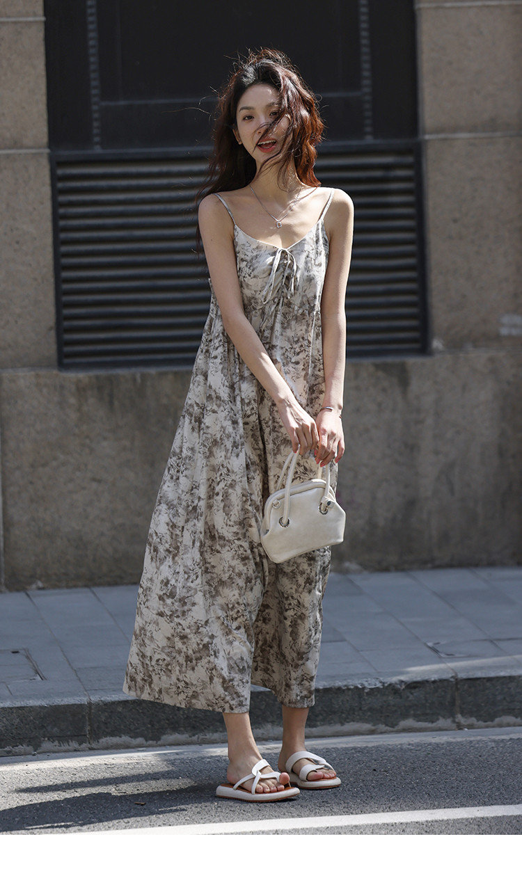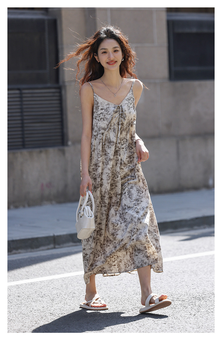 【素雅印花连衣裙】夏度假风温柔出挑系带设计感气质长裙 997826
