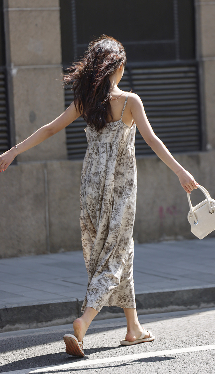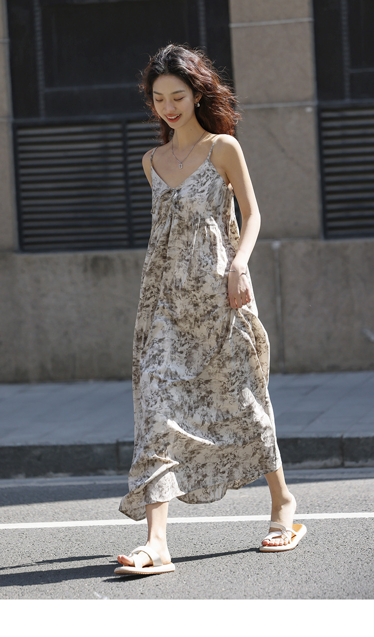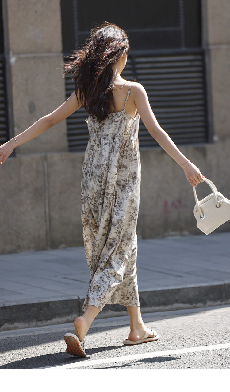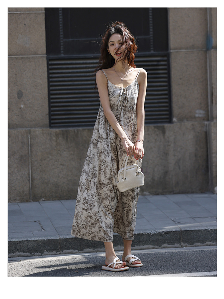 【素雅印花连衣裙】夏度假风温柔出挑系带设计感气质长裙 997826