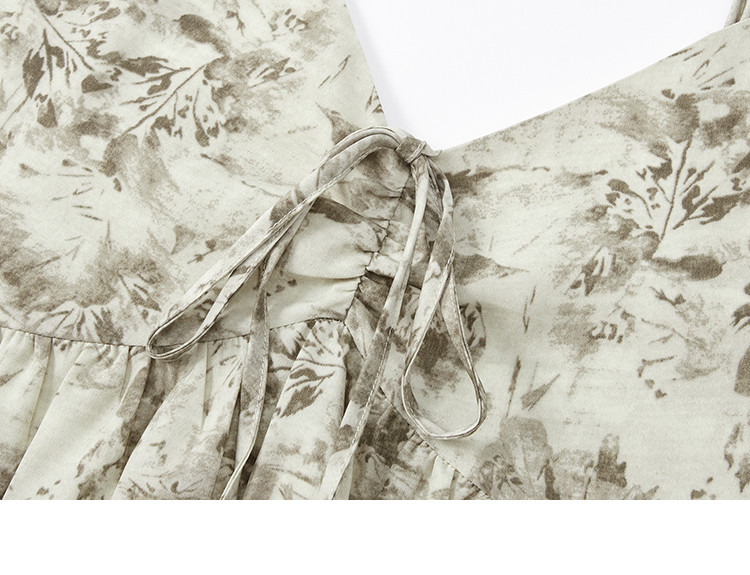 商品名称:【素雅印花连衣裙】夏度假风温柔出挑系带设计感气质长裙 997826