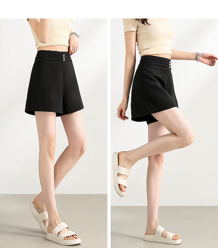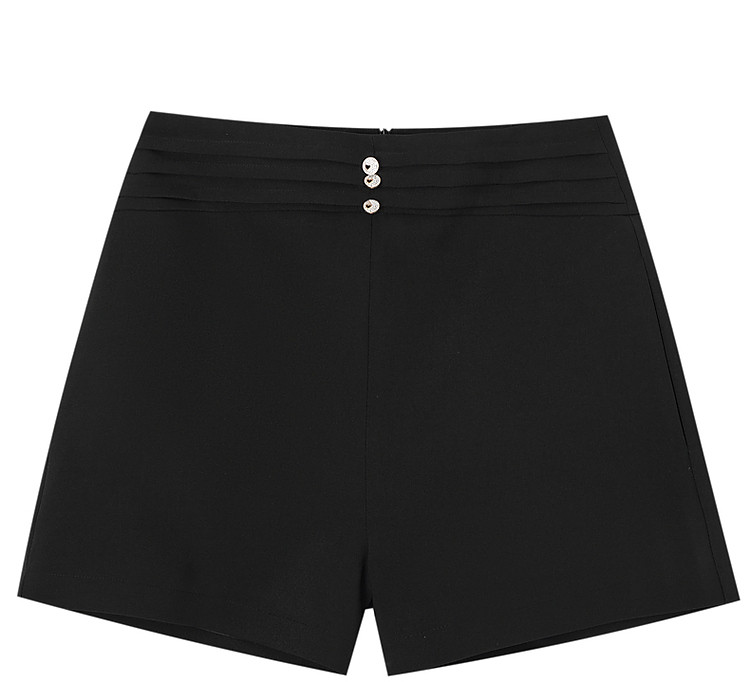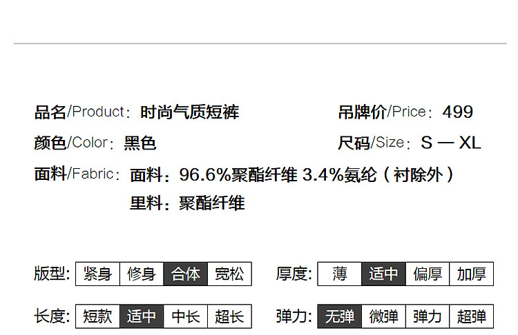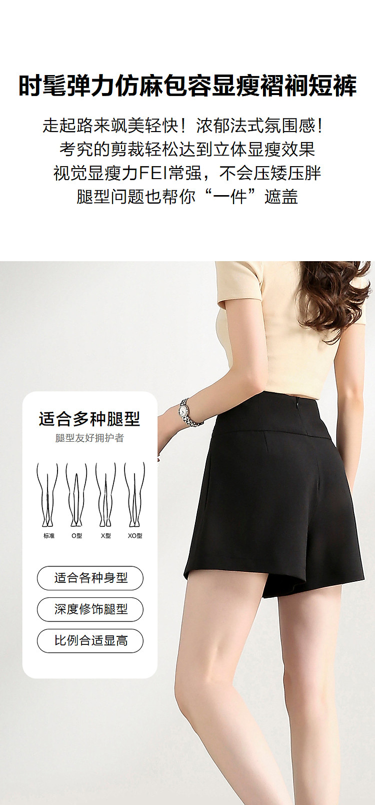 商品名称:【都市简约通勤】夏时髦弹力包容仿麻显瘦褶裥金属扣装饰休闲短裤 480257