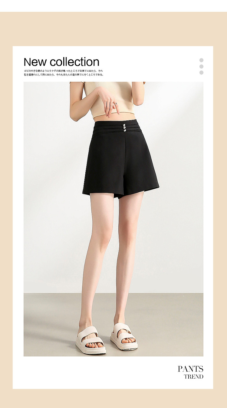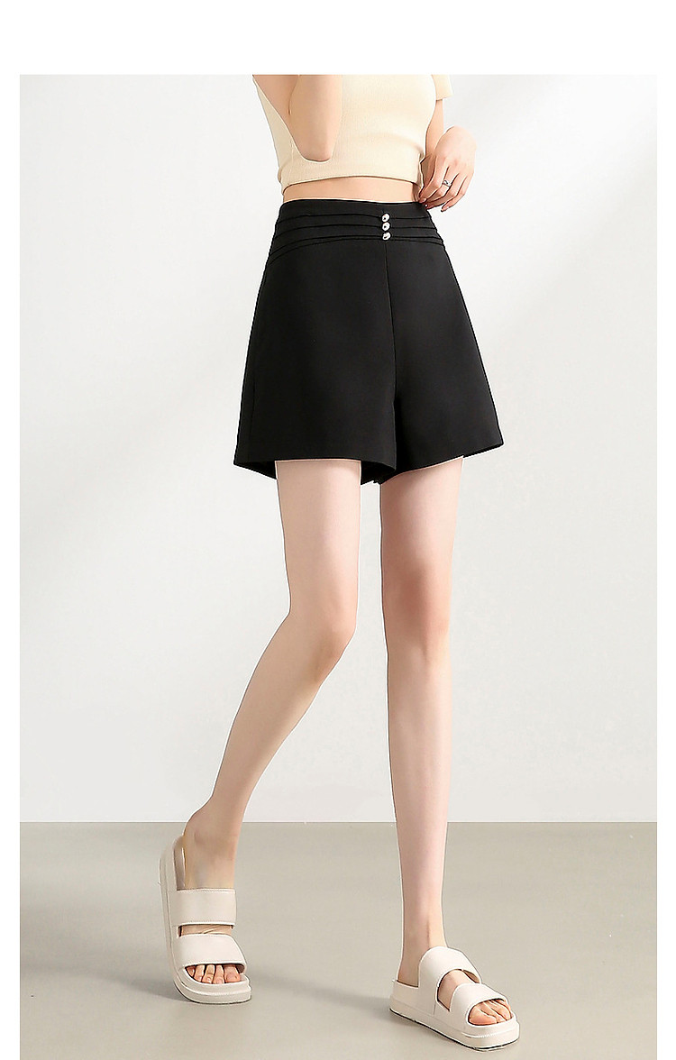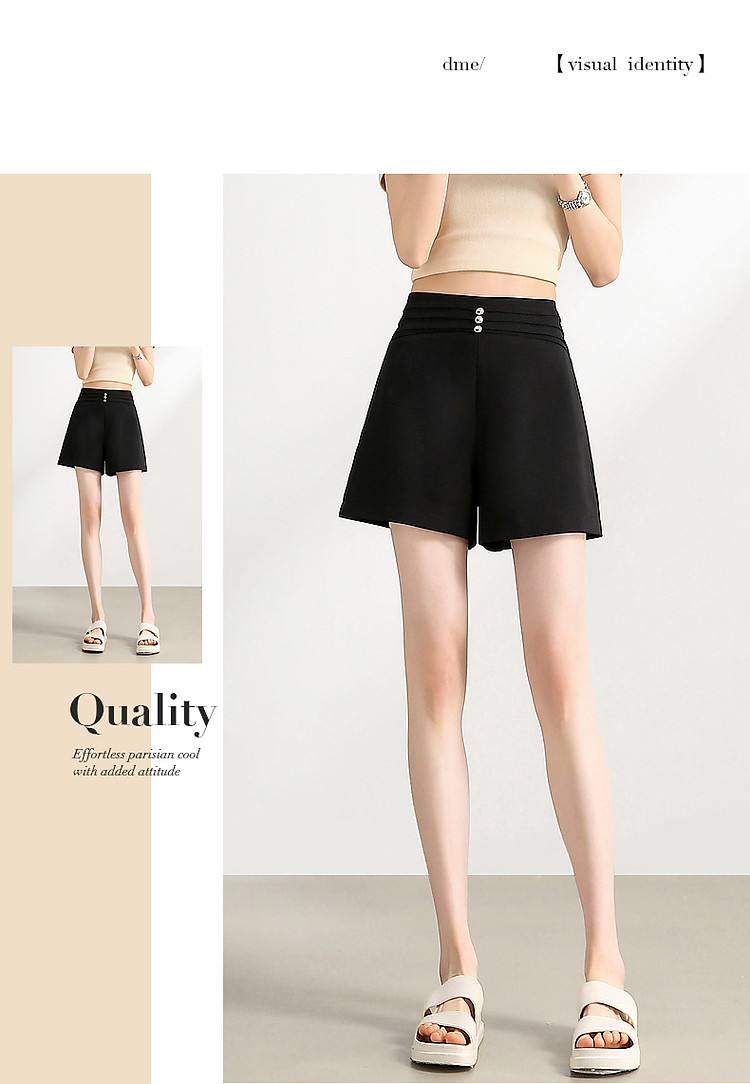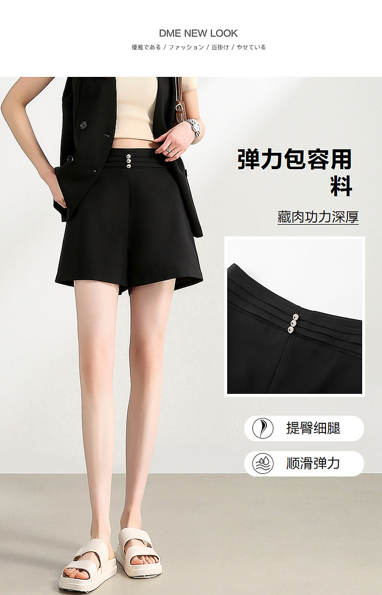 商品名称:【都市简约通勤】夏时髦弹力包容仿麻显瘦褶裥金属扣装饰休闲短裤 480257