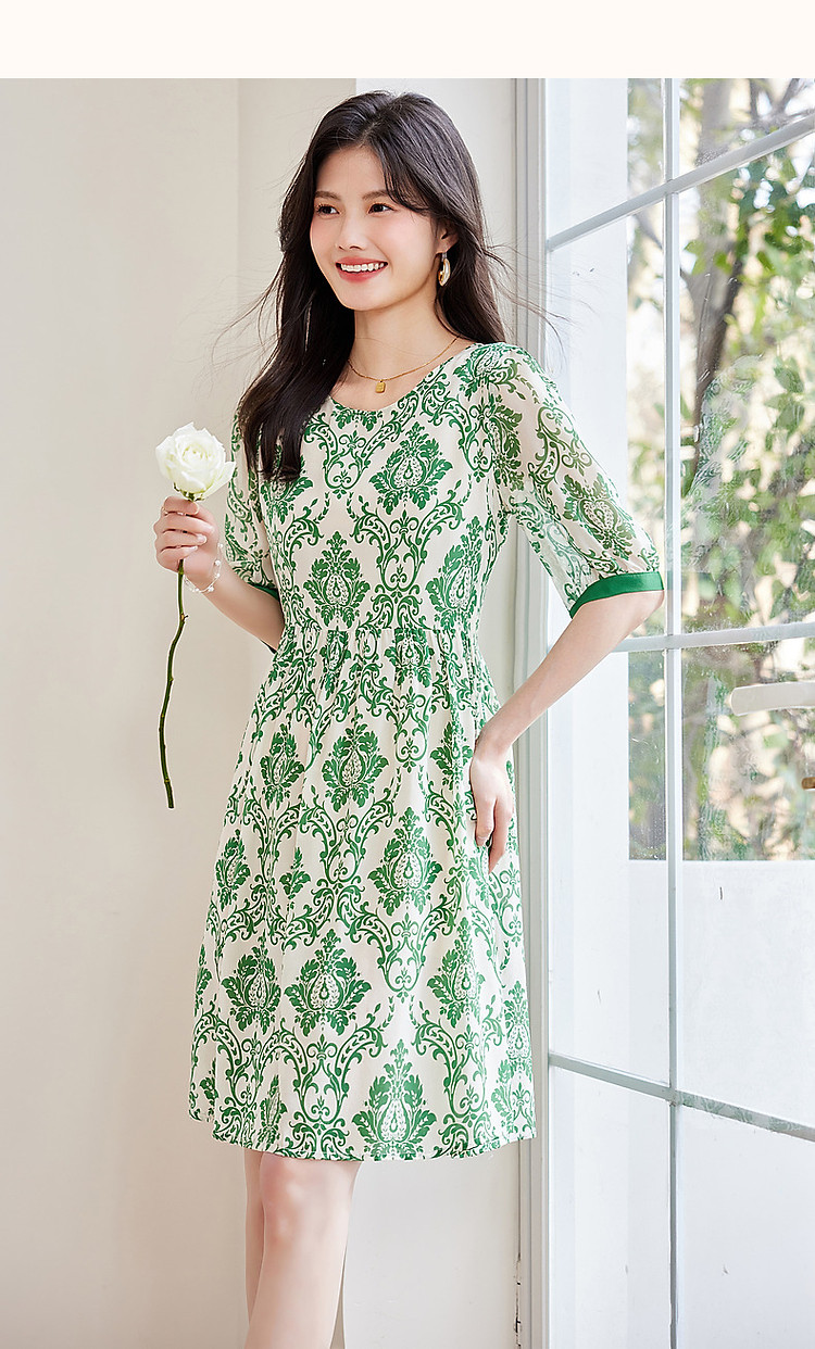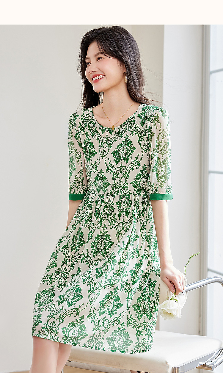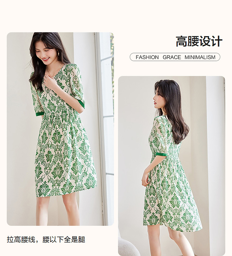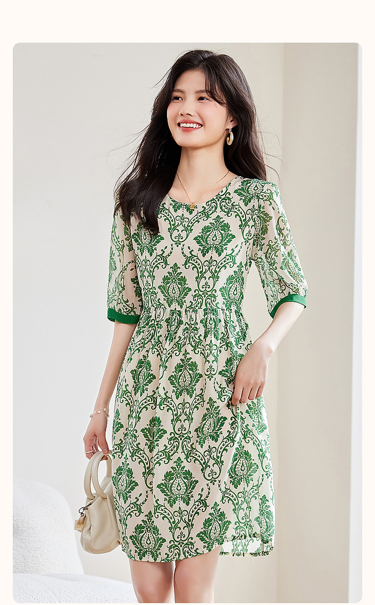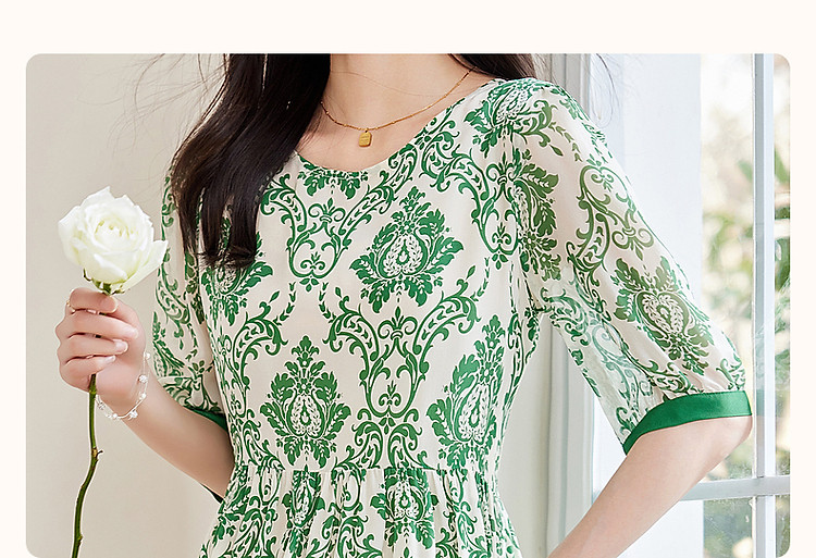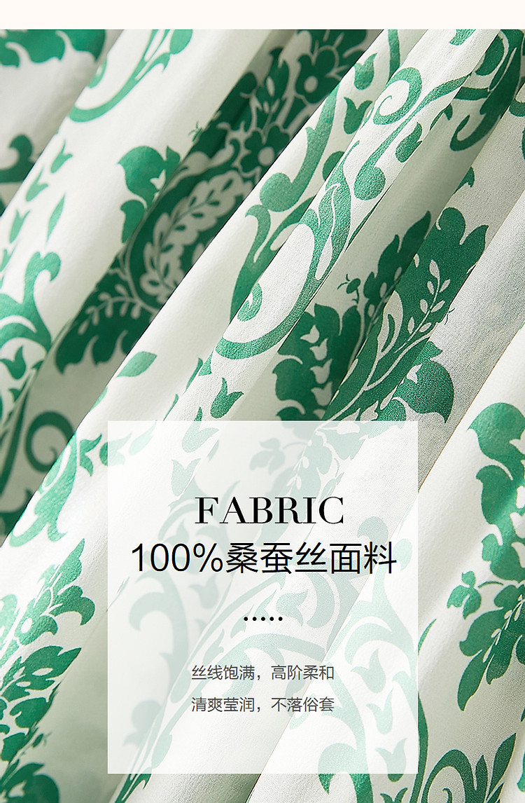 商品名称:【薄荷曼波】夏呼吸感桑蚕丝真丝印花爽滑藏肉女式连衣裙 000257