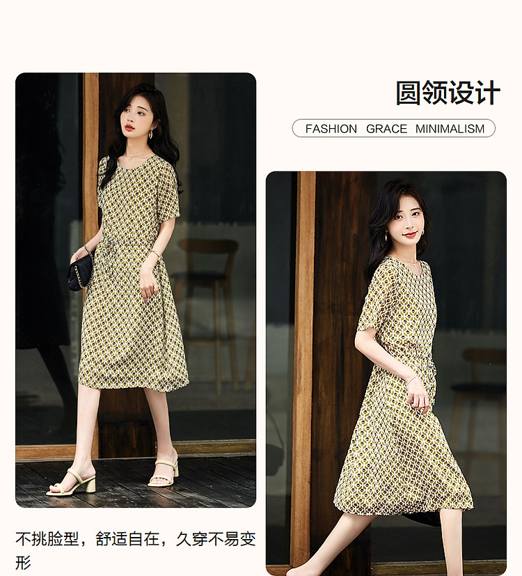 商品名称:【文艺法风腔调】夏圆领桑蚕丝碎花调节腰森系轻奢连衣裙 843777
