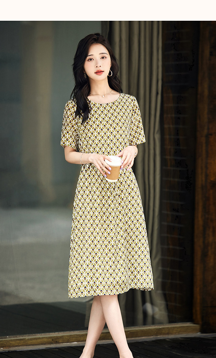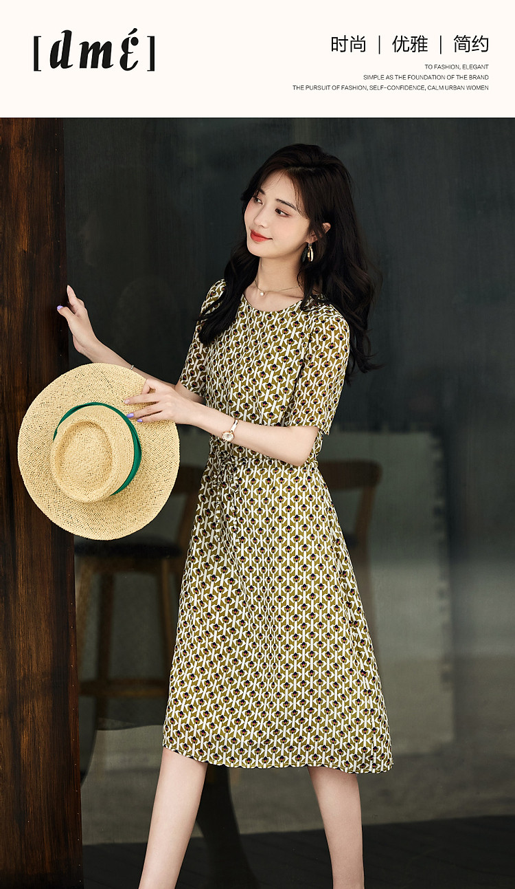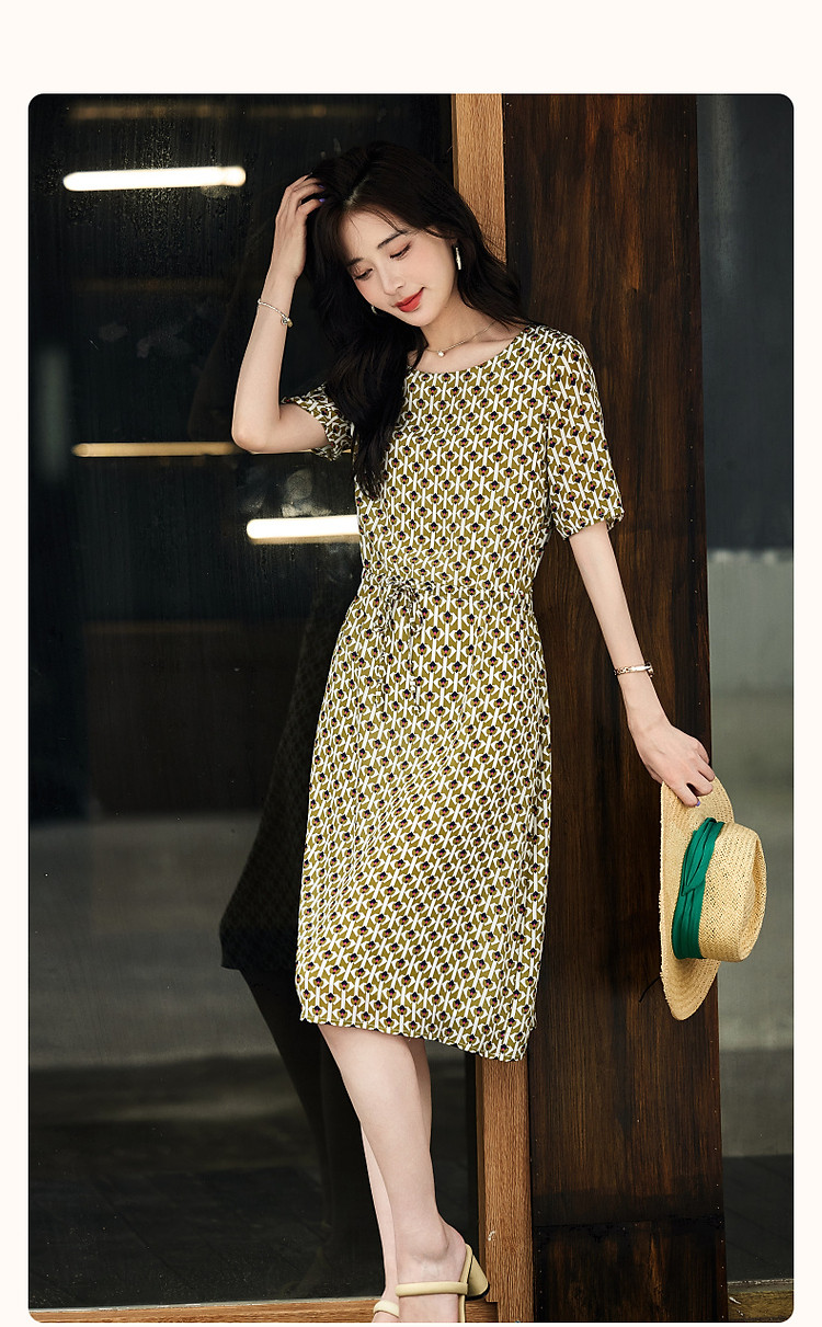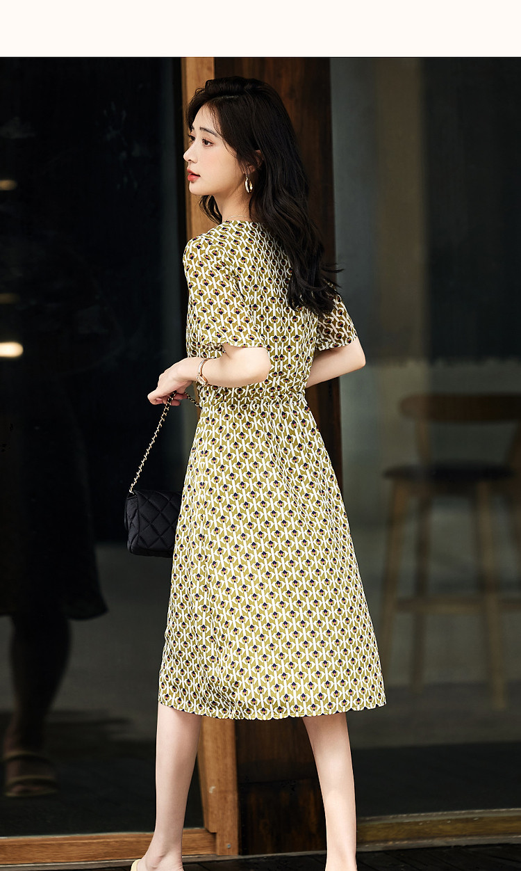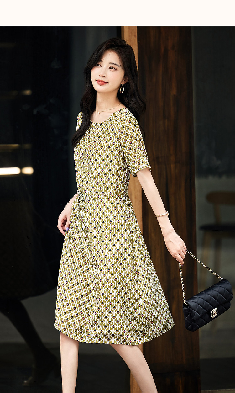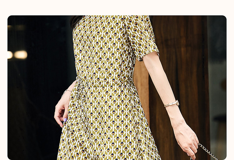 【文艺法风腔调】夏圆领桑蚕丝碎花调节腰森系轻奢连衣裙 843777
