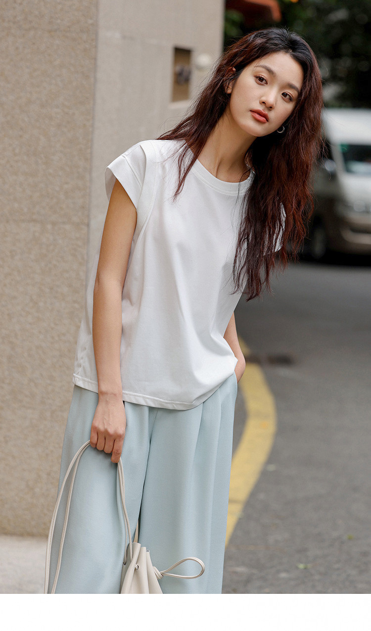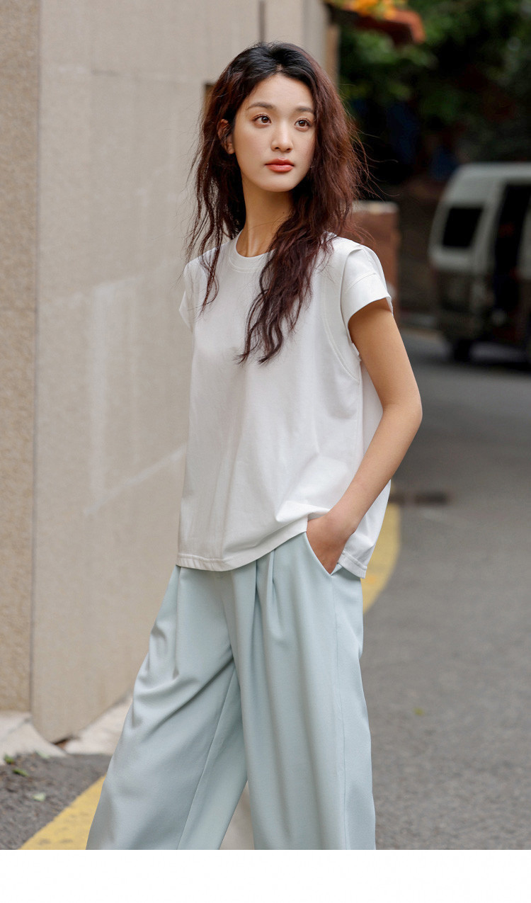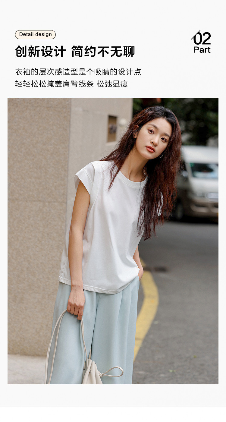 【纯白设计感T恤】夏款圆领净色百搭双层袖设计短袖女 552066