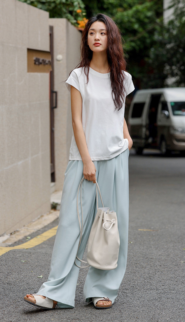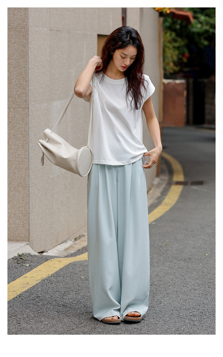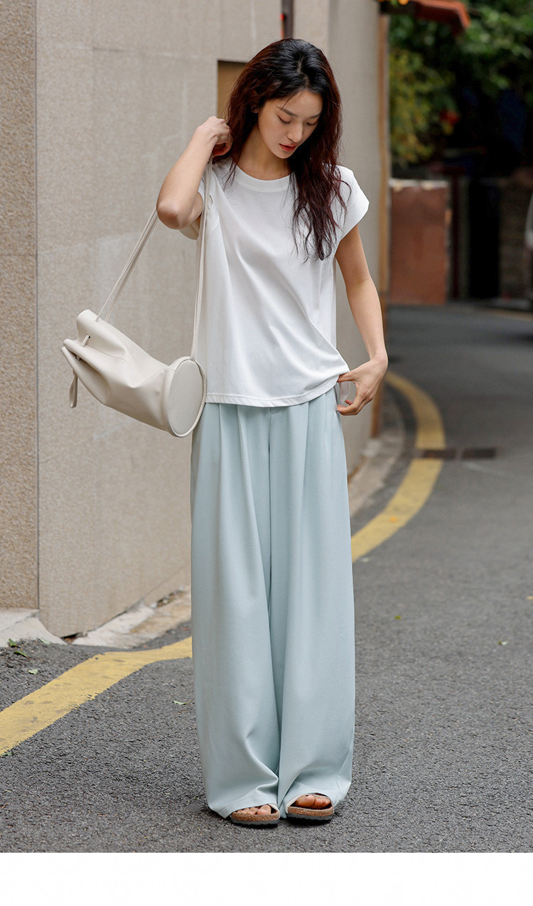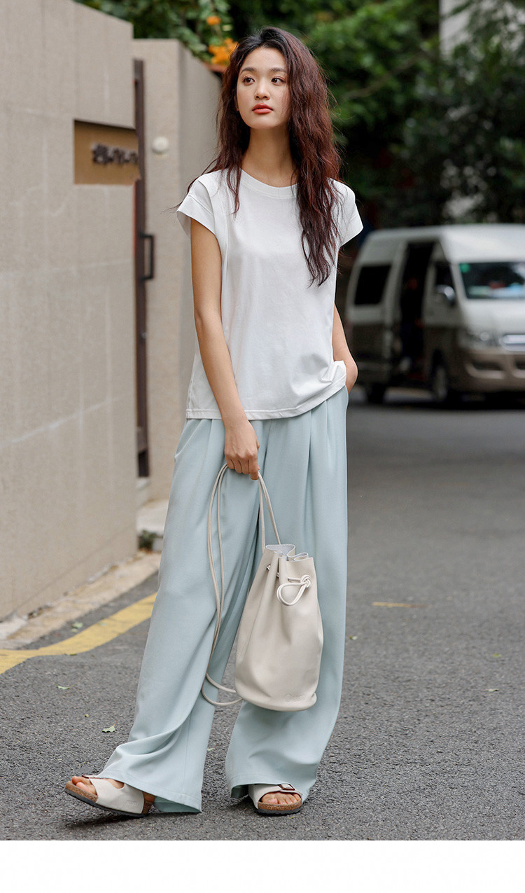 【纯白设计感T恤】夏款圆领净色百搭双层袖设计短袖女 552066