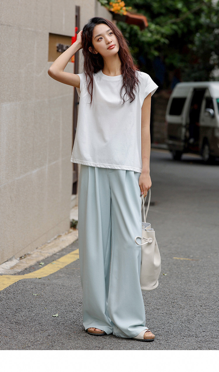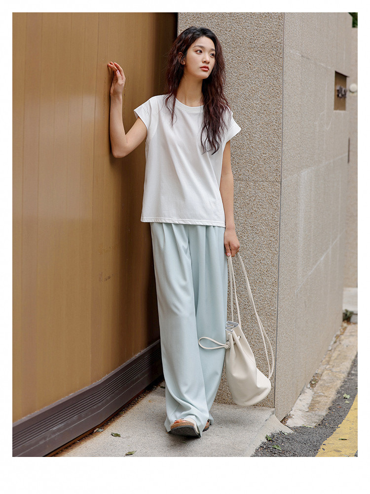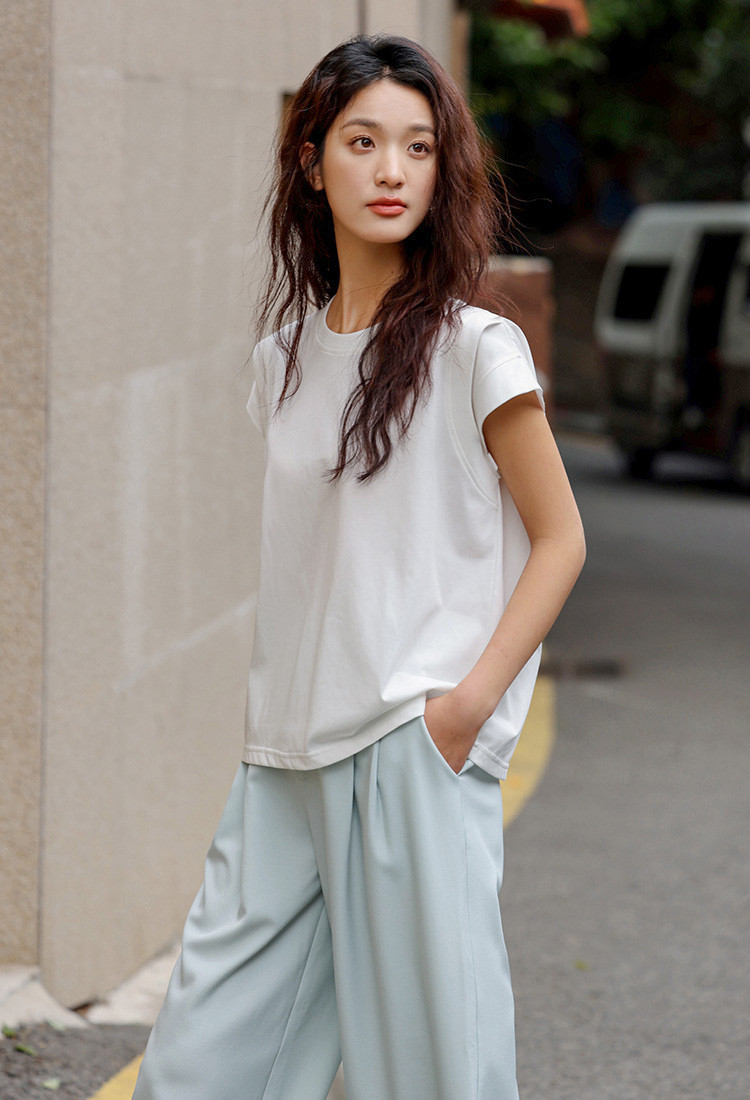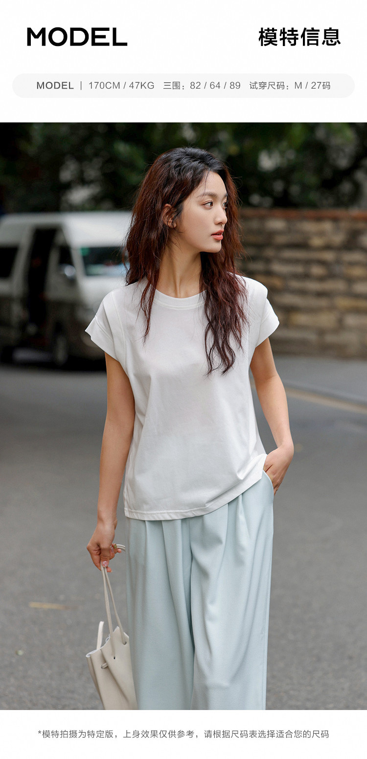 商品名称:【纯白设计感T恤】夏款圆领净色百搭双层袖设计短袖女 552066