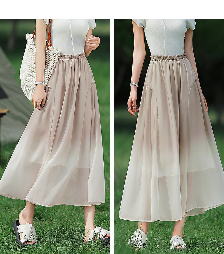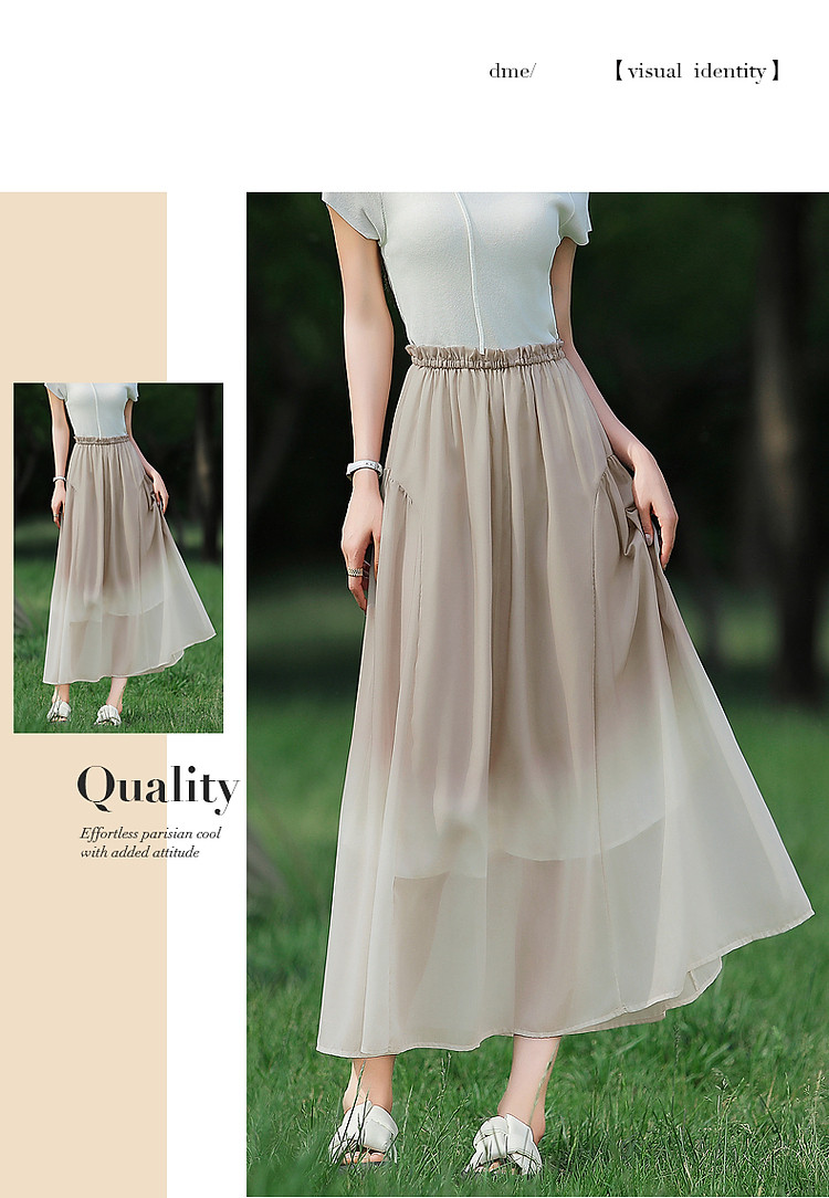 【丁达尔穿搭】夏渐变艺术舒适松紧腰爽滑飘逸a字藏肉半身裙女 408577